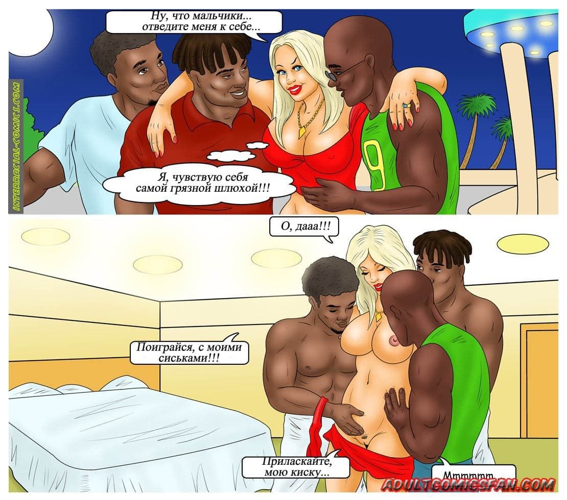 Онлайн история о том, как молодая телочка любит большие черные болты негров. Она готова с ними заниматься сексом без перерыва, тем более, что ее муж не против таких приключений.