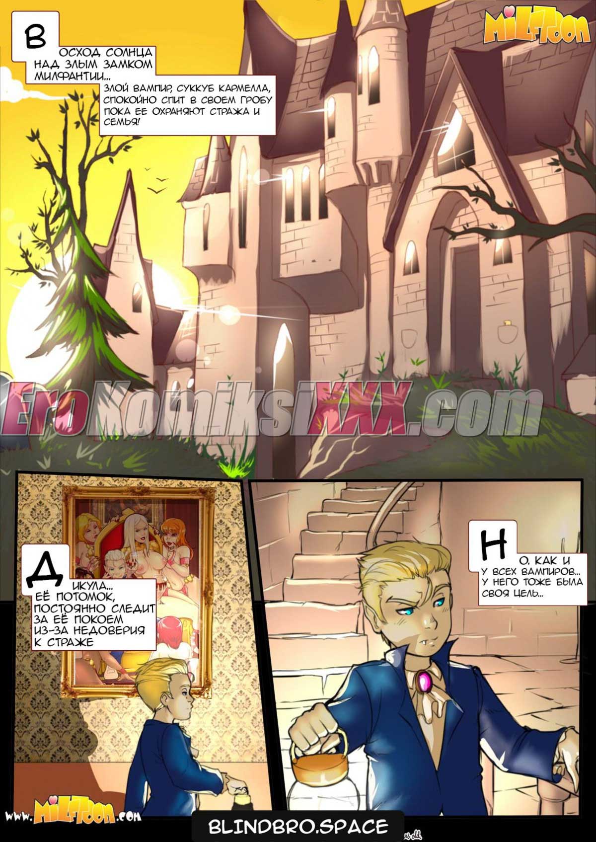 Порно комикс «Кармилла» начинается с того, что всю свою долгую, по вампирским меркам жизнь, Дикула очень хотел стать королем. Каждый день утром он пробирался в спальню своей матери, королевы Кармиллы, чтобы пользуясь тем, что она ещё спит, совершить ритуал обмена жидкостями. Что это за ритуал и зачем он это делал? Прочтите сами!