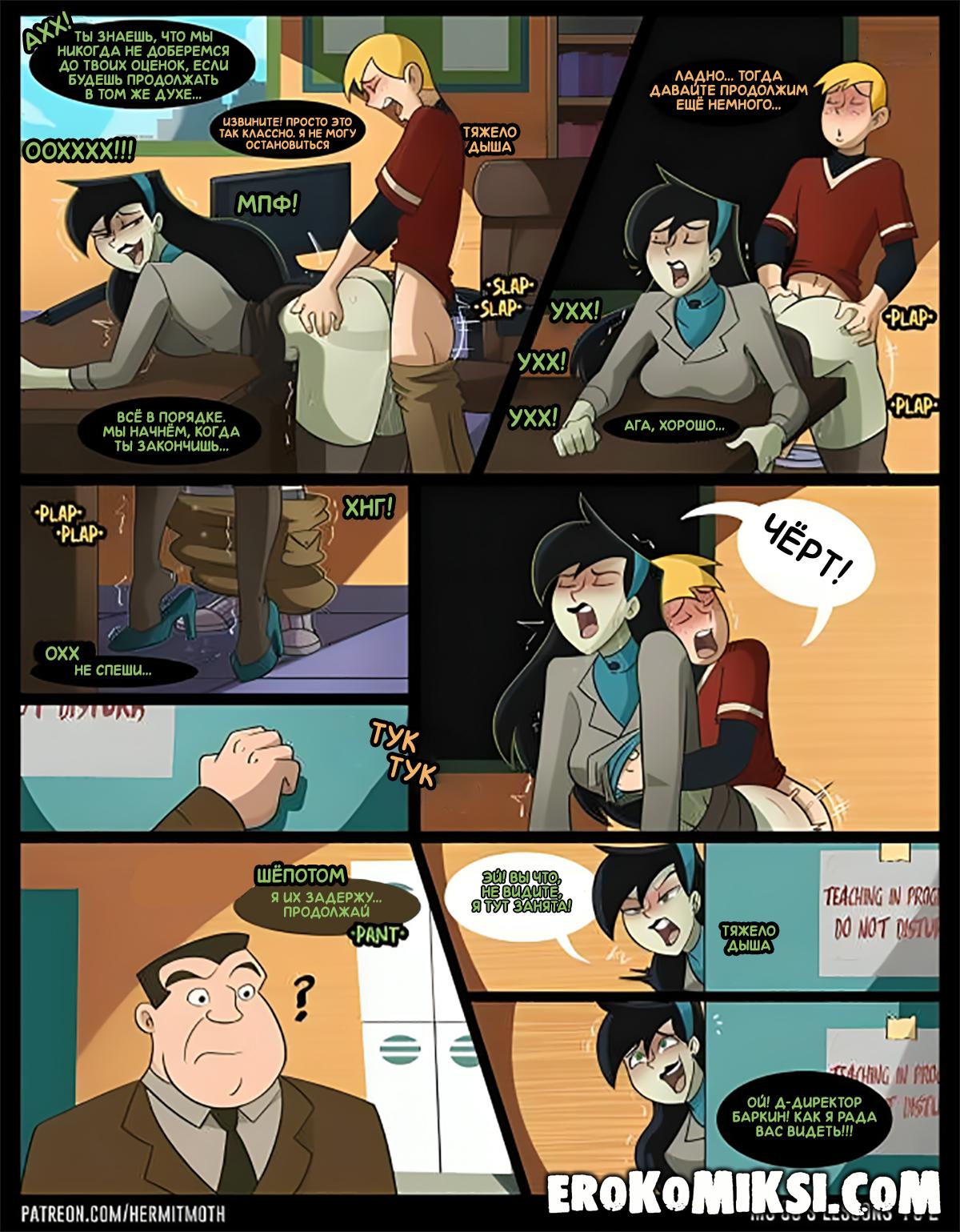 Порно комикс Ким 5+. Дополнительные Занятия с Мисс Шиго. У Рона-Так-себе проблемы с учёбой, он сильно отстаёт от учебной программы и мисс Шиго оставляет его после занятий. Но вместо того, чтобы разъяснять пареньку материал по учёбе, мисс Шиго снимает с себя трусики и подставляет свою киску под большой член парня. Рон с радостью пользуется такой возможностью и вставляет свой член по самые яйца в тугую киску Шиго…