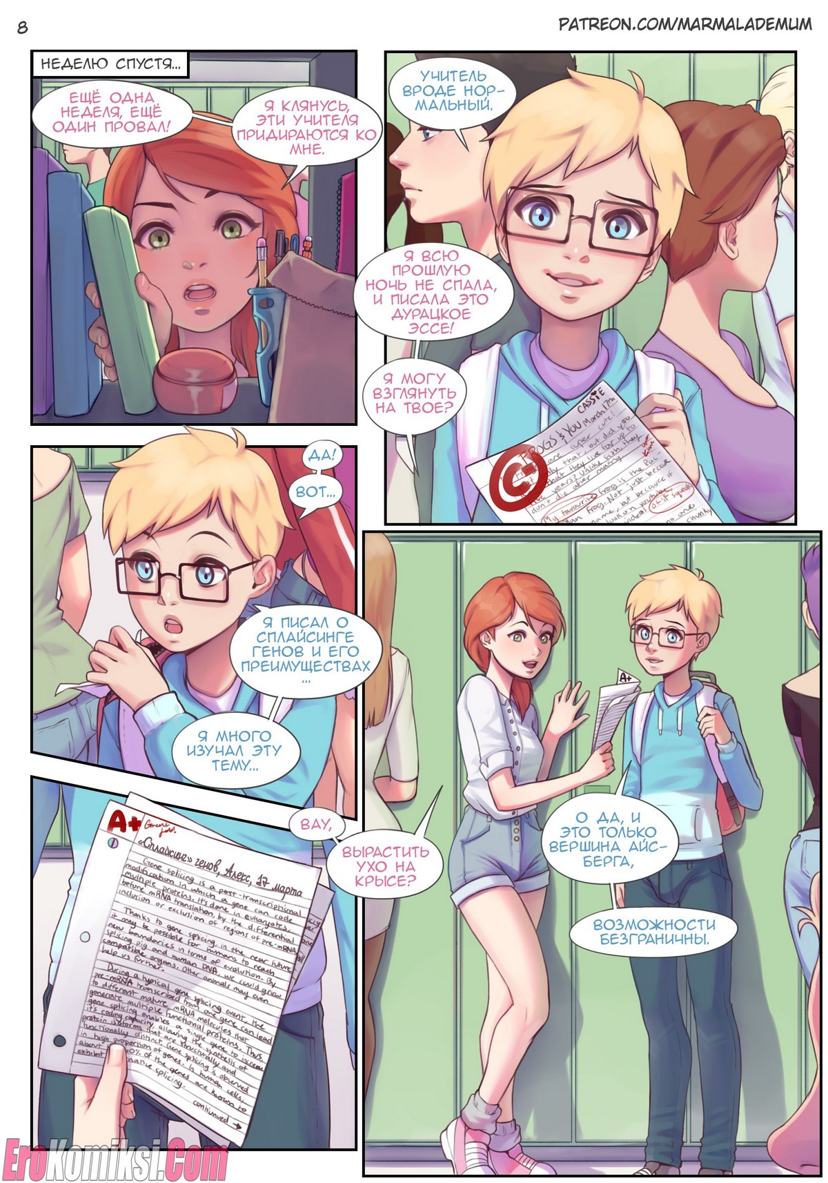 Порно комикс Класс Химии. Девушка с маленькой грудью всегда мечтала о большом размере. У неё есть преданный друг, который поддерживает её во всём. Он всегда говорит подруге, что она прекрасна и ей не нужна большая грудь, но девушка вечно настаивает на своем. Так, в один из дней, когда её друг натыкается на формулу химического вещества в даркнете, которая по заявлениям автора способна увеличить грудь, он решает поделиться этим с подругой. Друзья решают воссоздать это в классе химии и после вкалывают девушке. Так начинается история преображения молодой особы в нечто другое…