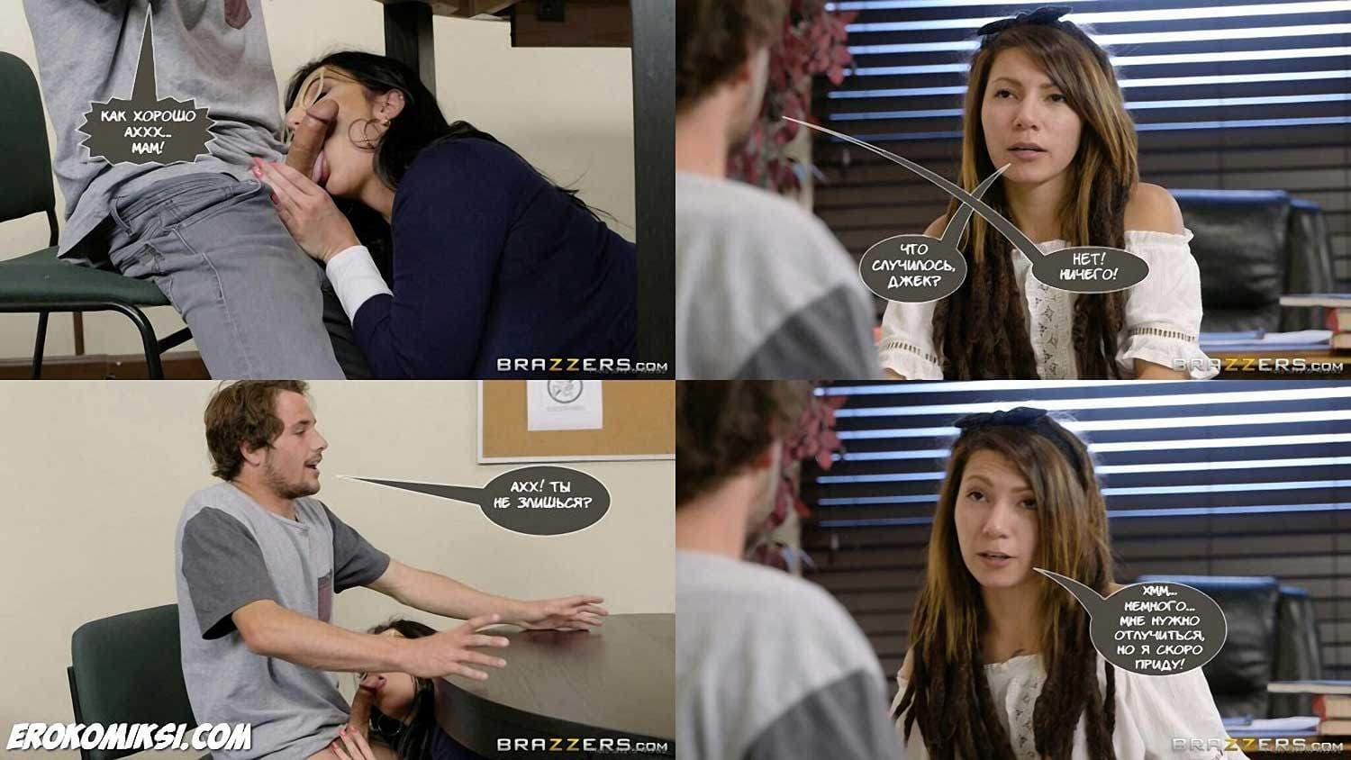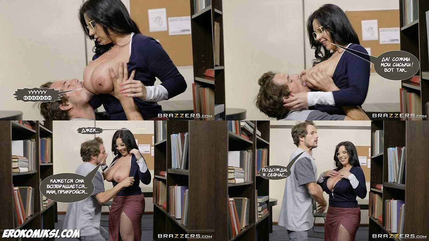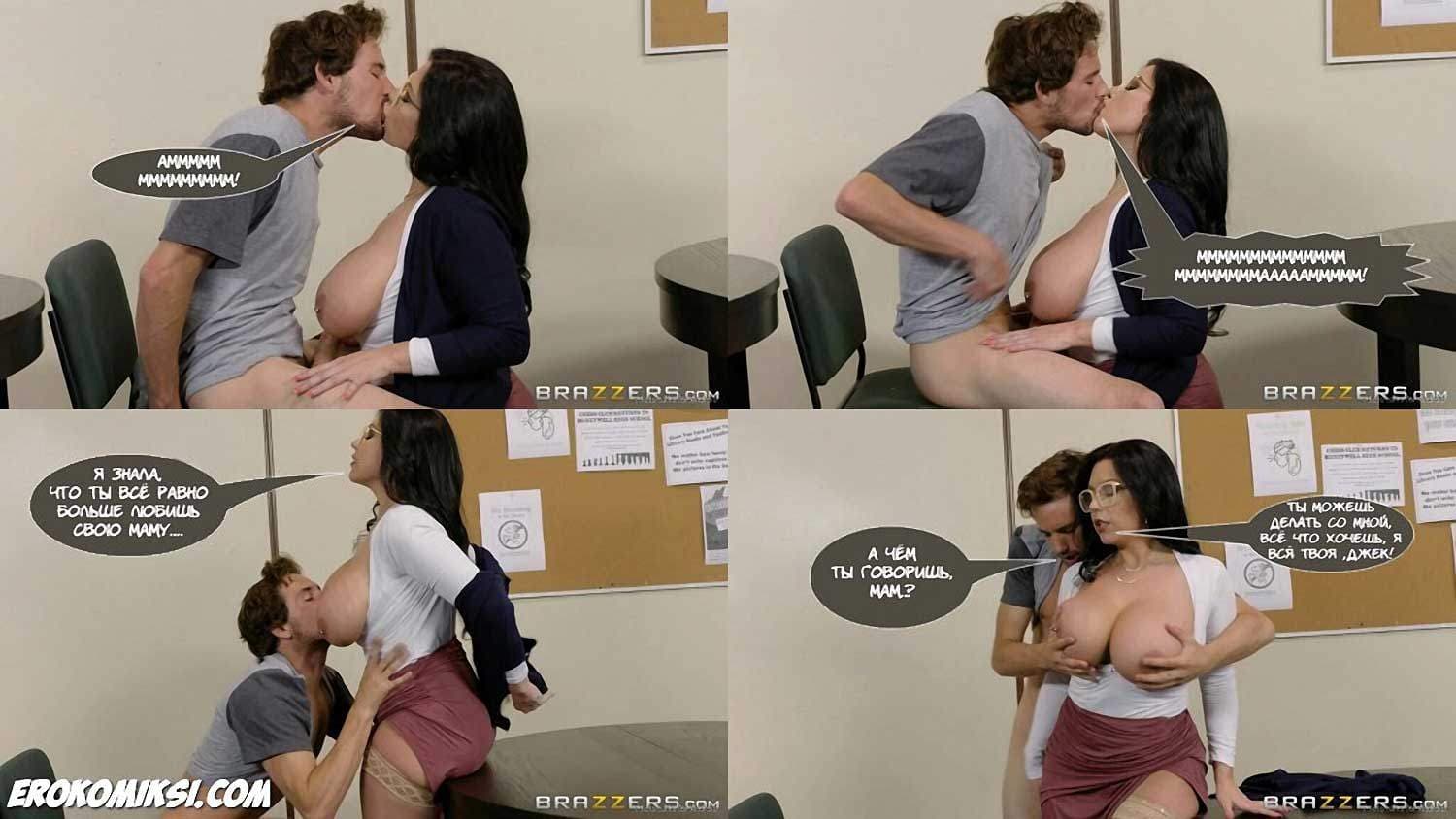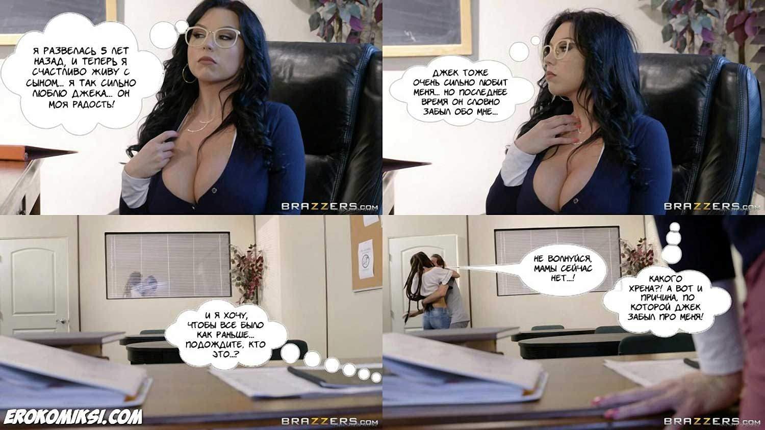 Порно комикс «Когда мама твой учитель» начинается с того, что сексуальная милфа-разведёнка уже пять лет живёт со своим взрослым сыном. Но рано или поздно, у взрослых сыновей появляются подружки! Так оно и случилось. Но, в планы властной милфы не входило делить сына с молоденькой потаскушкой, и она пустила в ход «тяжёлую артиллерию»!