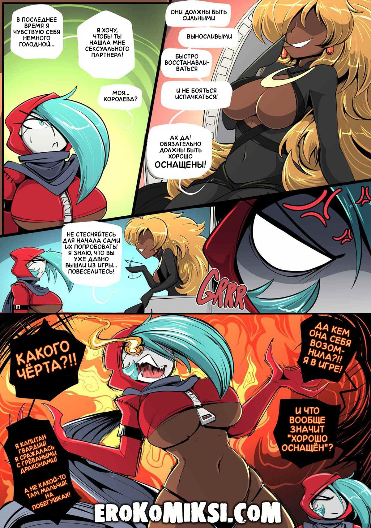Порно комикс Королевская Гвардия Вейл-сити. Капитан королевской гвардии её величества, Шай, получает от своей королевы специальное задание: ей нужно выбрать из новобранцев, самых выносливых парней с огромными членами для утех её величества. Теперь, Шай, неоднократно проливавшая кровь в боях, должна лично протестировать каждого новобранца, чтобы отправить его к своей королеве…