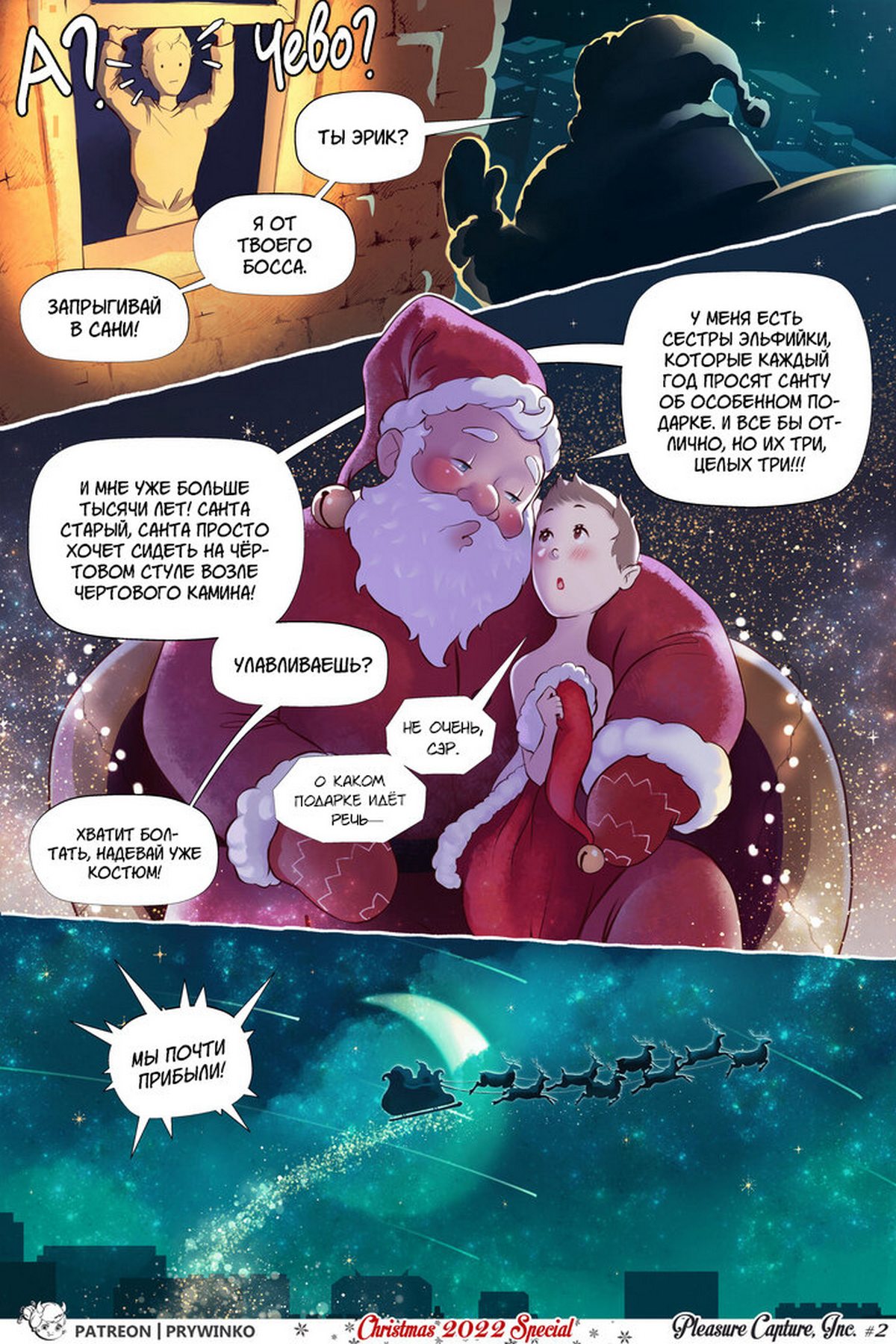 Порно комикс Корпорация удовольствий. Prywinko. Аппетитные сексуальные девушки решили воплотить в жизнь рождественское пожелание молодого парня, который желал секса. Знойные развратницы разделись и стали делать минет парню, после чего позволили ему себя жадно трахнуть…