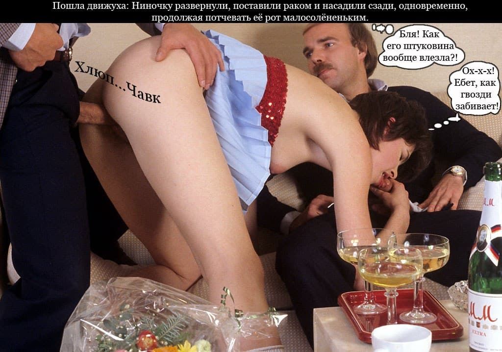 Фото комикс о порно приключениях целомудренной девушки с двумя распутными начальниками, которые без лишних разговоров ебут свою подчиненную в узкие щели, после чего устраивают ей дождь из спермы.