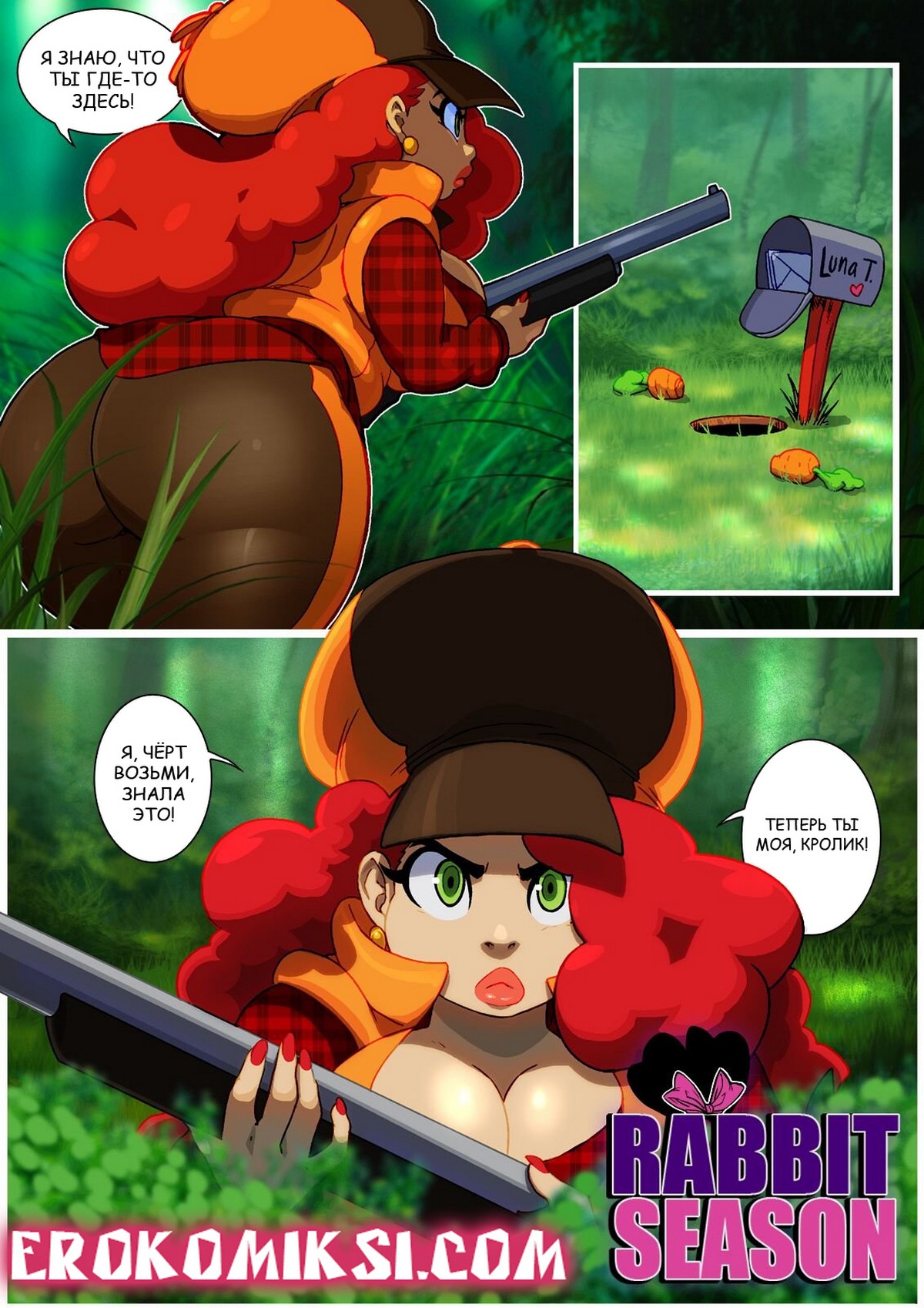Порно комикс Кроличий сезон. Rabbit Season. Tovio Rogers. Однажды горячая рыжая красотка вернулась домой чуть раньше и застала своего любимого за сексом с девушкой кроликом. Красотка жаждет мести, поэтому она отправилась в лес охотиться на кролика…