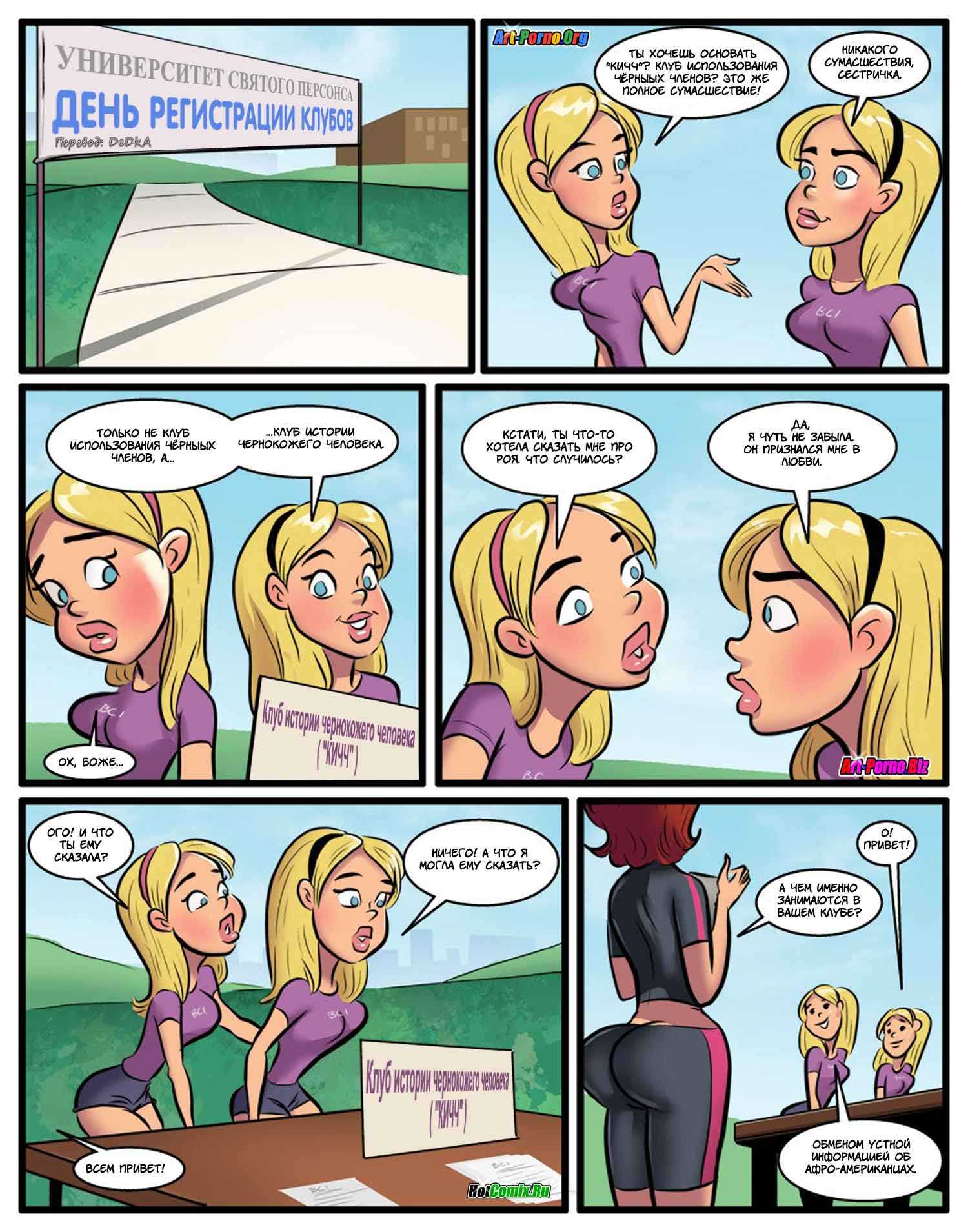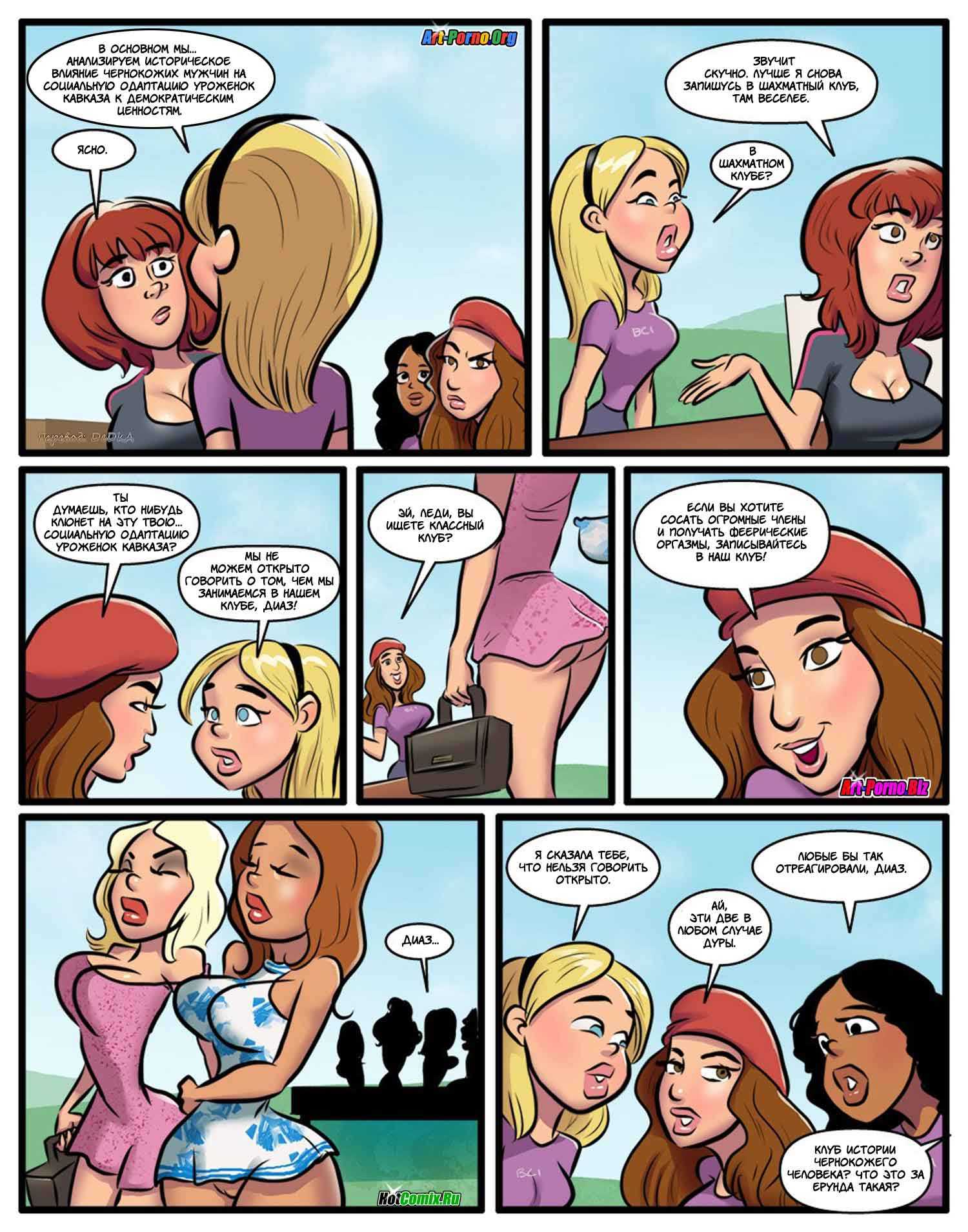 Любите новые порно комиксы, особенно, если это продолжение долгожданной пошлой истории? Тогда специально для вас следующая часть настоящего разврата. Так дополнительные курсы по использования чёрных членов закончились, но девушки слишком сильно полюбили данное «занятие», что ни при каких обстоятельствах не желали расставаться с этой темой. Похотливые красотки захотели создать при колледже особый клуб, так называемых «любительниц больших чёрных членов», да еще и на финансовые средства государства! Но, за эту взрослую затею еще нужно ой, как побороться!!!