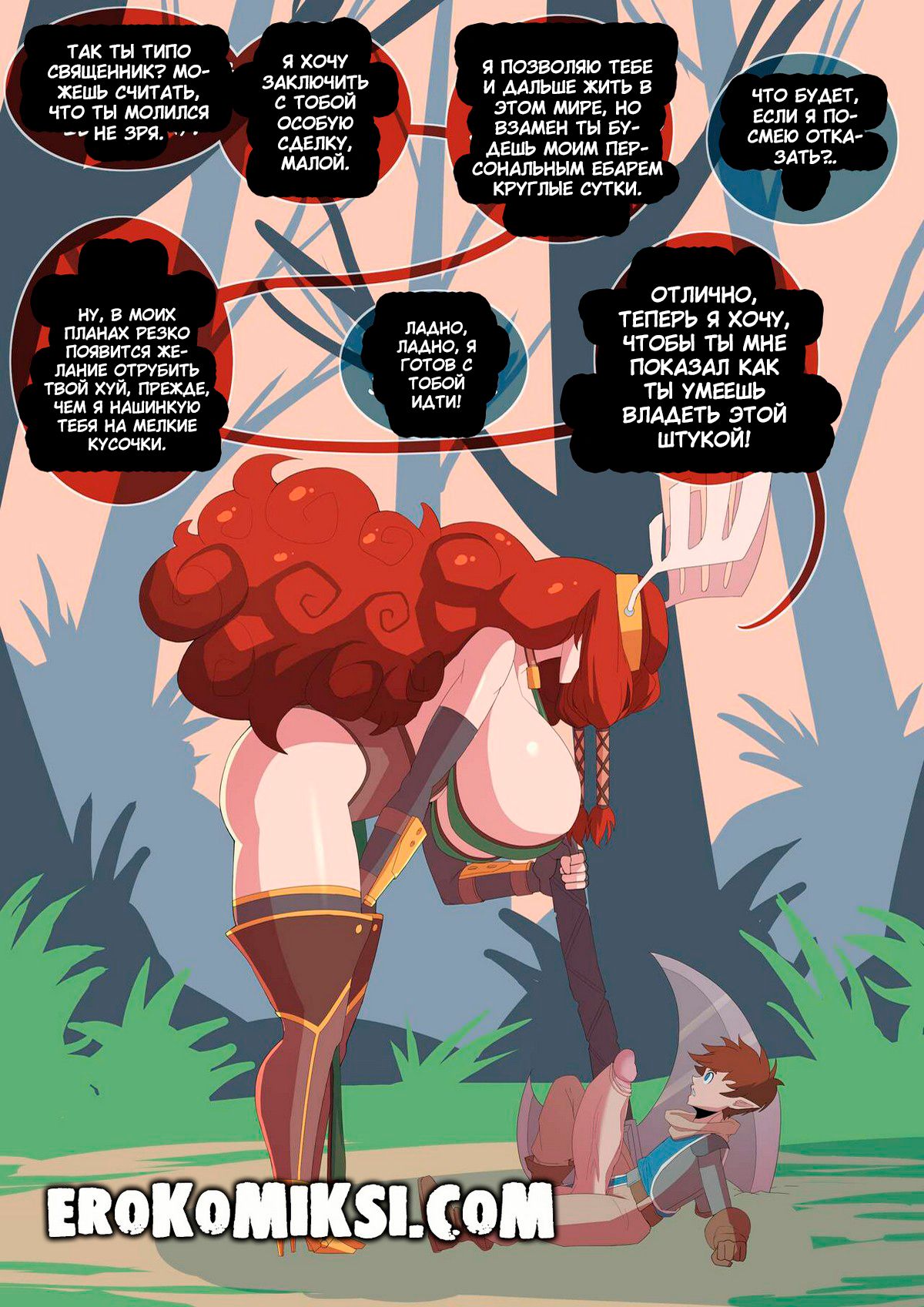 Порно комикс Квест друзей по траху. Рыжая валькирия с очень большими сиськами перебила почти всех Халфлингов, но оставила одного, ради его очень большого члена, который долбил её шлюшью пиздёнку каждый день…