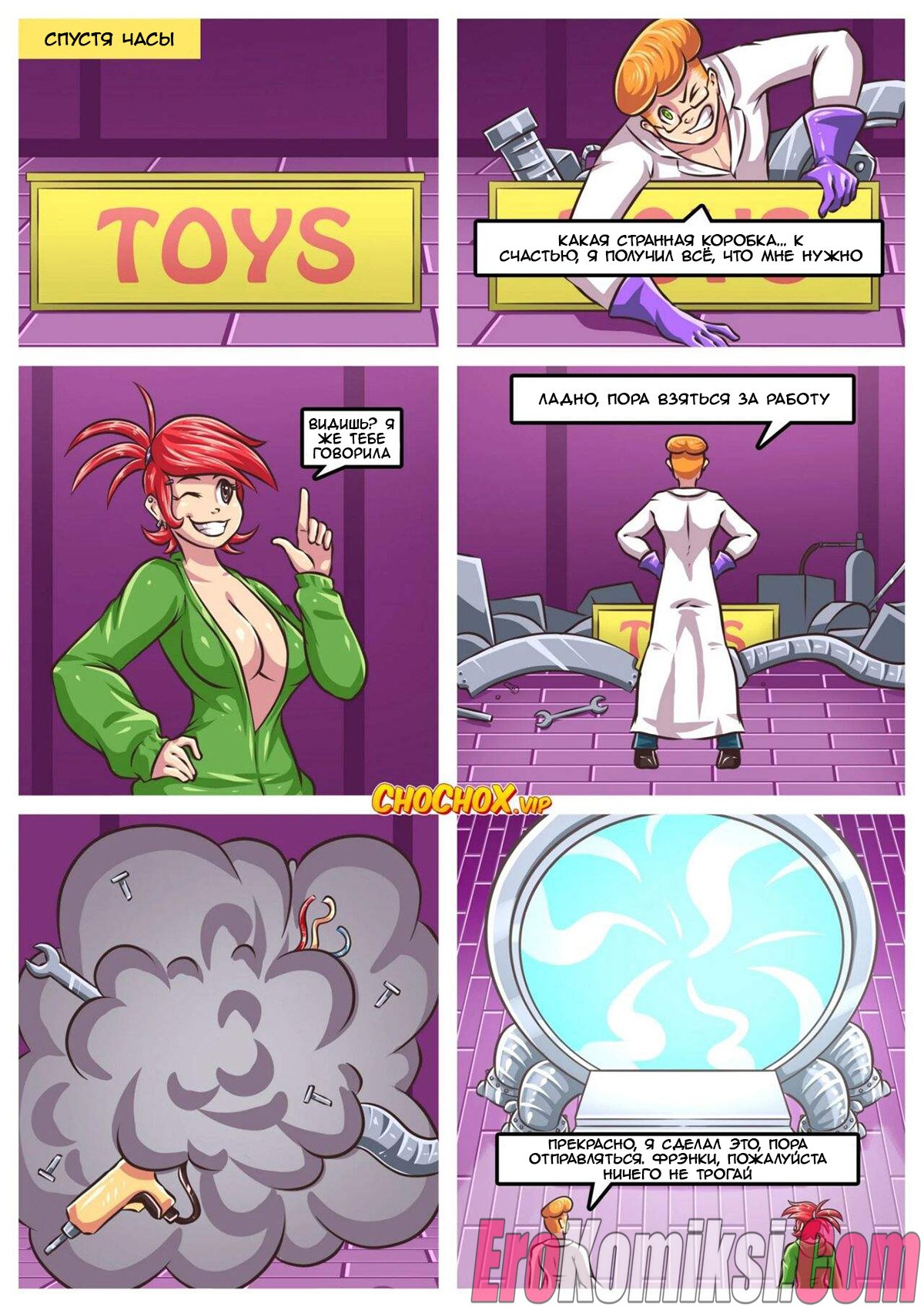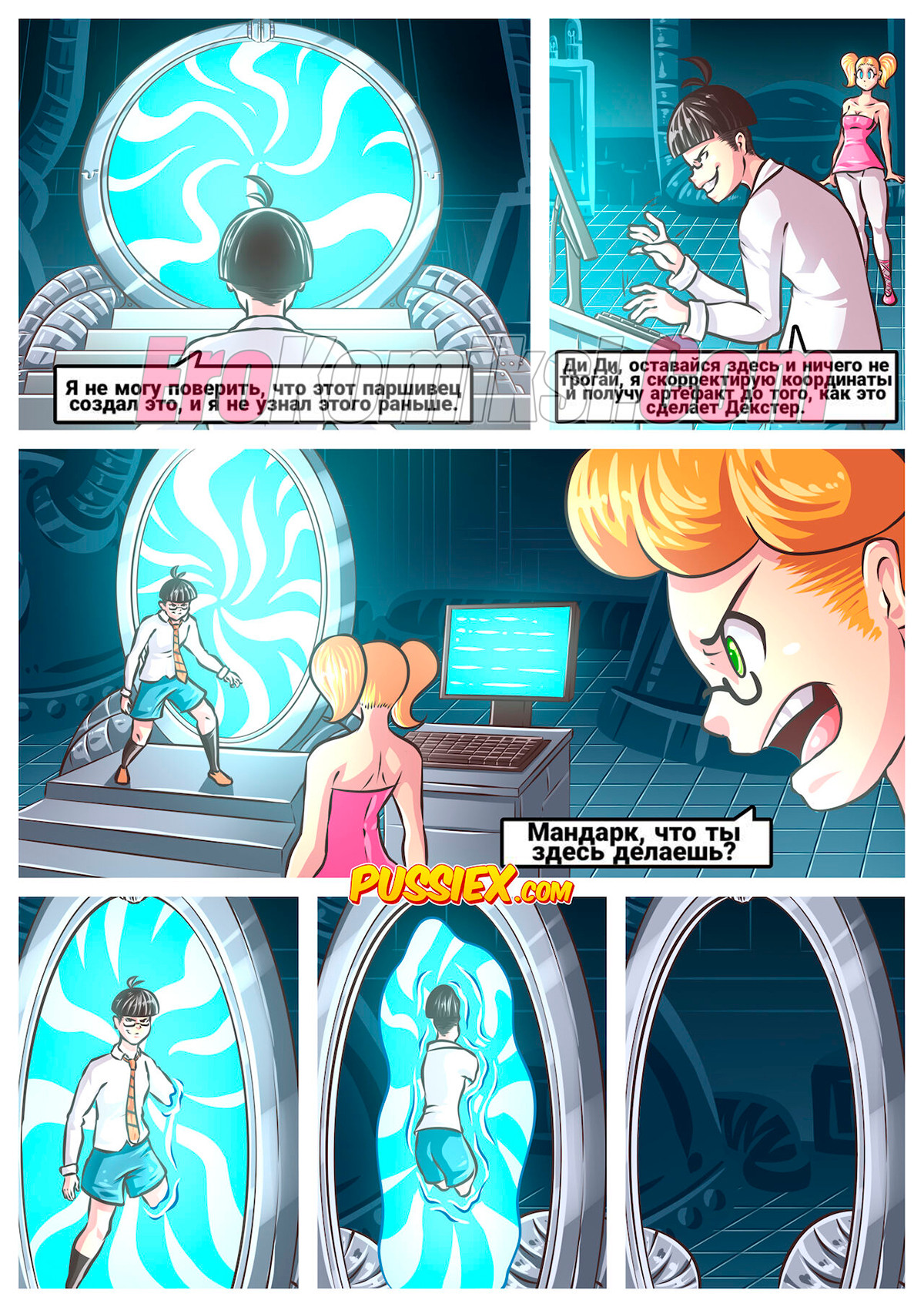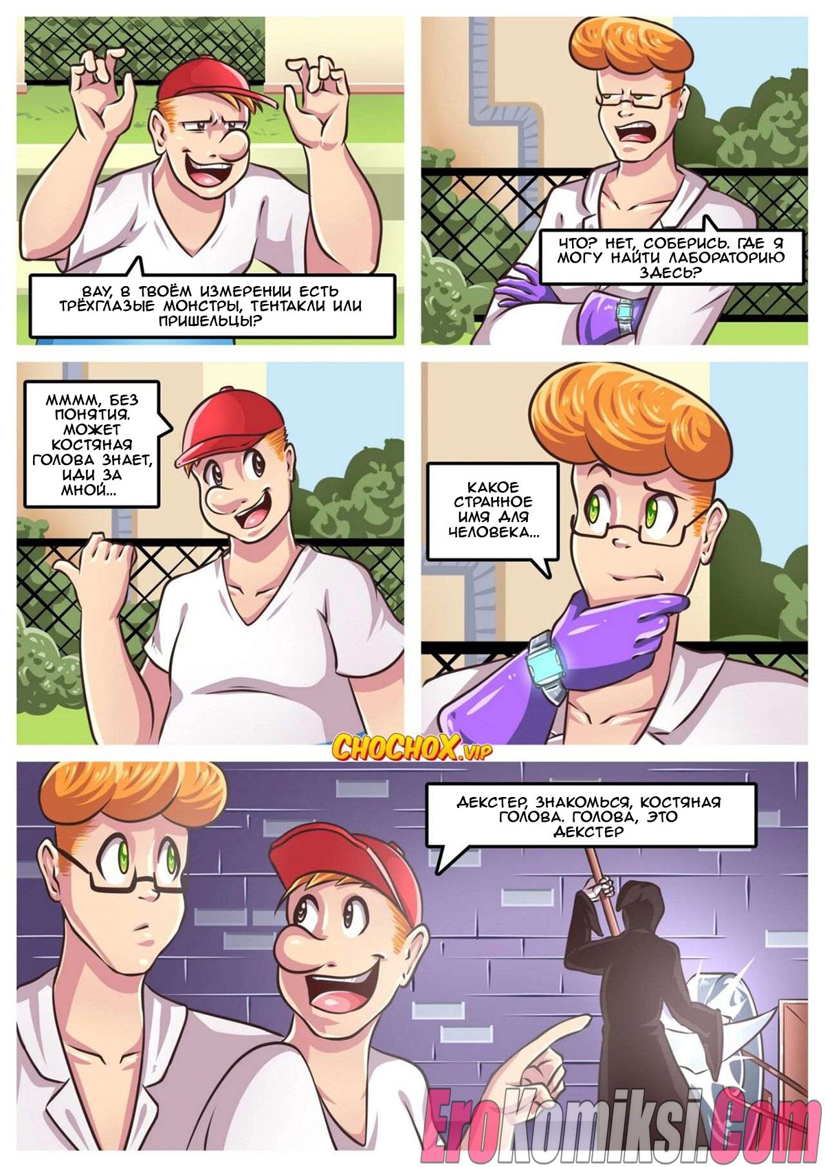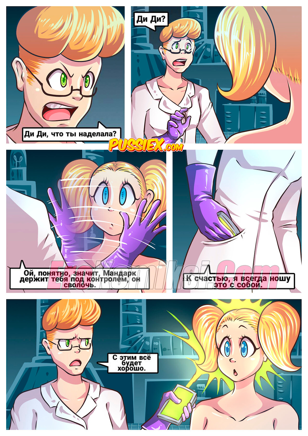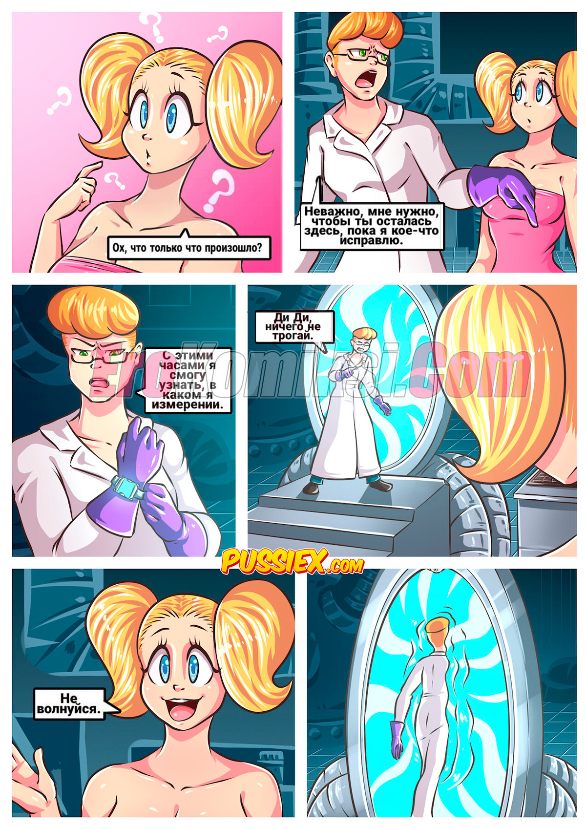 Порно комикс Лаборатория Декстера. Между измерениями. Crock Comix Парень использовал свое новое изобретение на горячей красотке блондинке. Она сразу встала перед ним на колени и стала сосать его большой хуй, а затем встала перед ним раком и дала ему себя хорошенько выебать.