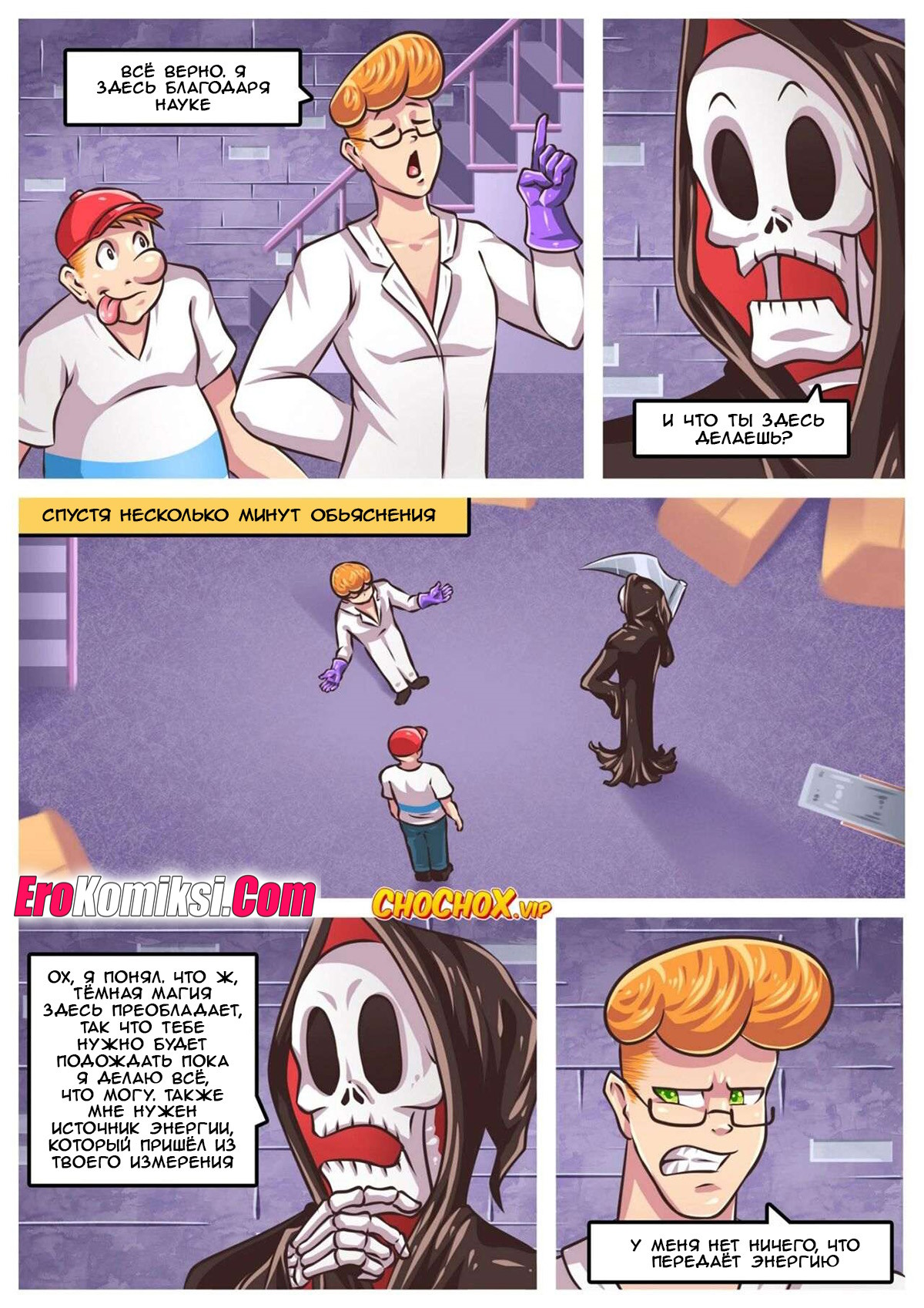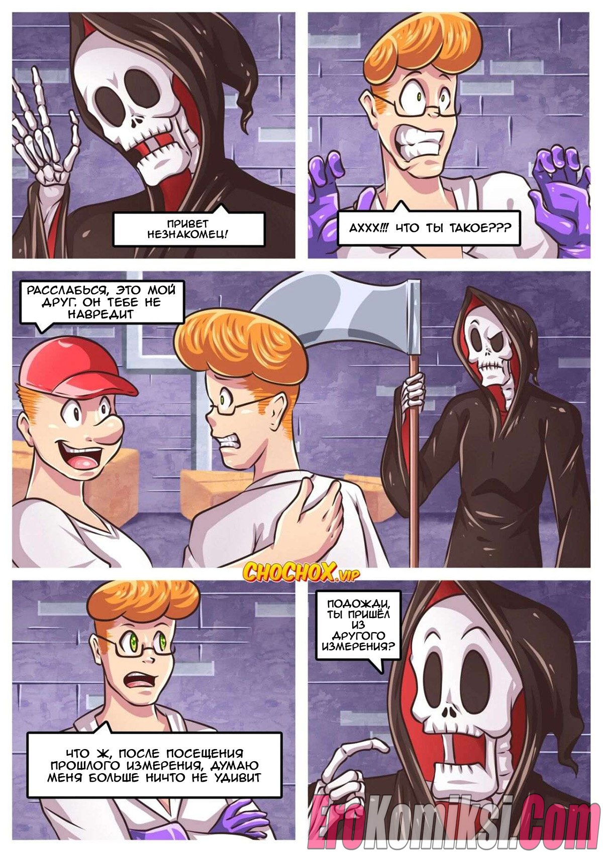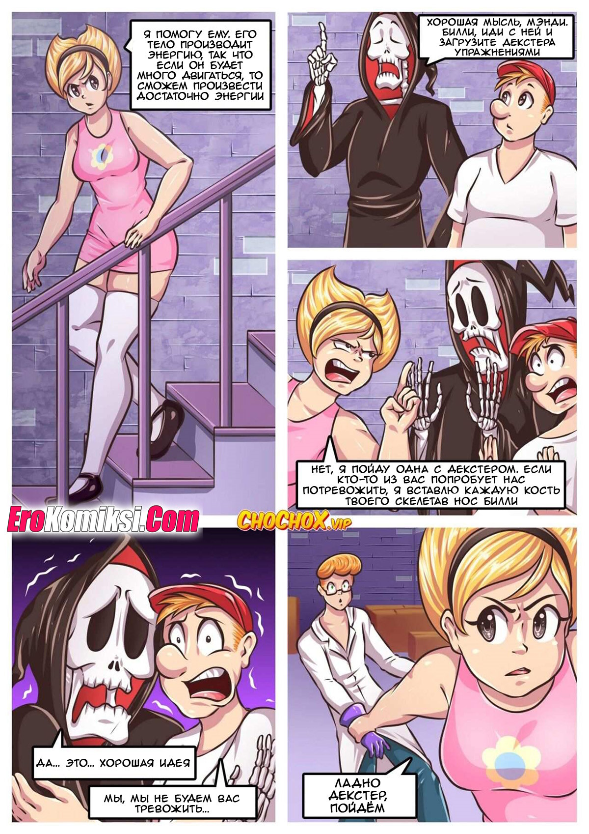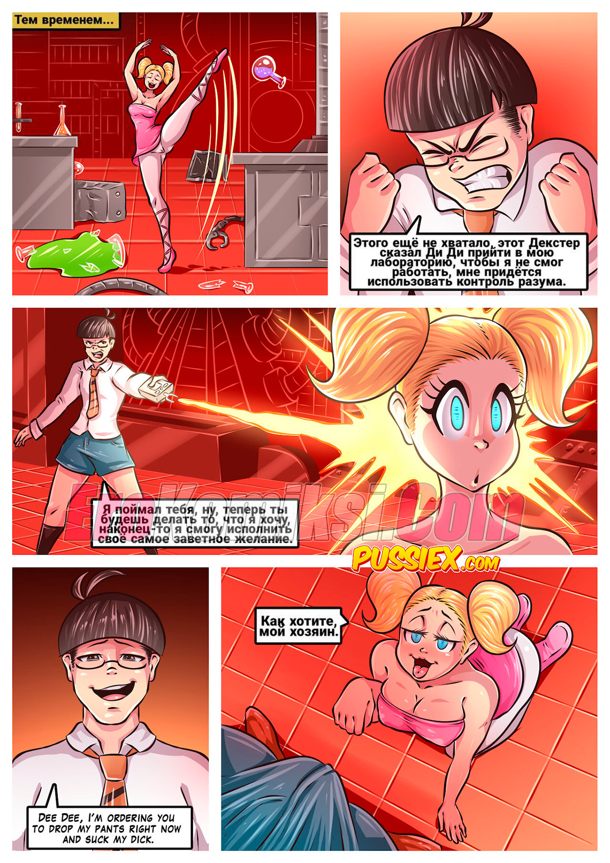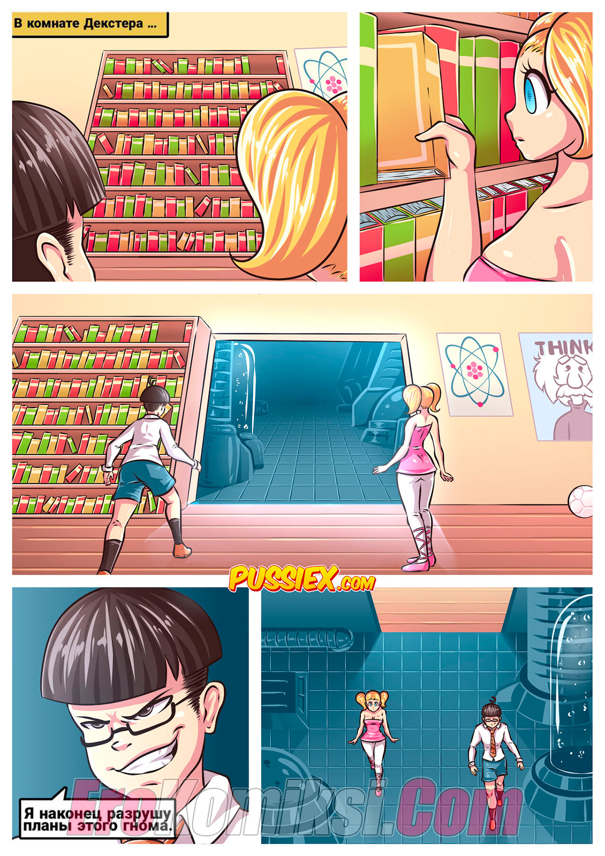 Порно комикс Лаборатория Декстера. Между измерениями. Crock Comix Парень использовал свое новое изобретение на горячей красотке блондинке. Она сразу встала перед ним на колени и стала сосать его большой хуй, а затем встала перед ним раком и дала ему себя хорошенько выебать.
