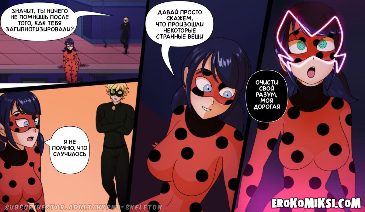 Порно комикс Леди Баг. Под гипнозом. Леди Баг готовилась ко сну после трудного дня, но неожиданно, с ней начало что-то происходить. Это Габриэль Агрест решил загипнотизировать героиню и трахнуть её. На следующий день, Леди Баг рассказала о случившемся своему другу, Адриану и в этот момент, на неё вновь начал действовать гипноз и Адриан не мог упустить возможность, чтобы трахнуть свою подружку…