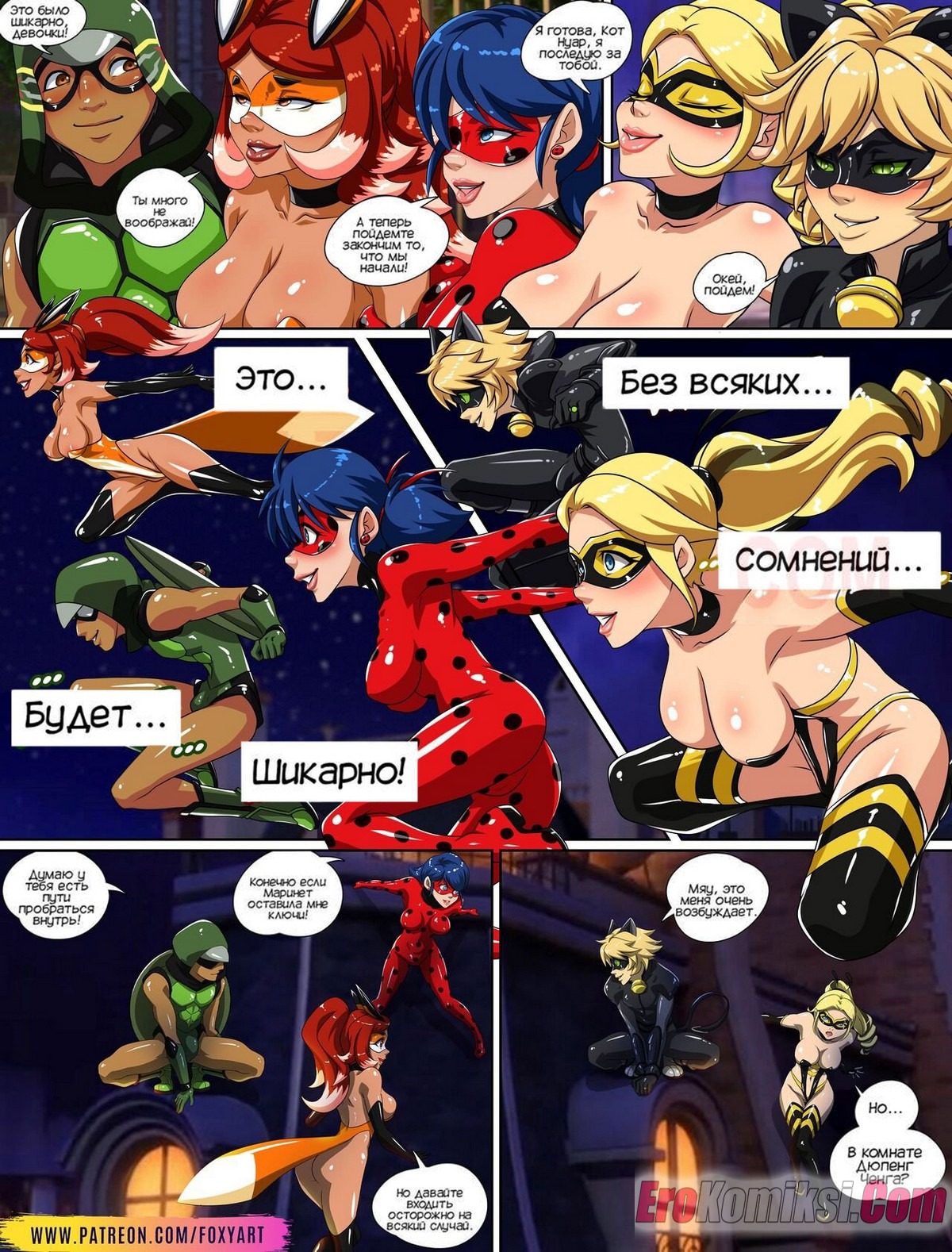 Порно комикс Леди Баг. Время дружеской встречи. Friendly Meeting Time. FoxyArt Развратная и очень сексуальная брюнетка Леди Баг захотела повеселиться со своими друзьями. Они собрались все в однм доме, чтобы заняться страстным групповым сексом и узнать предел своих похотливых сил.