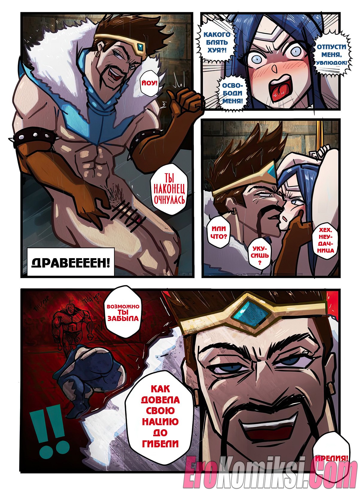 Порно комикс Лига Легенд. Пленник войны. Prisoner of War. League of Legends. Simp Devil Аппетитная и сочная брюнетка попала в плен и возбужденный парень решил с ней сексуально повеселиться. Он достал свой большой член и дал его в рот красотке отсосать, после чего стал жадно «драть» во все ее тугие дырочки…