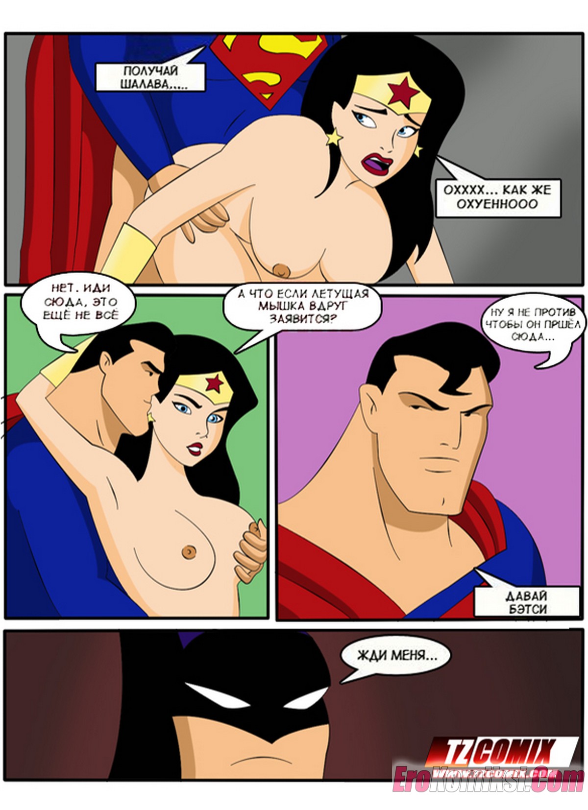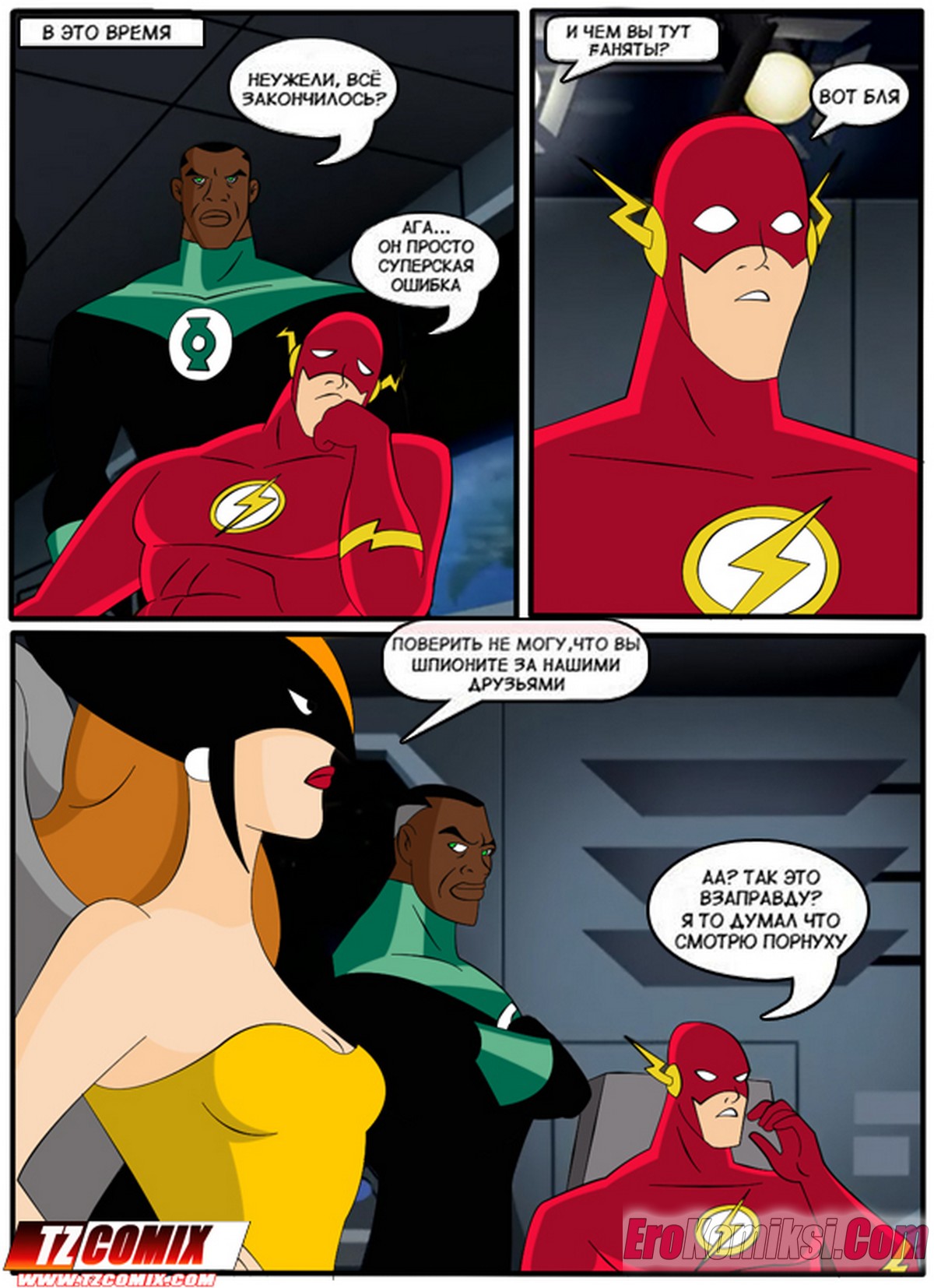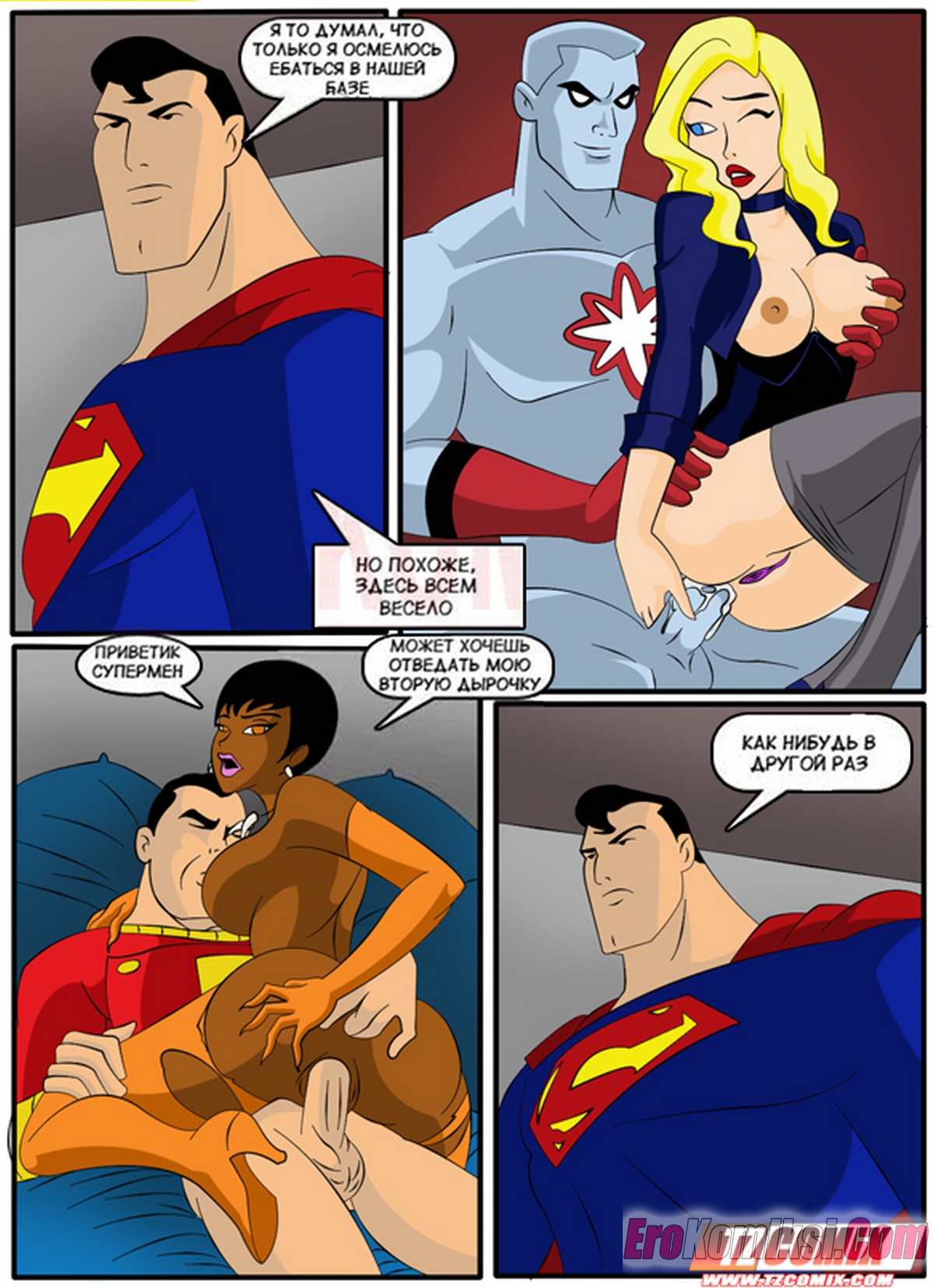 Порно комикс Лига Справедливости. Liga de Justica. HQPorno TZComiX Команда супергероев из лиги справедливости решила повеселиться на своей базе. Красотки уединились с парнями, чтобы отсосать их большие хуи и дать им себя хорошенько выебать.