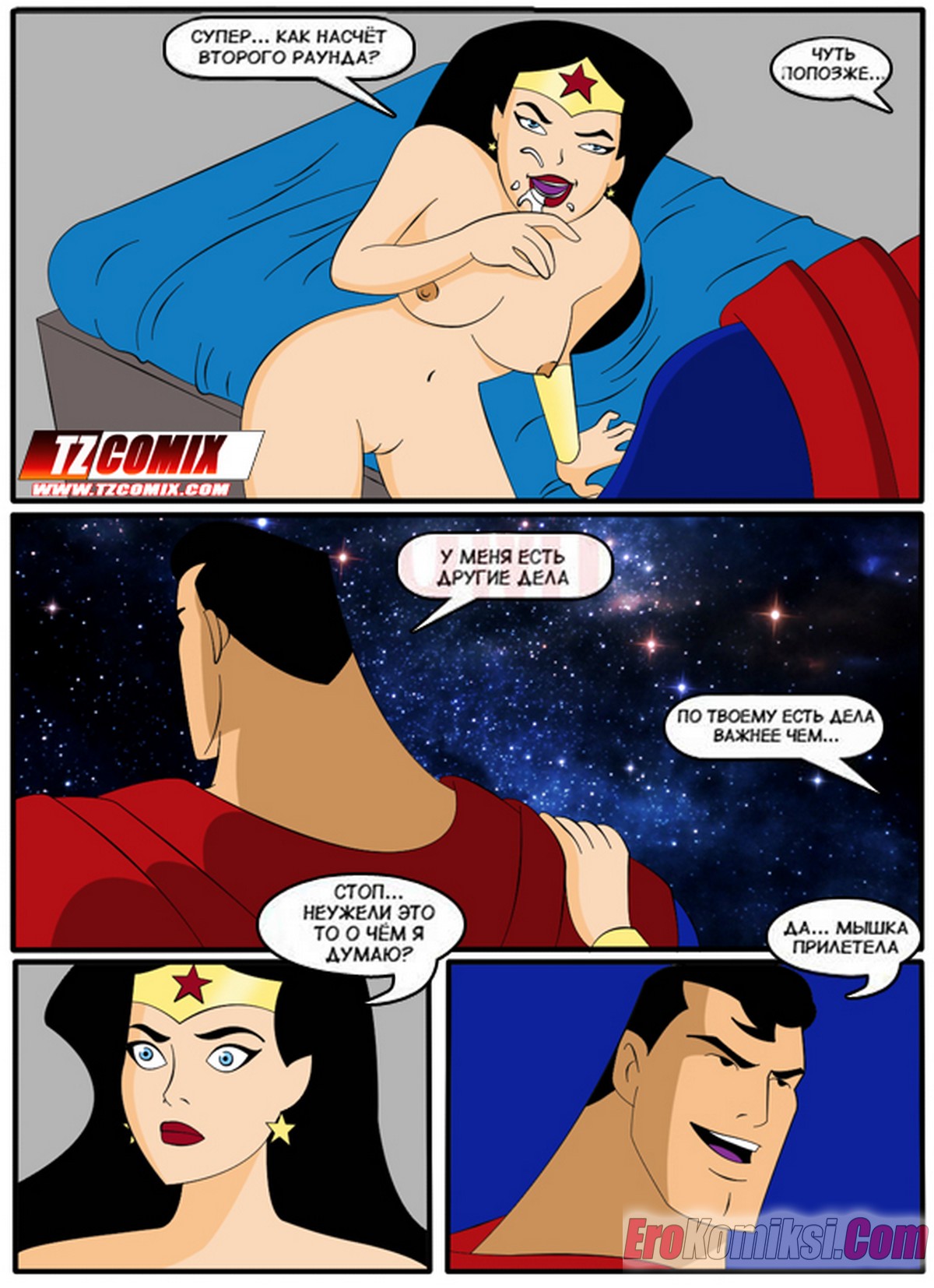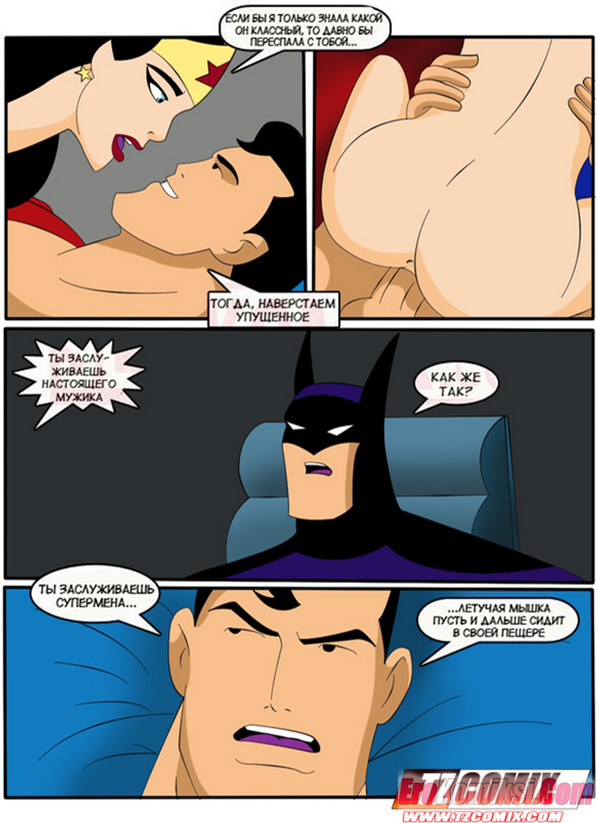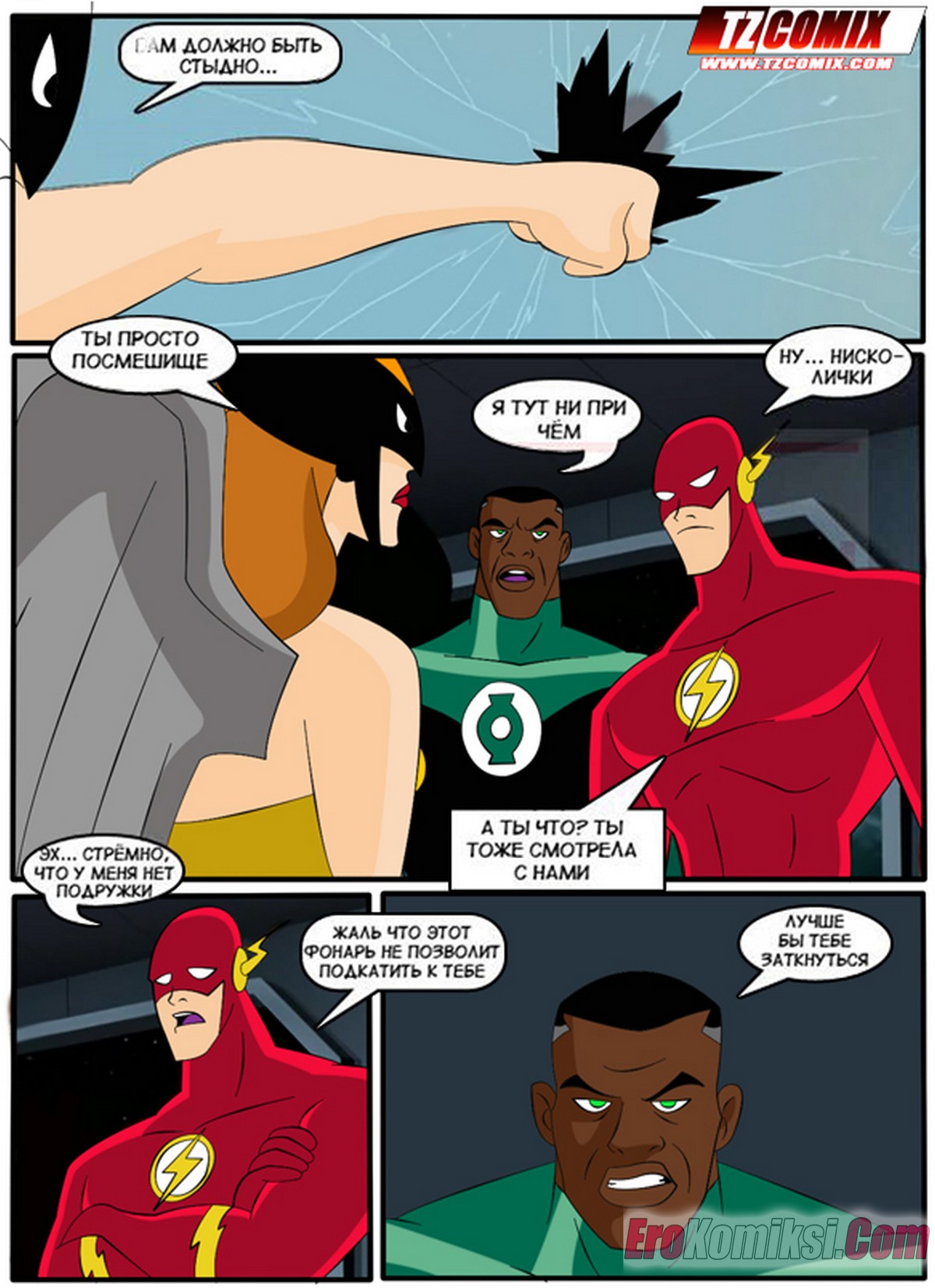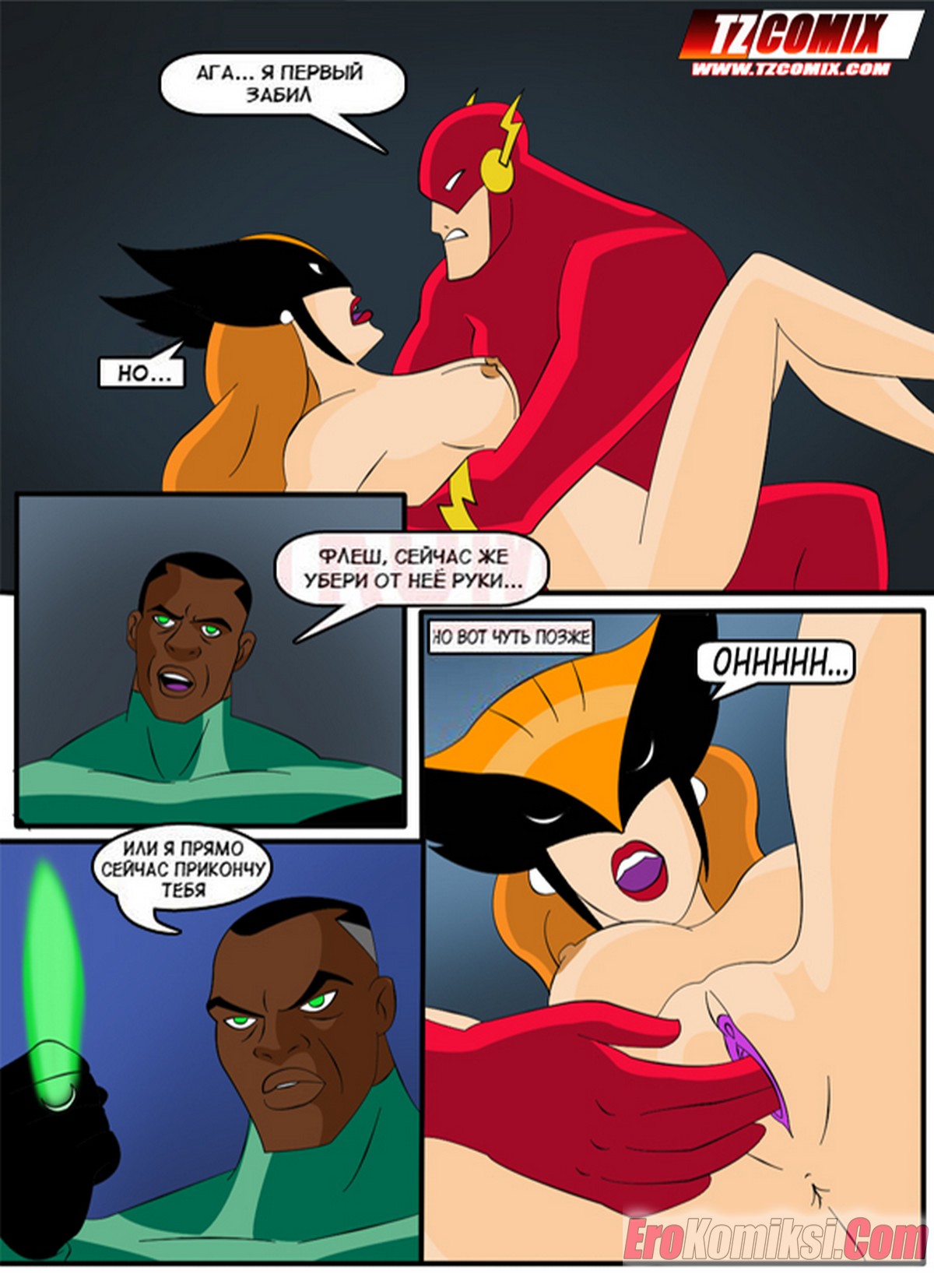 Порно комикс Лига Справедливости. Liga de Justica. HQPorno TZComiX Команда супергероев из лиги справедливости решила повеселиться на своей базе. Красотки уединились с парнями, чтобы отсосать их большие хуи и дать им себя хорошенько выебать.