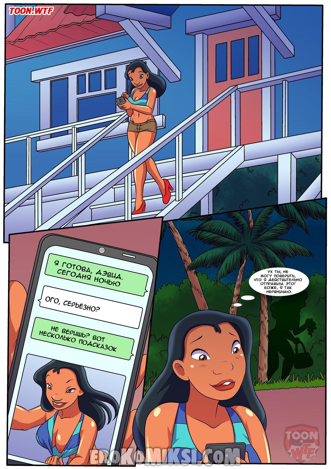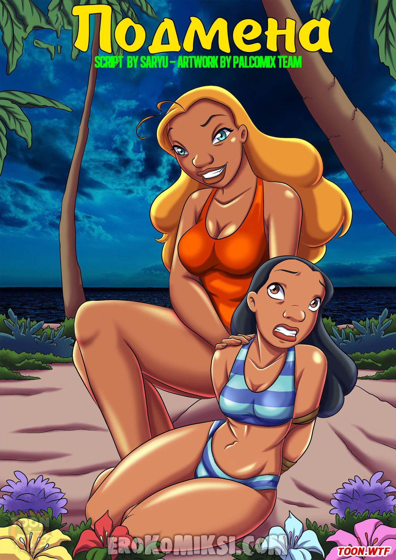 Порно комикс Лило и Стич. Подмена. Сисястая блондинка связала горячую брюнетку и пошла встретиться с ее парнем. Девушка разделась и отсосала большой хуй парня, после чего дала ему трахнуть себя…