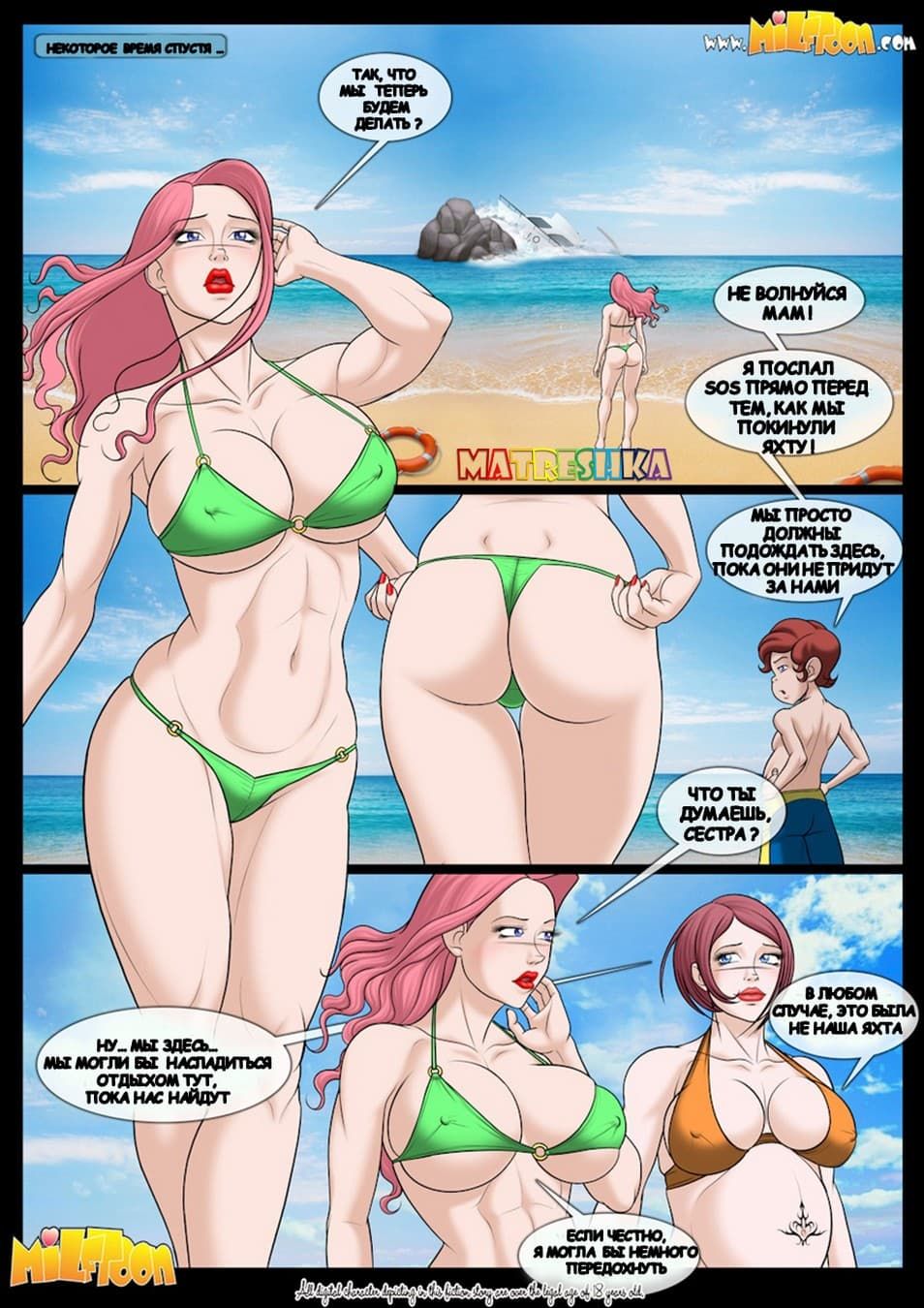 И вновь долгожданная часть порно комикса лимонад, история которой начинается с того, что парень с двумя своими зрелыми бабами попадает на яхте в аварию. Так они оказываются на берегу моря, где и начинается конкуренция тетки и мамки за наследство, которое с недавних пор стало принадлежать озабоченному пацану. И ему то это в кайф, а взрослым женщинам надо применить все свои дырочки, чтобы им тоже пообещали часть имущества.