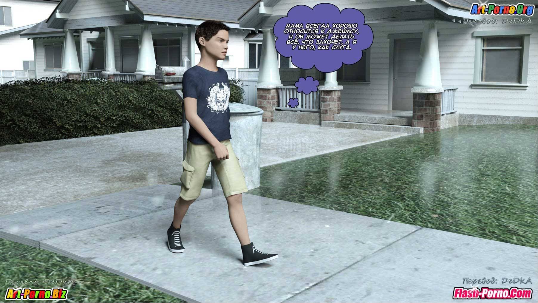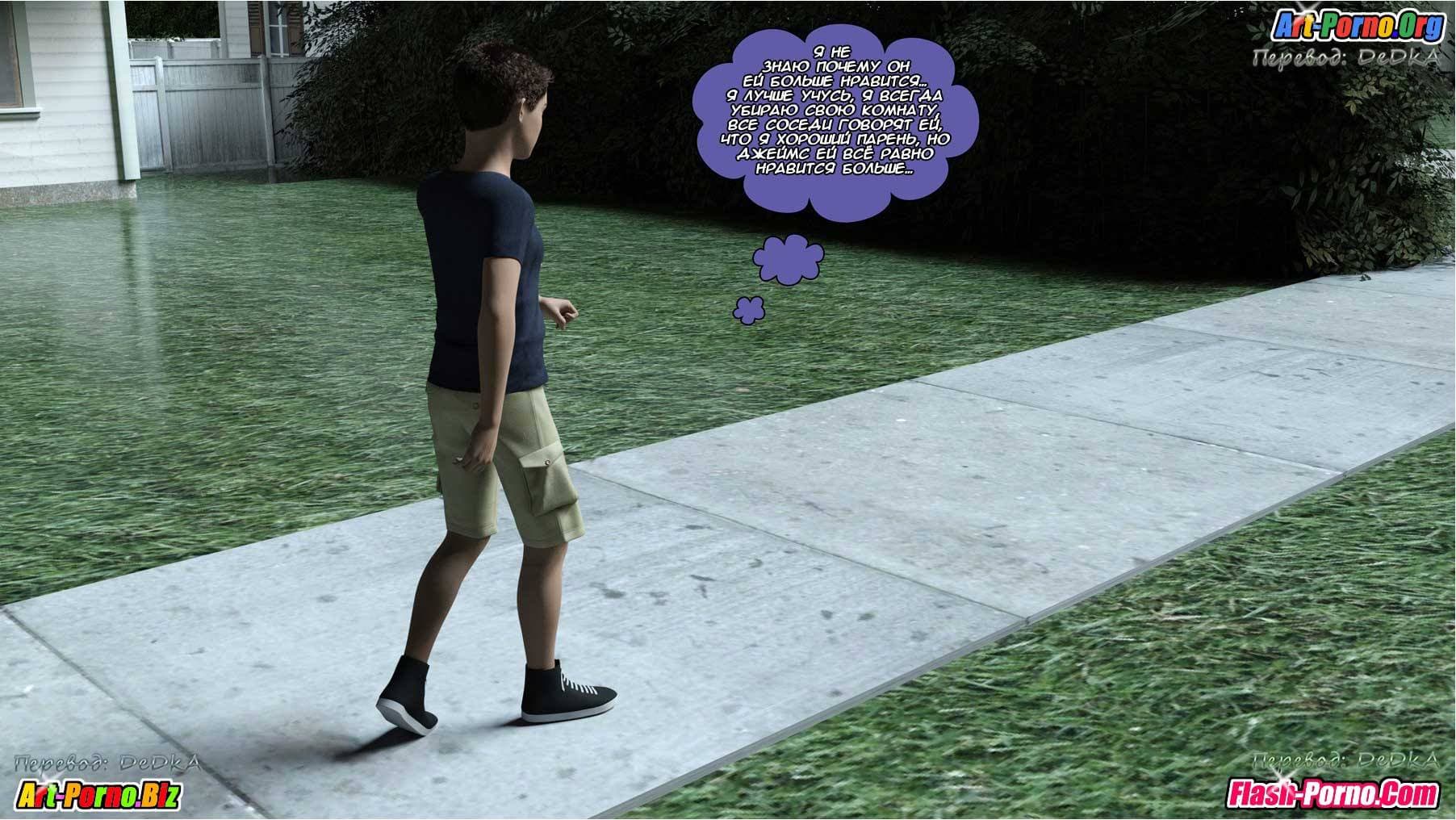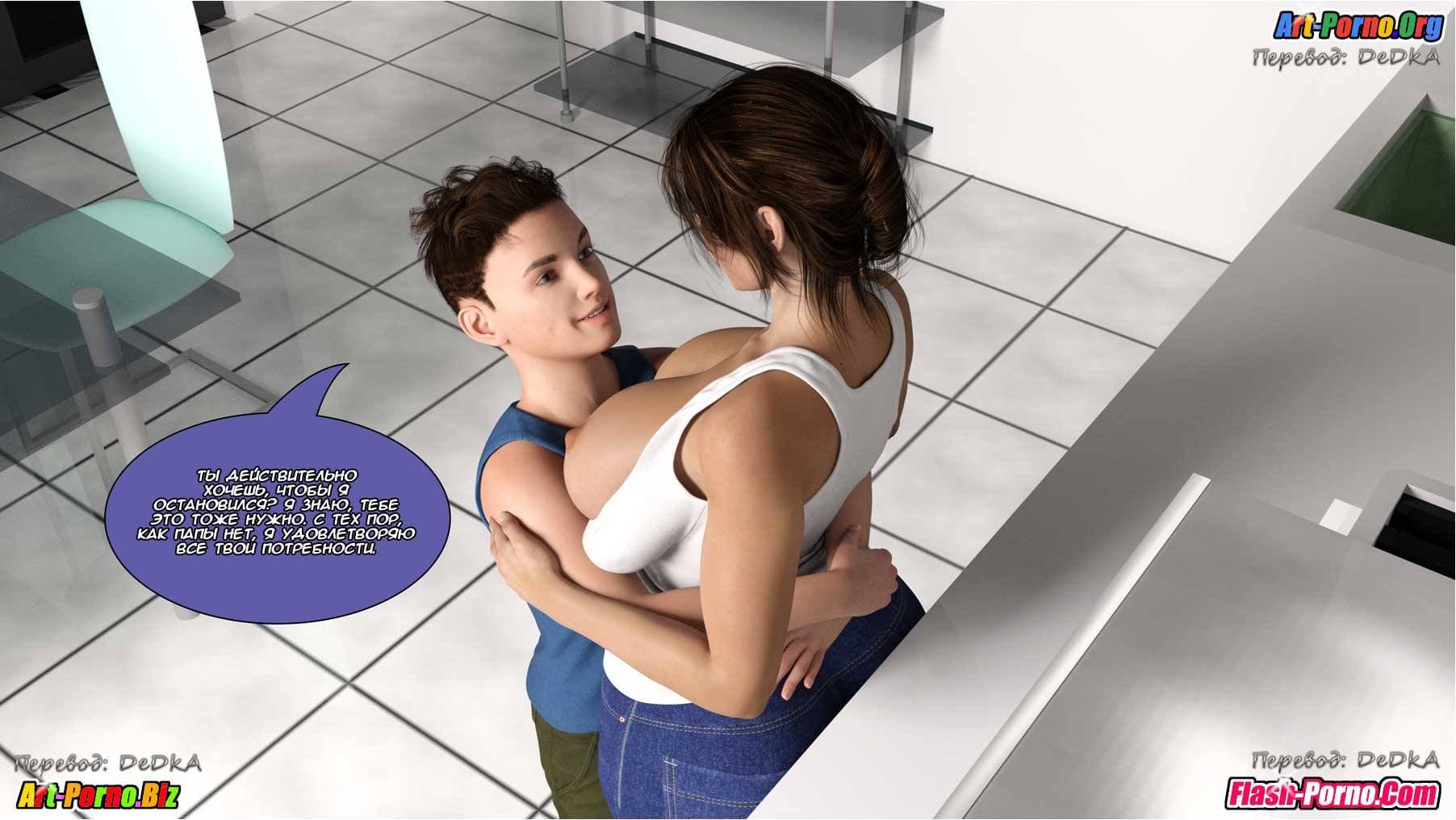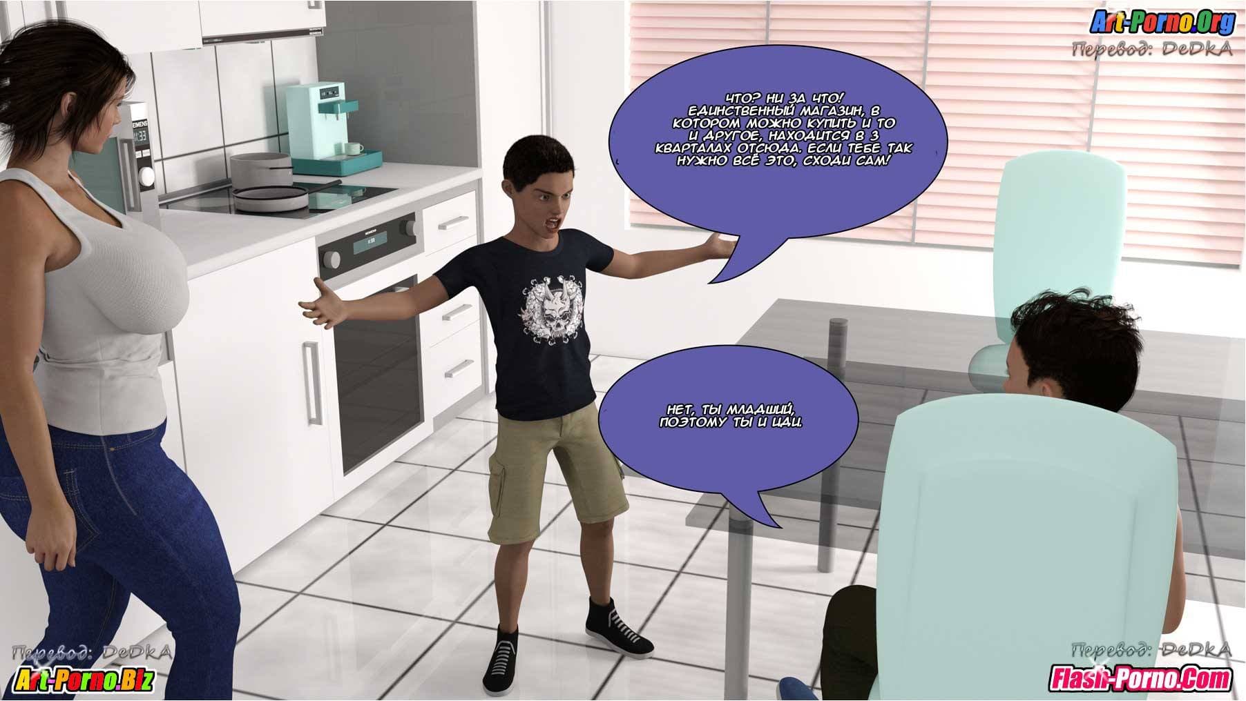 Вашему вниманию представлены новые инцест порно комиксы на русском языке. Речь в данной истории пойдет об одной зрелой, но в самом соку женщине, которая живет без супруга с двумя своими сыновьями. Ее младший сын и убирается лучше в комнате и в учебе преуспевает сильнее, чем старший, и все соседи, живущие рядом считают его отличным парнем, но тем не менее у мамочки любимчик именно старший сын. Но все же, почему так, а не иначе? Видимо есть, какой – то секрет…