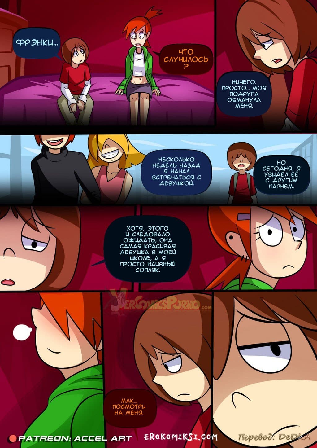 Порно комикс Мак Первый раз поведает сексуальную историю о том, что столкнувшись с изменой девушки, с которой Мак встречался уже целую неделю, он едва не впал в депрессию. Его успокаивало только то, что роман его, наивного «сопляка», и самой красивой девушки в колледже, не мог продолжаться долго. Но это было слабое утешение. Настоящее утешение пришло, когда его решила утешить Фрэнки…