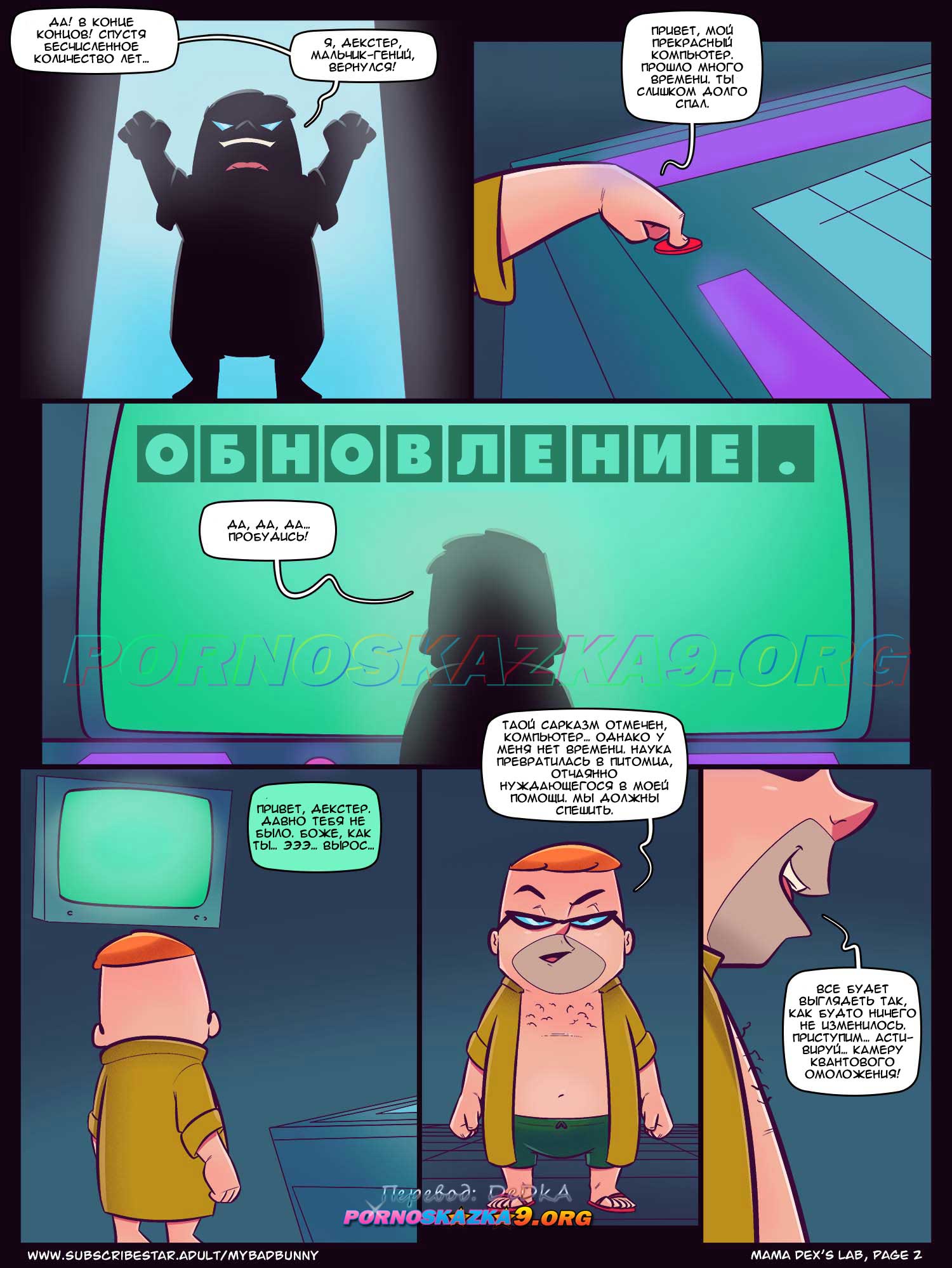 Порно комикс Мама. Лаборатория Декстера: Секс в воздухе. Mama Dex Lab. Dexters Laboratory. My Bad Bunny. Декстер из будущего вернулся в прошлое чтобы трахнуть свою мамку, он побрил лицо и прикинулся молодым, а потом проник в ванную к милфе и соблазнил ее.