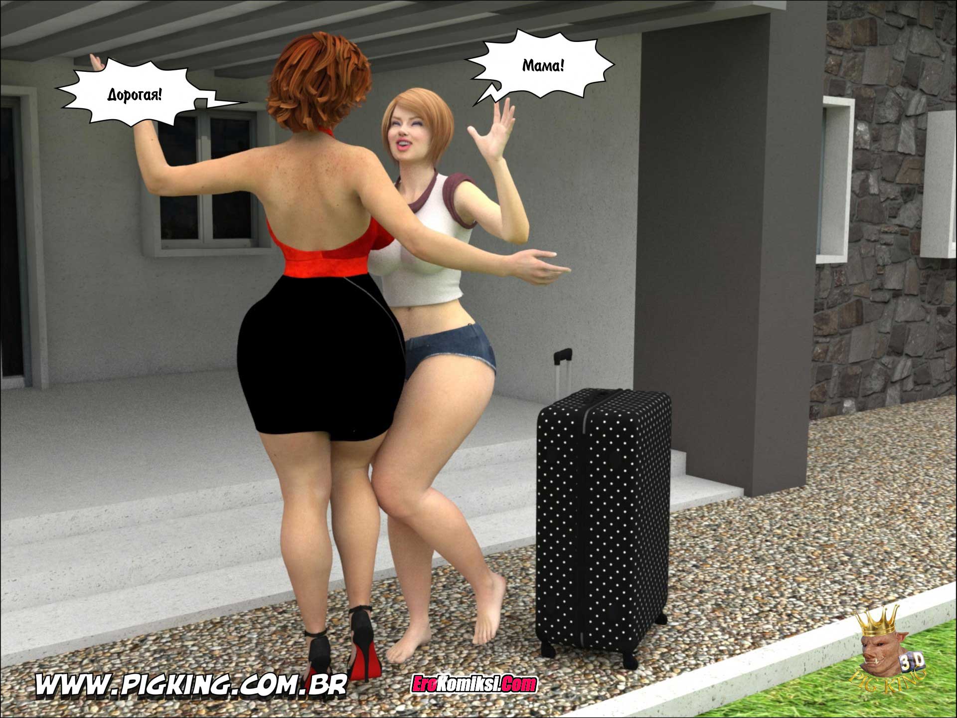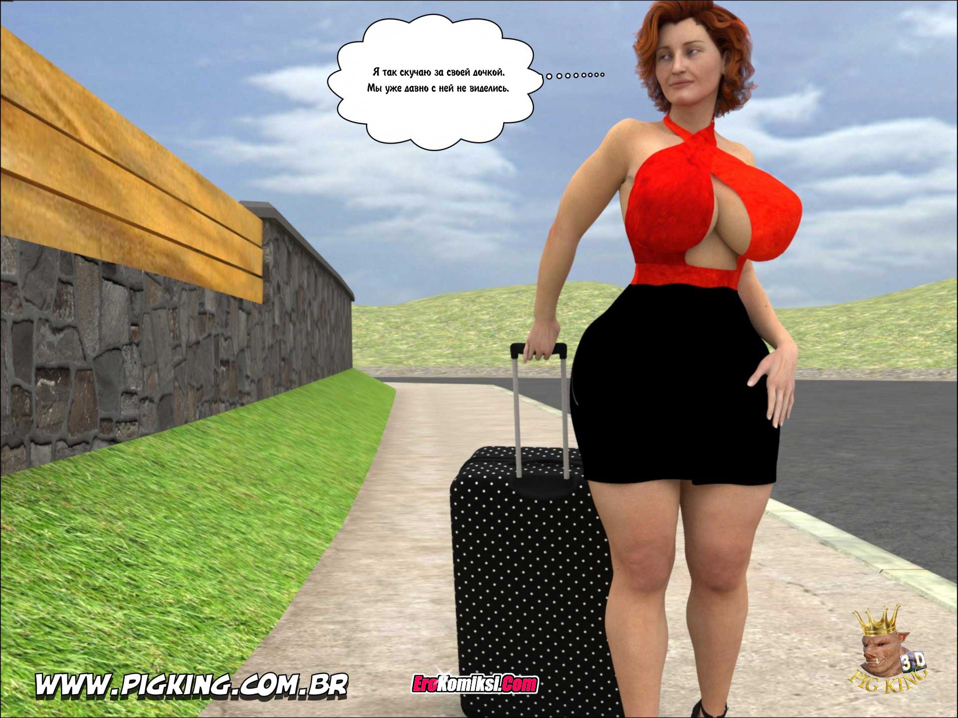 Мать приехала в гости к своей замужней дочери. Дочка с радостью встретила мамашу. Было уже поздно, но муж дочери всё ещё был на работе. Мать сказала дочери, что пообщаться они успеют и завтра, а сейчас она хочет принять душ и отдохнуть. После этого мать отправилась в душ, а дочь пошла гулять с подругами. Когда почти голая мамаша вышла из душа, она увидела, что на диване сидит её зятёк…