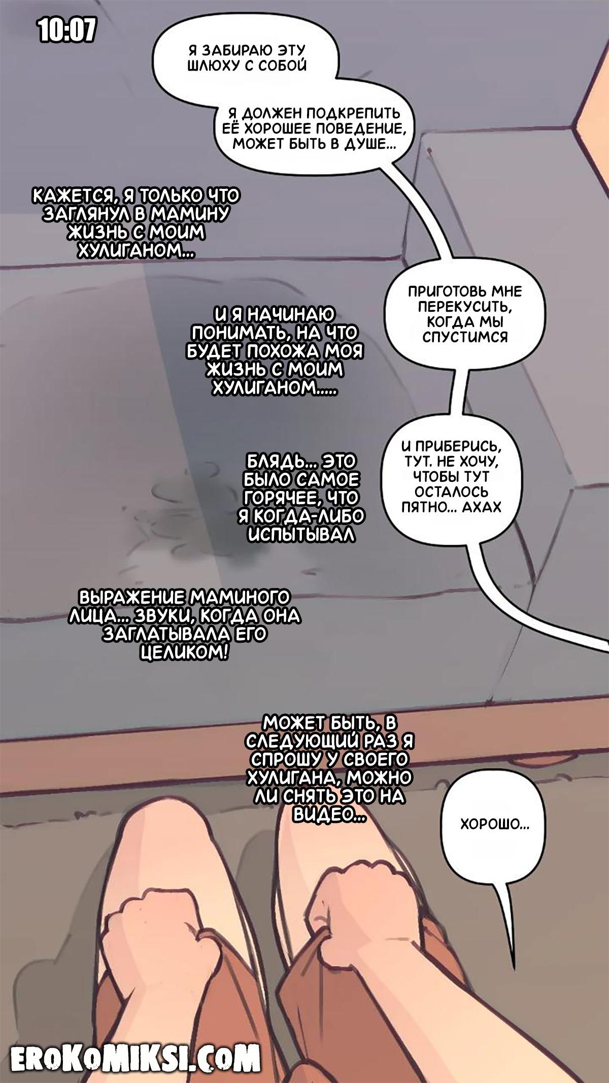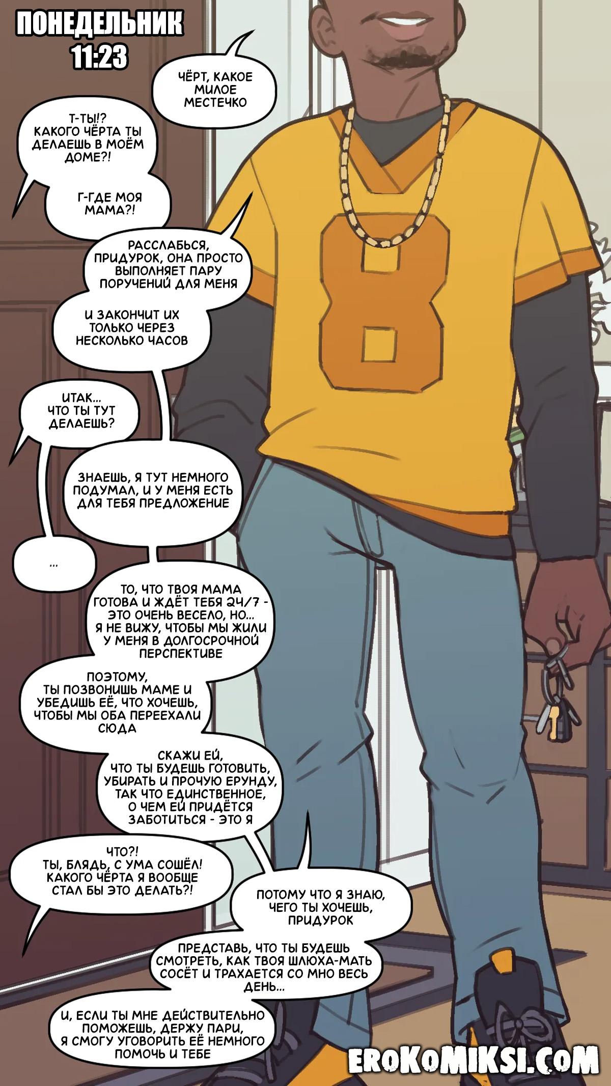 Порно комикс Мама Разбирается с моим Хулиганом. Часть 2. Хулиган совсем обнаглел и заявился в дом паренька, и теперь он будет жить у них в доме и мать паренька будет его лично шлюхой, которую он будет использовать в любое удобное время…
