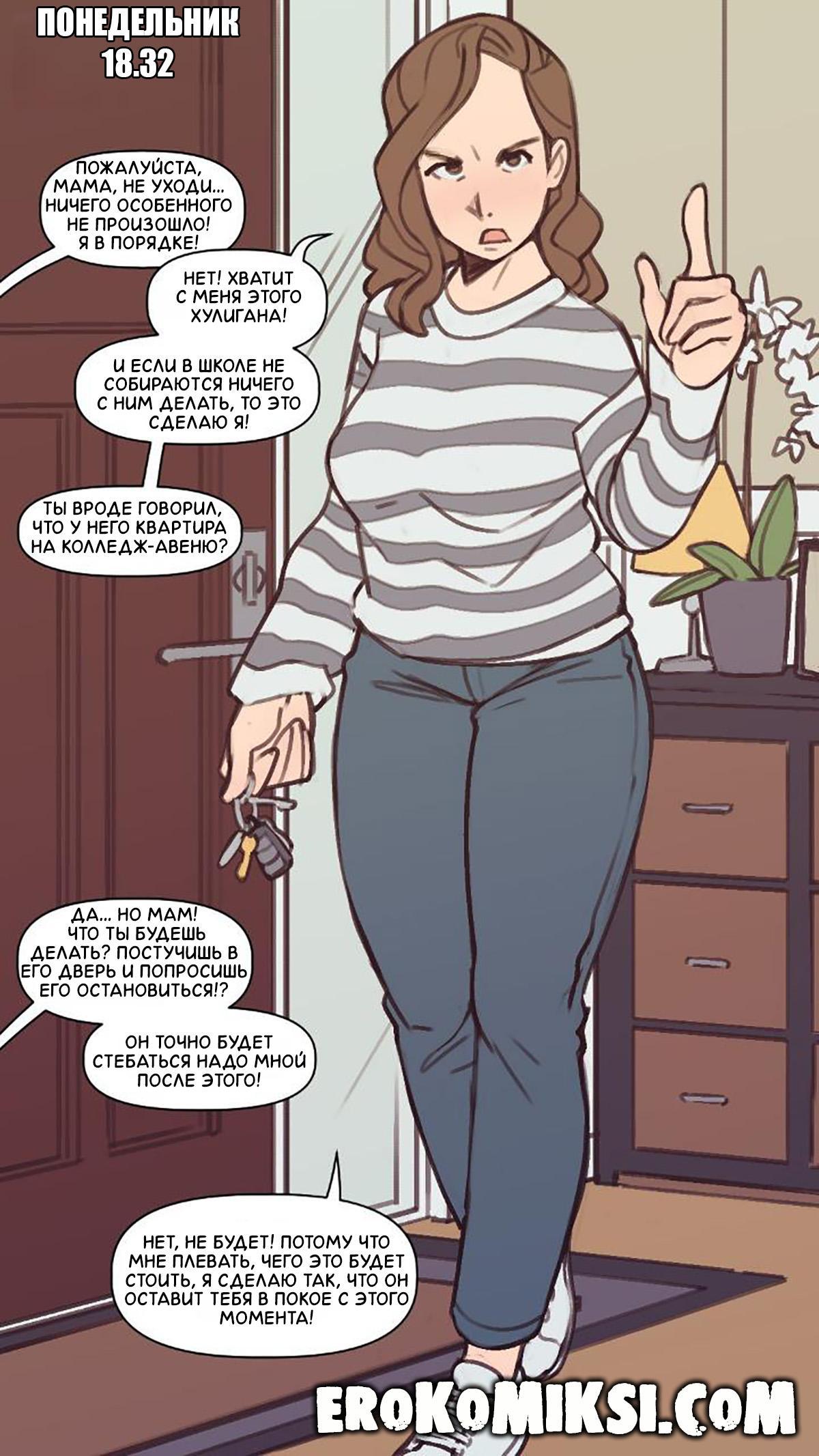 Порно комикс Мама Разбирается с моим Хулиганом. У паренька проблемы, его без конца троллит местный хулиган. Мать парня решает положить этому конец, чтобы спасти сыночка от нападок и отправляется к хулигану. Она не находит ничего лучше, как отсосать мерзавцу и подставить ему свою сочную киску. Но об этом узнаёт её сыночек…
