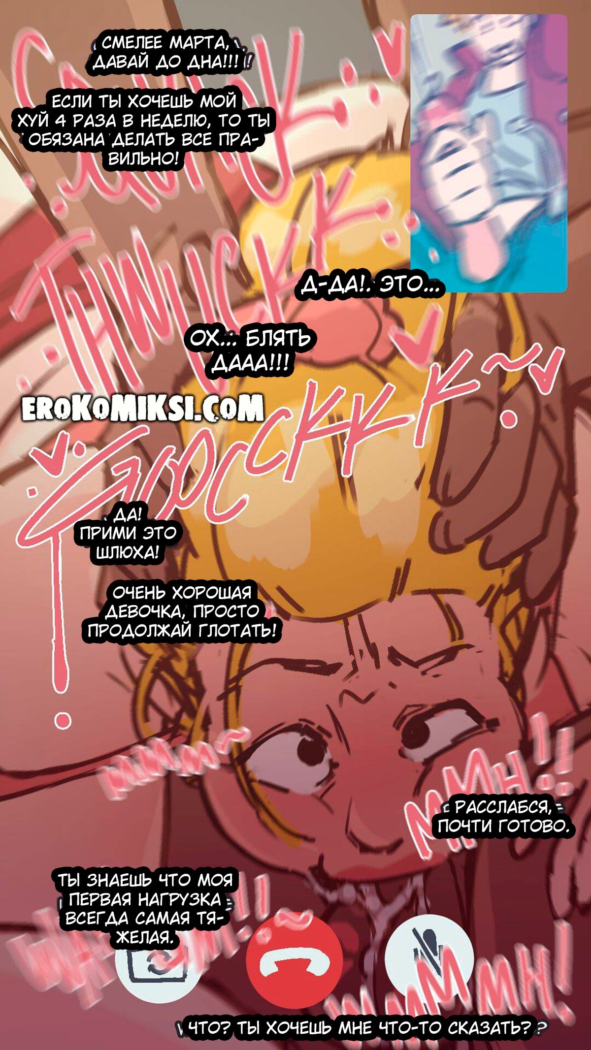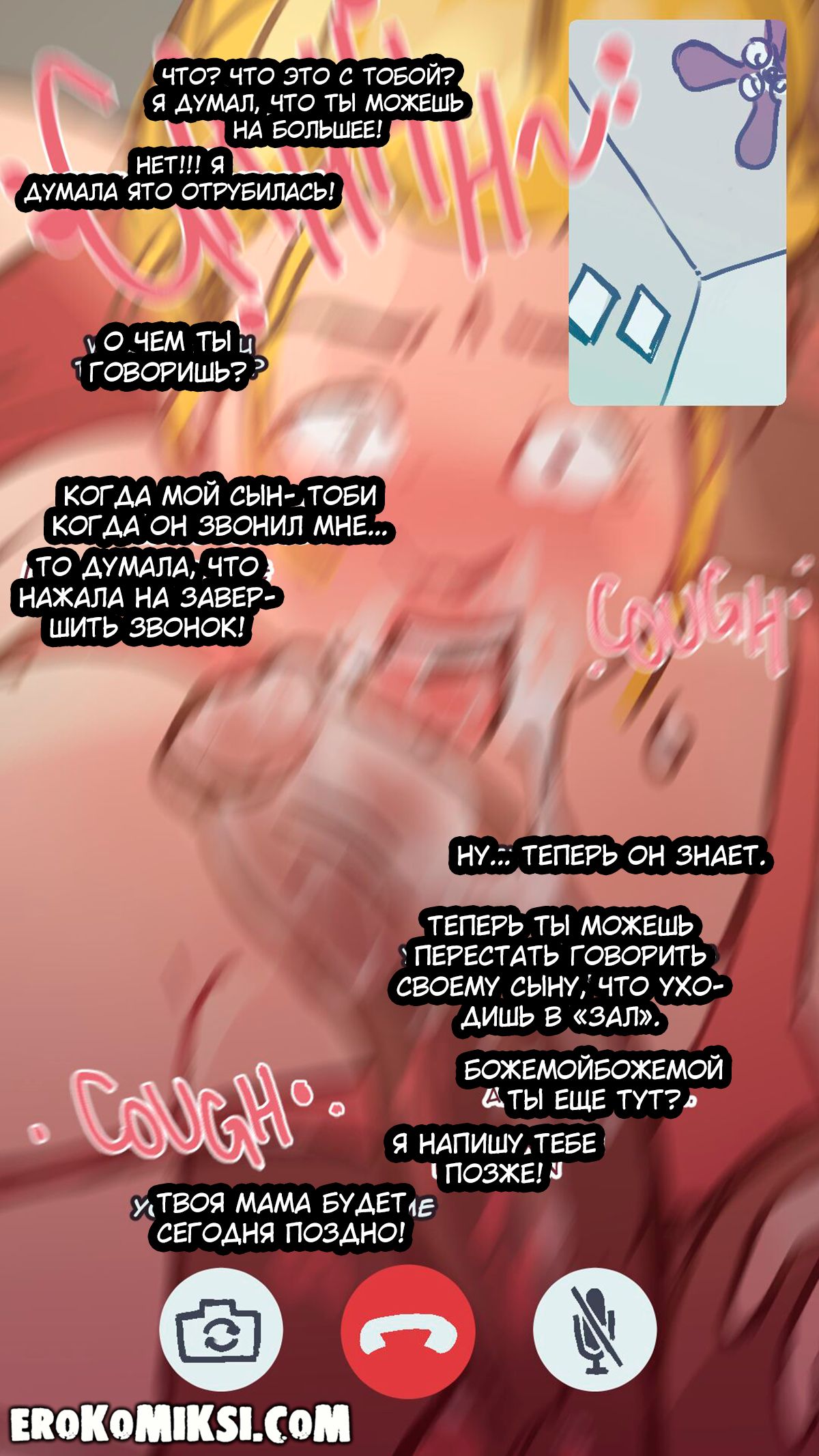 Порно комикс Мама в спортзале. Шлюховатая мамка обманывая сына ходила к своему ебырю, но забыла завершить звонок, из-за чего сын узнал о том, как первоклассно его мать отсасывает член…