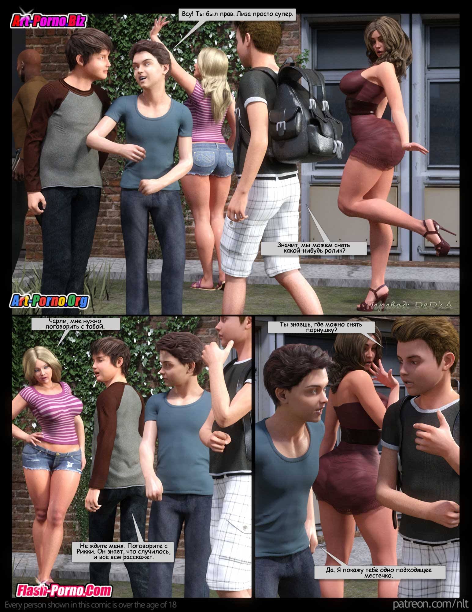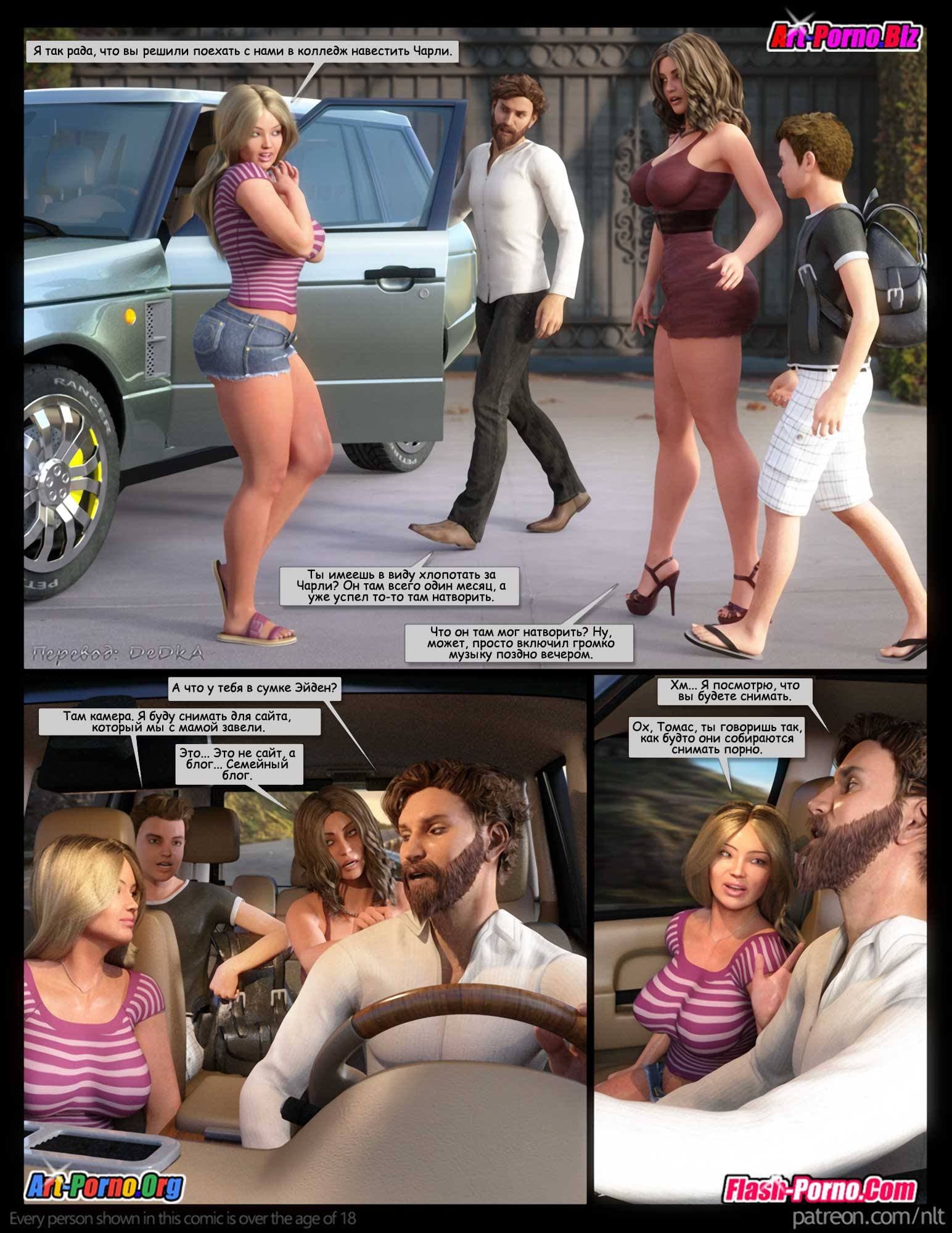 Представляем вашему вниманию долгожданные инцест комиксы, где мама и сын, а также аппетитная тетя и племянник вытворяют такое!!! В общем, похоть в их действиях просто зашкаливает! А начинается все тихо и мирно, с того, что один парень со своим соседом по комнате в колледже были пойманы за тем, что подглядывали за девушками в женской раздевалке. Это был очень серьезный проступок, наказанием за который юношам грозило отчисление. Об этом случае было сообщено родителям. И вот теперь зрелая мамаша, ее взрослая сестра и племянник едут «разруливать» неудобную ситуацию. А дальше…