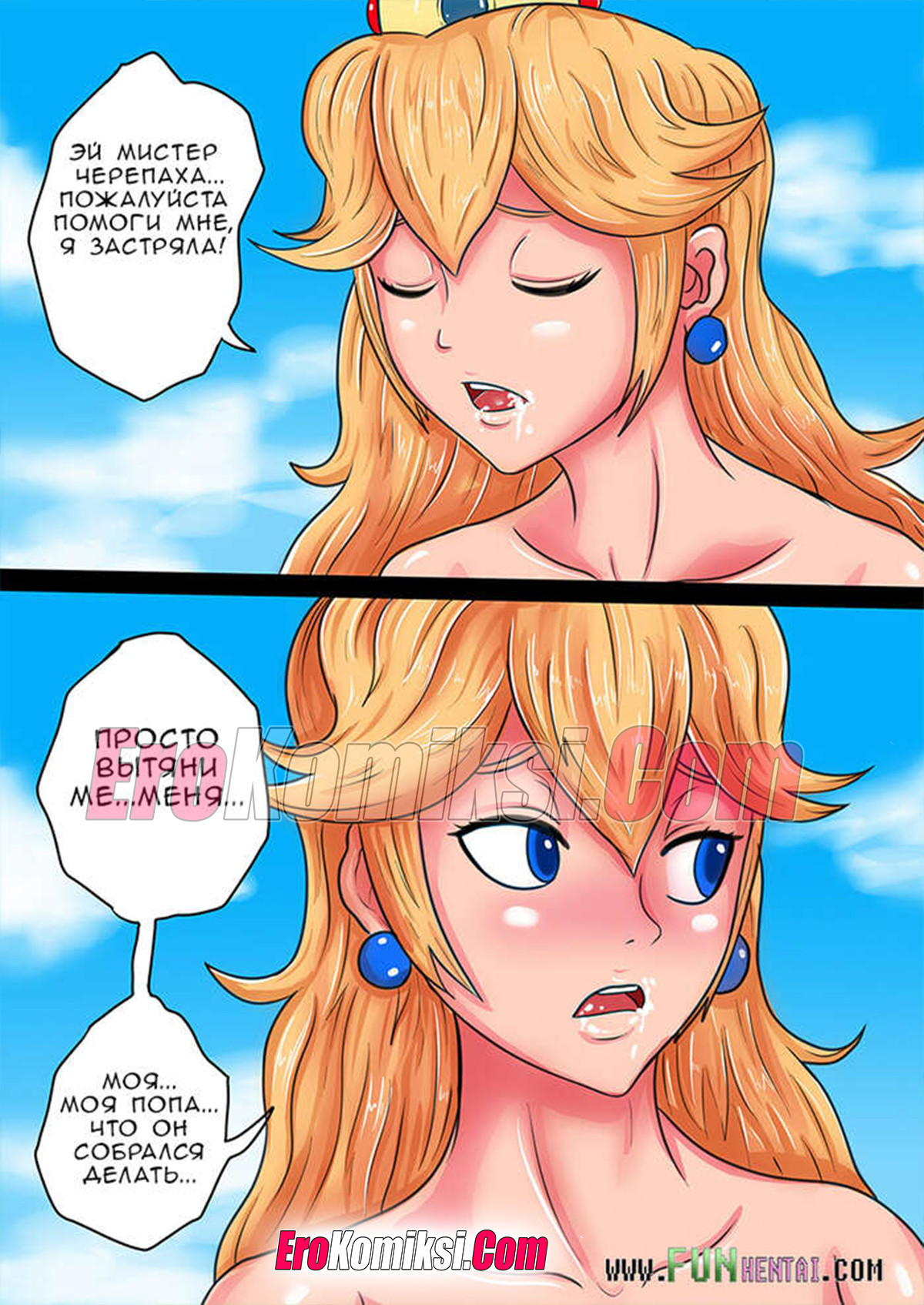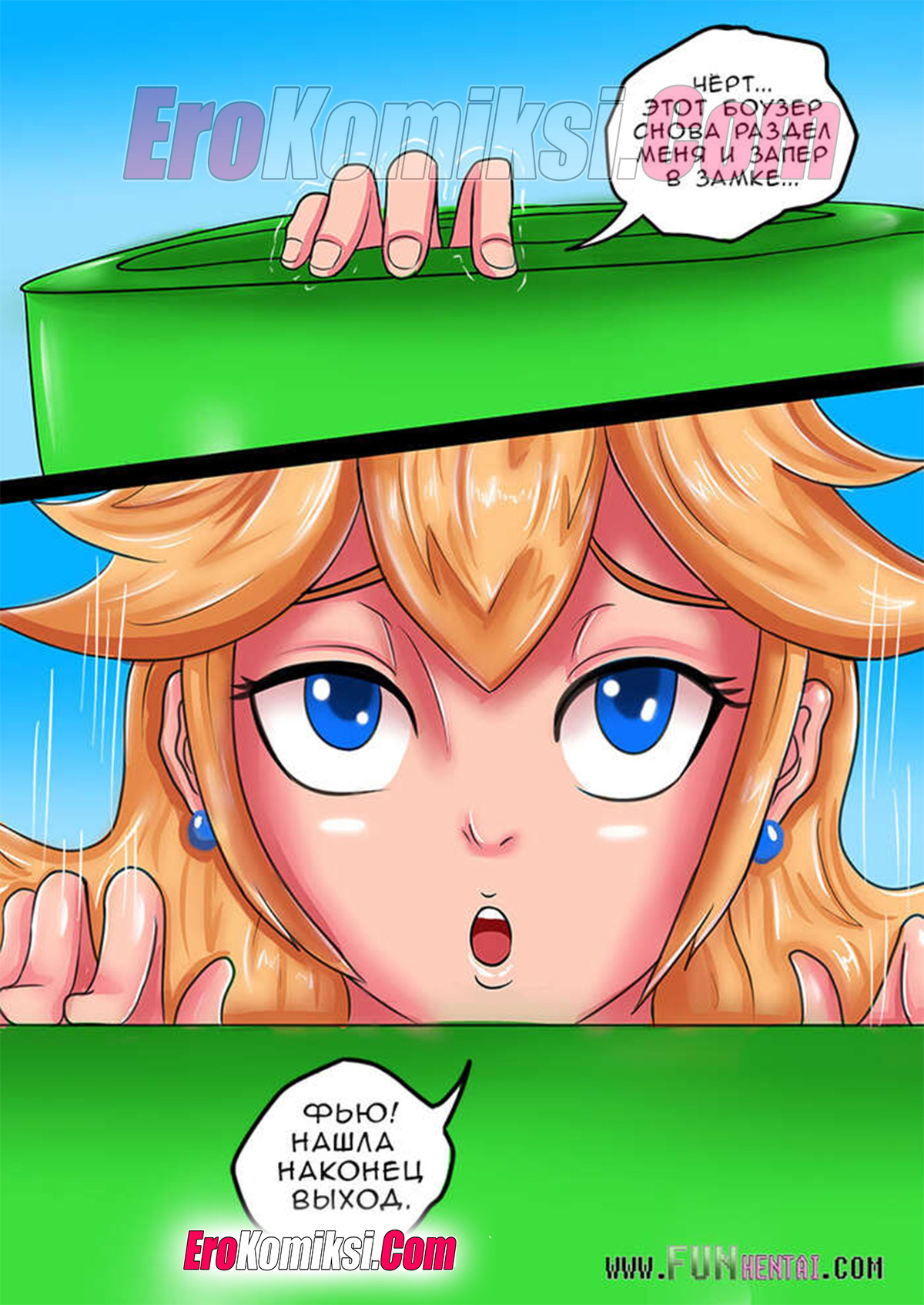 Порно комикс Марио. Неудачный побег принцессы Пич. Горячая принцесса блондинка пыталась сбежать из плена абсолютно голой. Но когда красотка уже почти выбралась, на нее напало волшебное растение, которое хорошенько выебало все ее тугие дырочки.