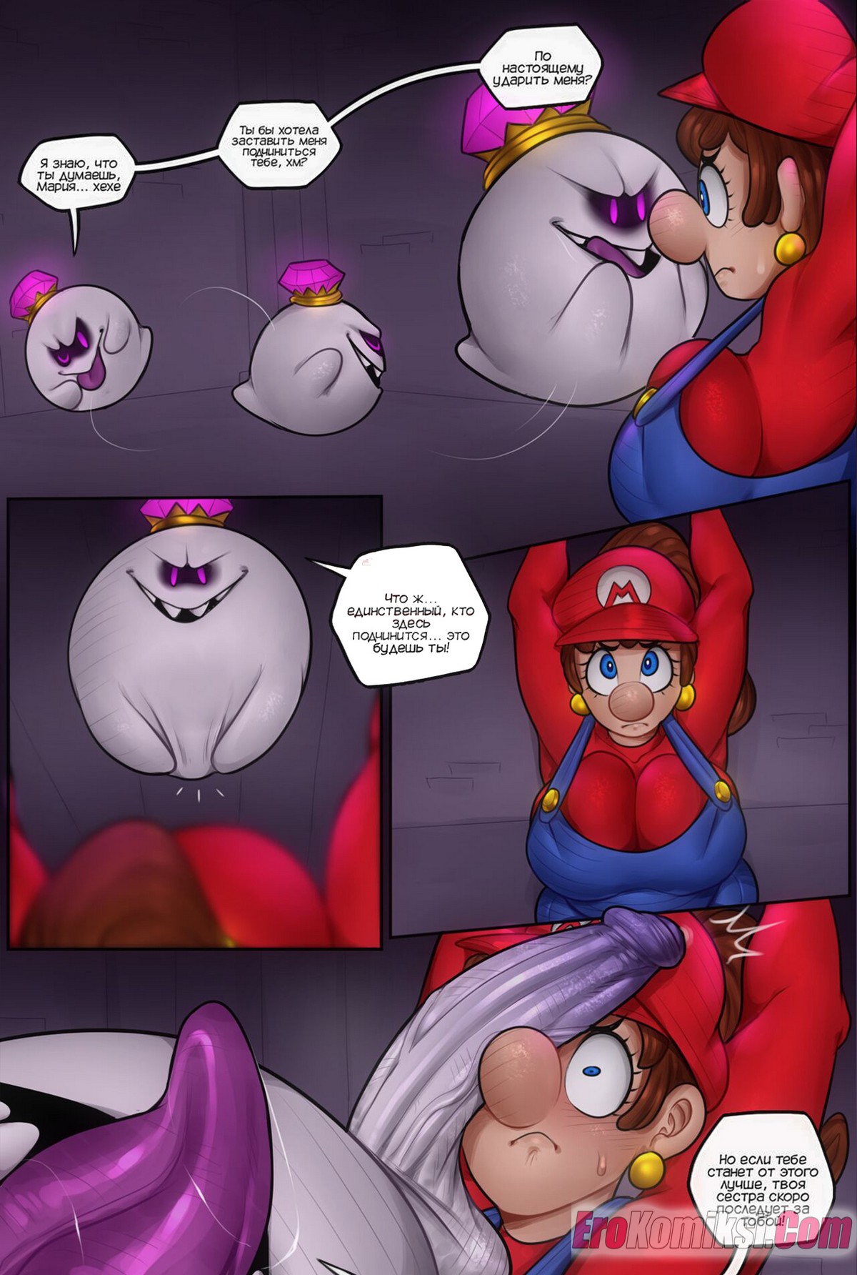 Порно комикс Марио. Особняк Марии. Marias Mansion. Detnox Горячая сисястая брюнетка попала в плен к монстру и он решил наконец с ней повеселиться. Он достал свой большой хуй и дал сучке у себя отсосать, после чего решил ее выебать.