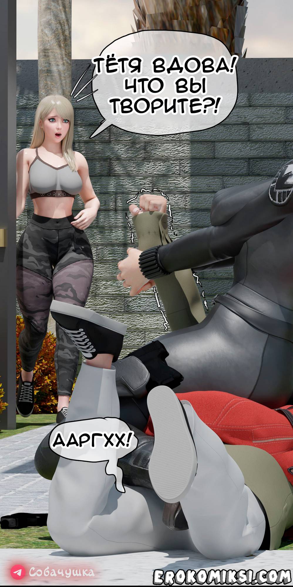 Порно комикс Marvel. Моя соседка — Вдова. Часть 1. После щелчка Таноса парней на земле стало крайне не хватать…