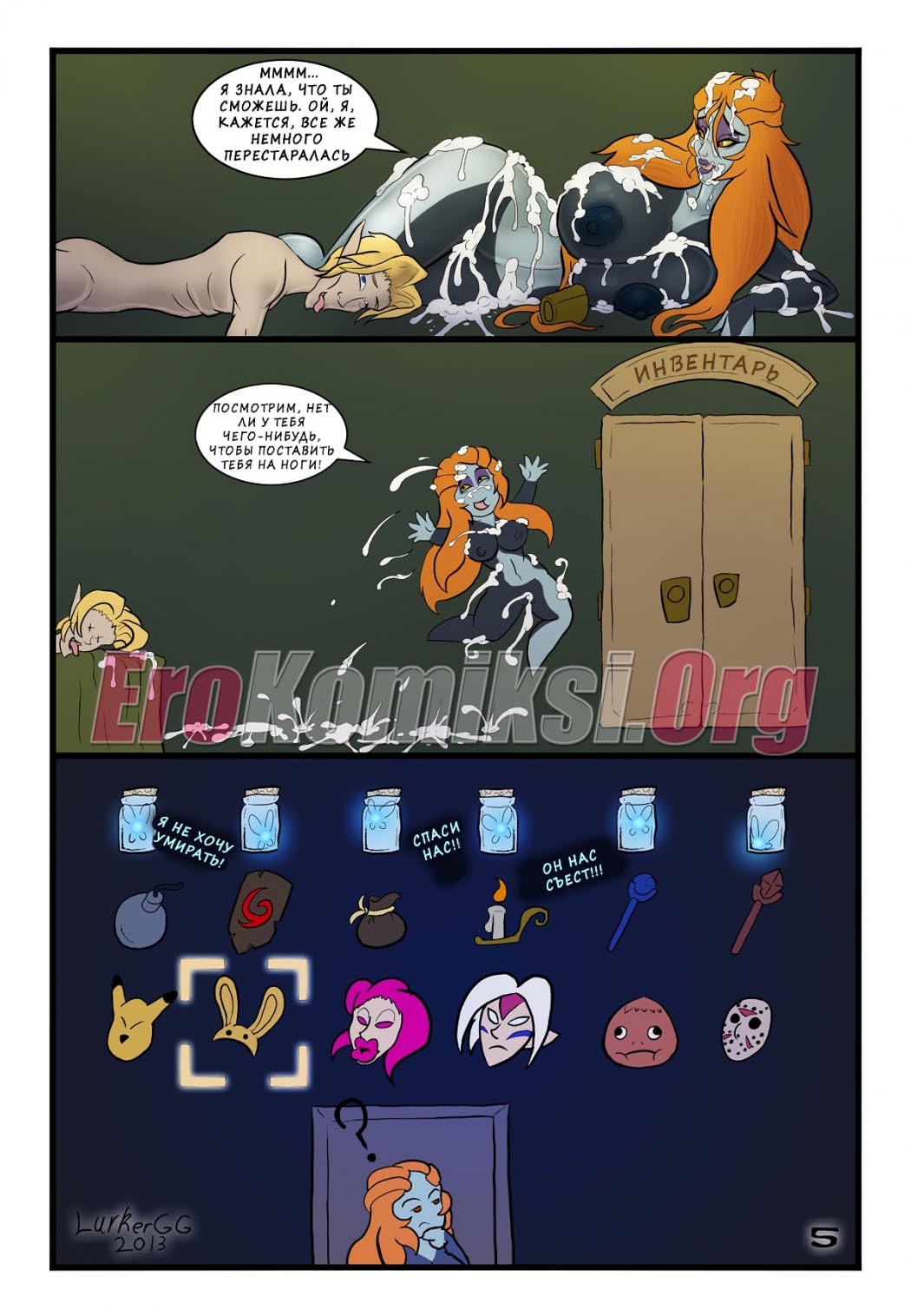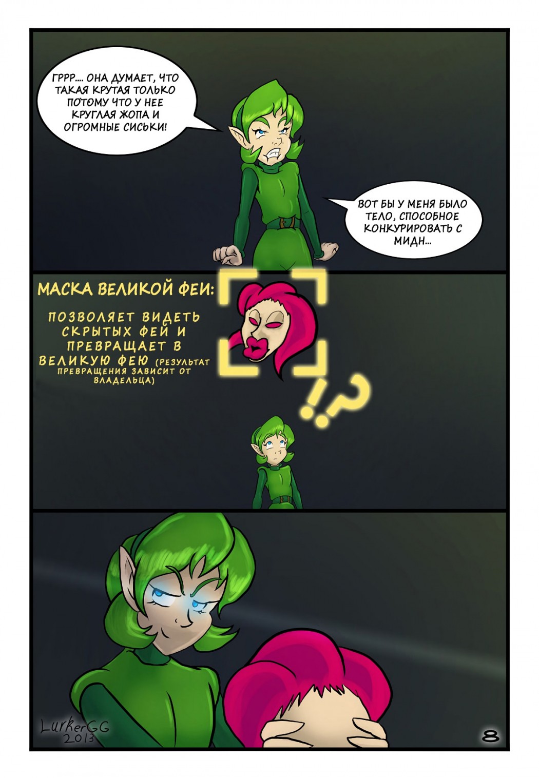 Порно комикс «Маска Безумия» расскажет о том, что глубоко в тёмном лесу Хайрула покоритель времени, масок, рыб и ветра с острова снов столкнулся с величайшим испытанием, и оказался слабаком. Выдохся и кончил раньше времени. Позор! Тоже мне, «покоритель»…