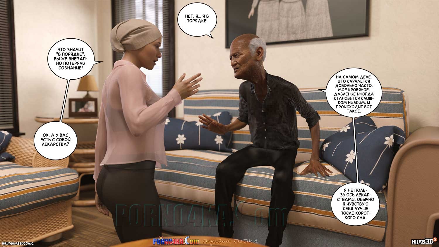 Порно комикс Массажист. Часть 3. Горячая брюнетка милфа затащила старика массажиста к себе дом после того, как он потерял сознание. Красотка напоила его чаем и дала мужчине поспать, после чего согласилась отпустить его…