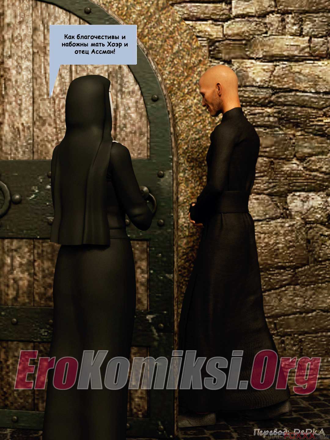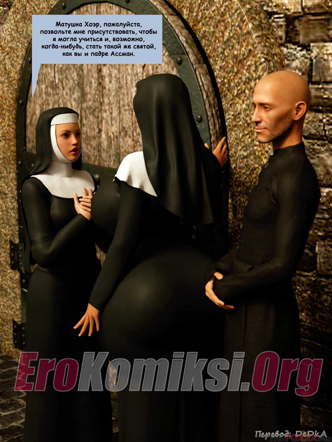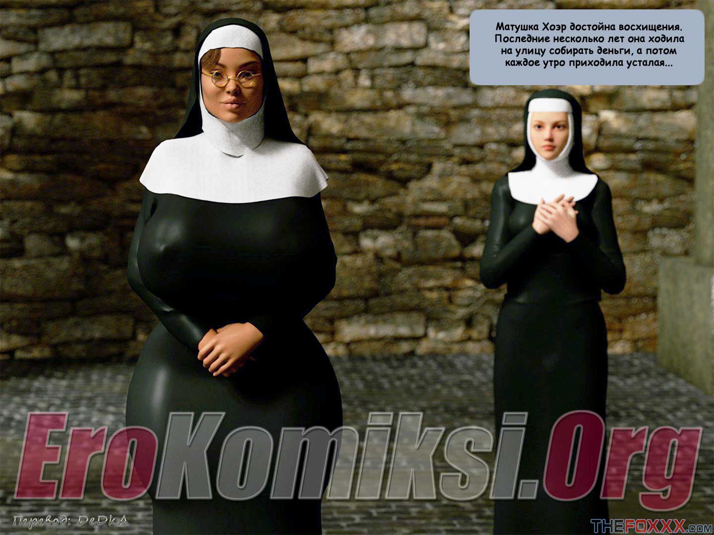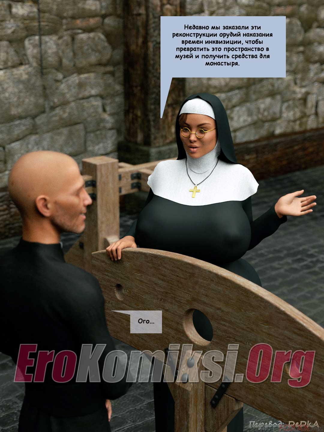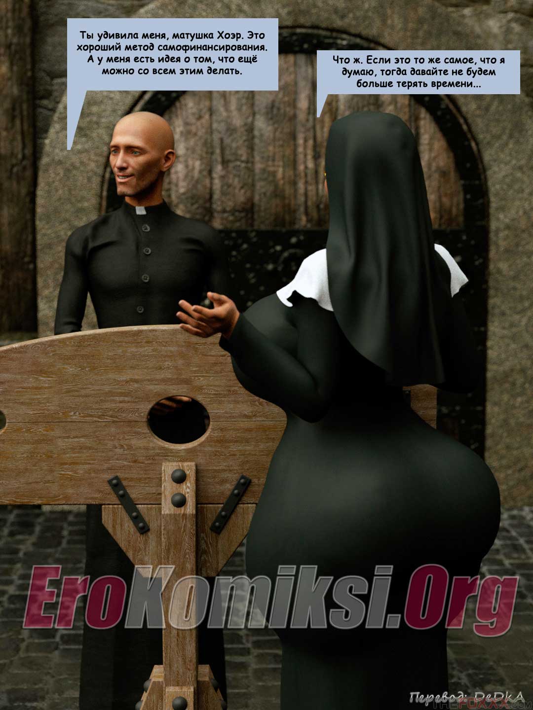 Порно комикс «Матушка Хоэр и первый секс Карлоса» поведает вам о том, как Матушка Хоэр заказала в монастырь реконструкции орудий наказания времен инквизиции, чтобы открыть музей и получать доход от посетителей. Но сегодня такие вещи мало кого интересуют, и ожидаемого дохода матушка не получила. Пришлось матушке Хоэр по ночам зарабатывать деньги для монастыря самоотверженно трудясь на ниве проституции…