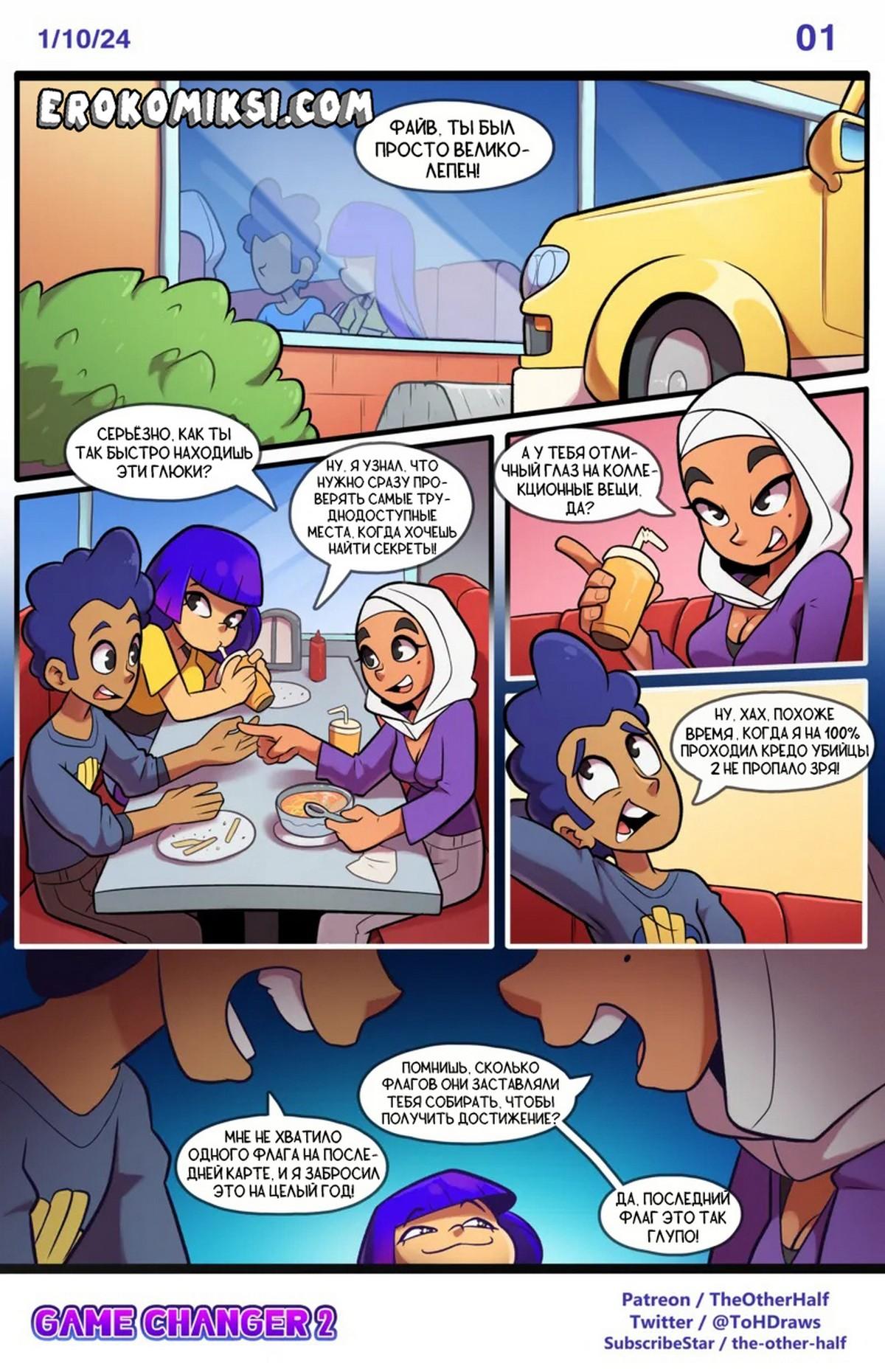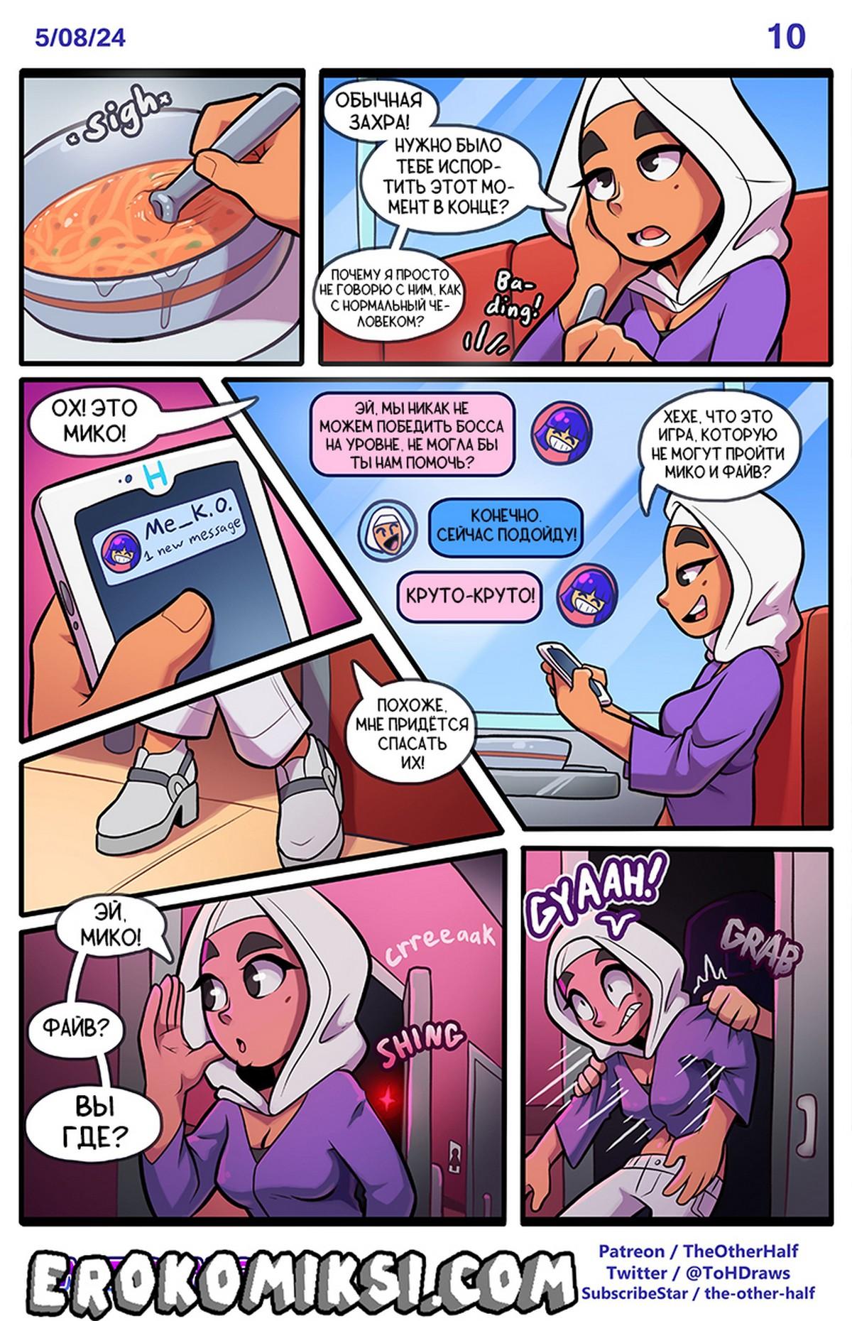 Порно комикс Механик. Правила игры. Часть 2. Похотливая сучка Мико заметила, что между Файвом и Захрой есть какая-то связь. Она решила воспользоваться этим и подтолкнула своих друзей на жёсткую групповуху. Так Файв трахнул обеих шлюшек сразу…