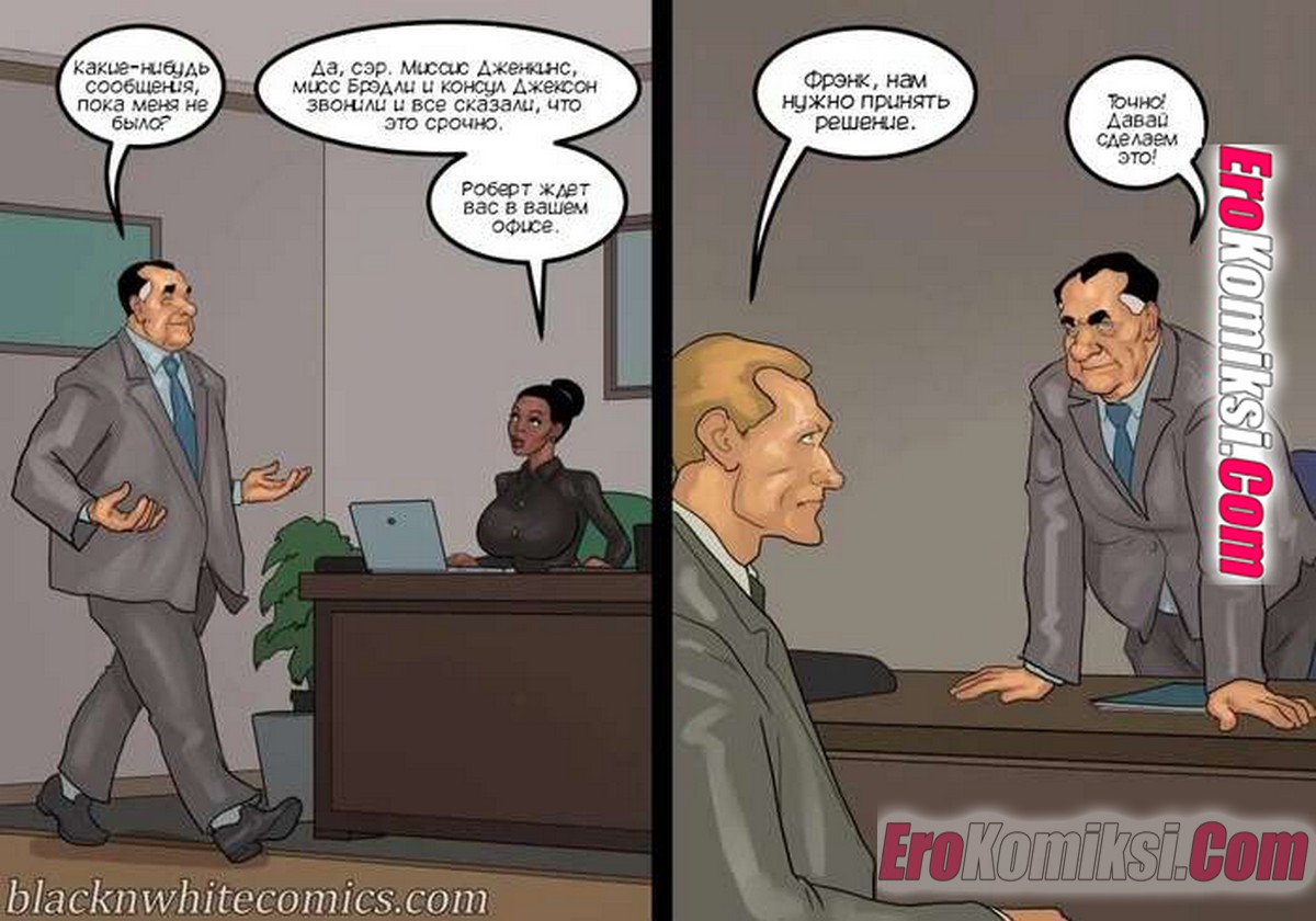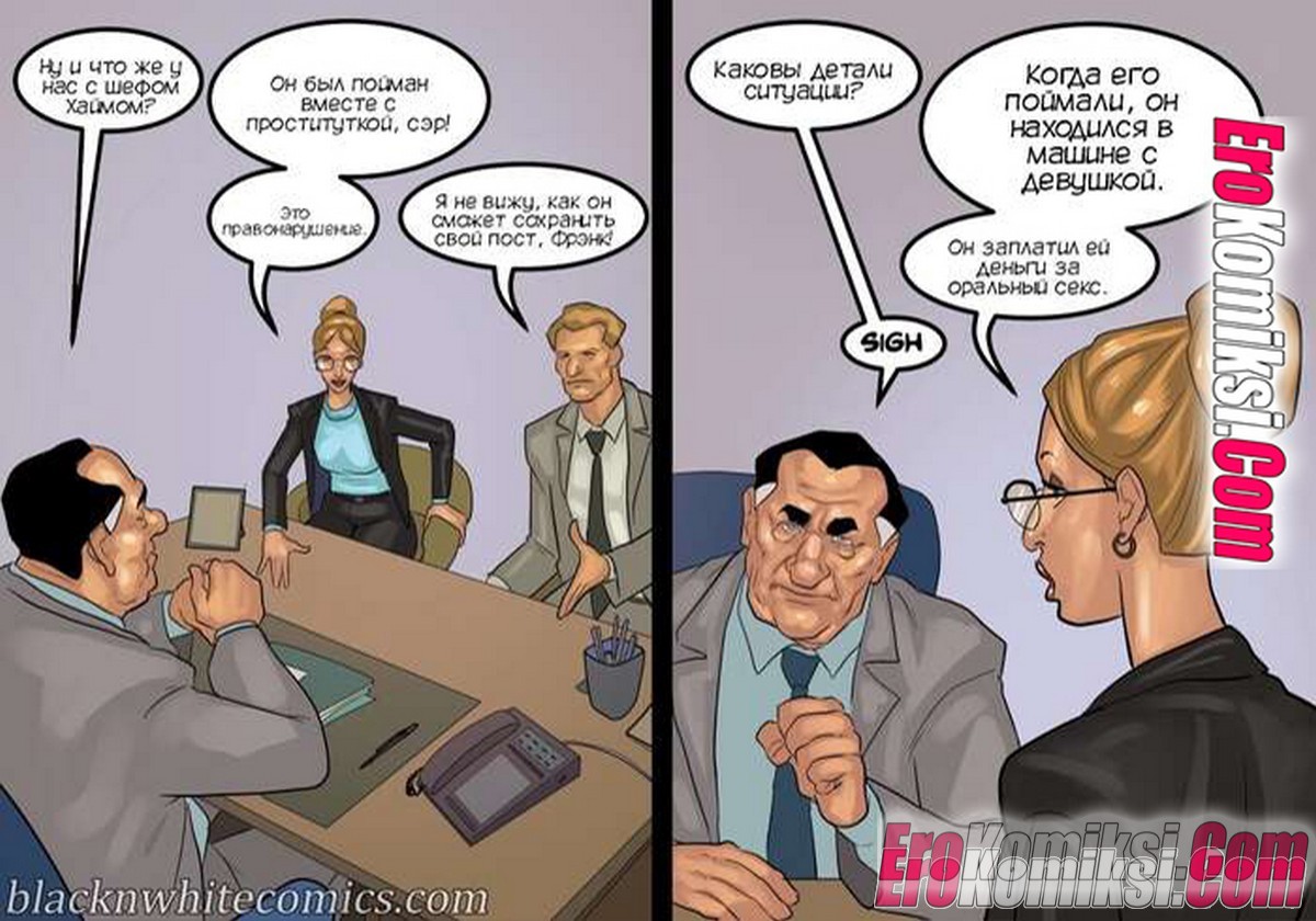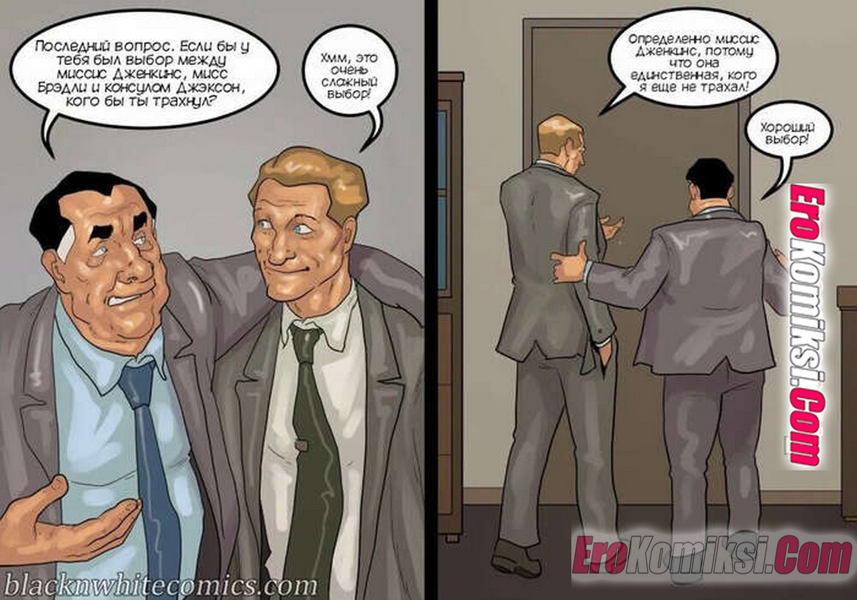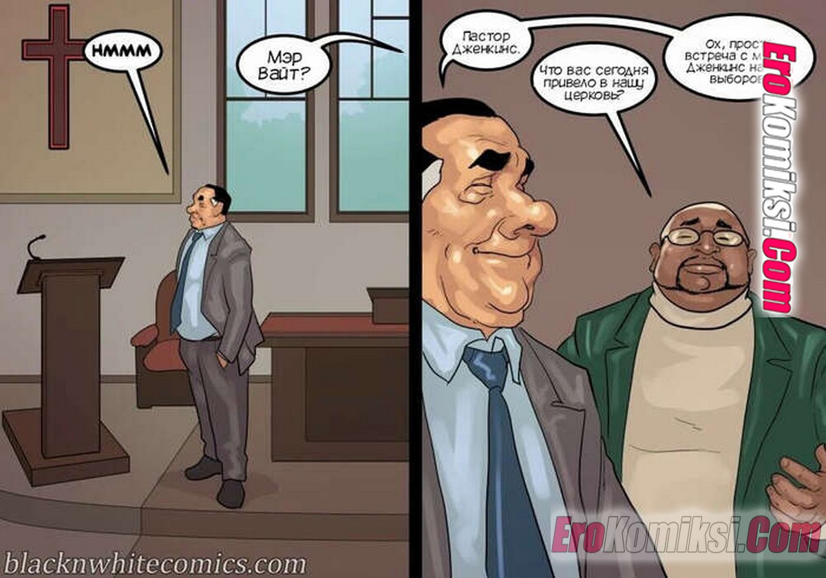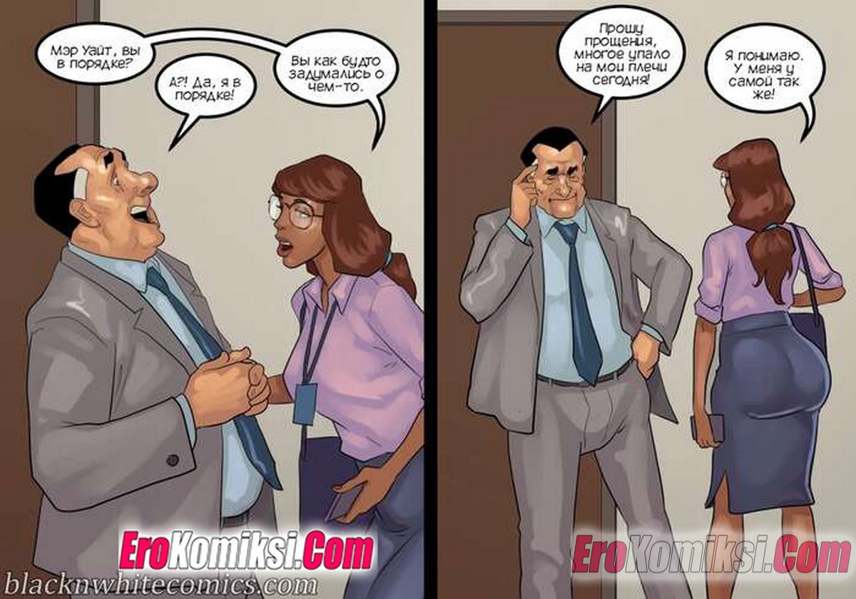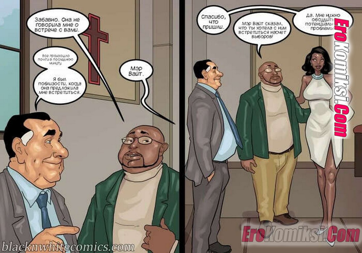 Порно комикс Мэр. Часть 5. The Mayor. BlackNWhiteComics Мужик решил повеселиться перед сном со своей женой блондинкой. Она уже собралась сосать его большой хуй, но внезапно уснула. К нему в кровать залезла его знакомая, которая решила побыть для него госпожой.