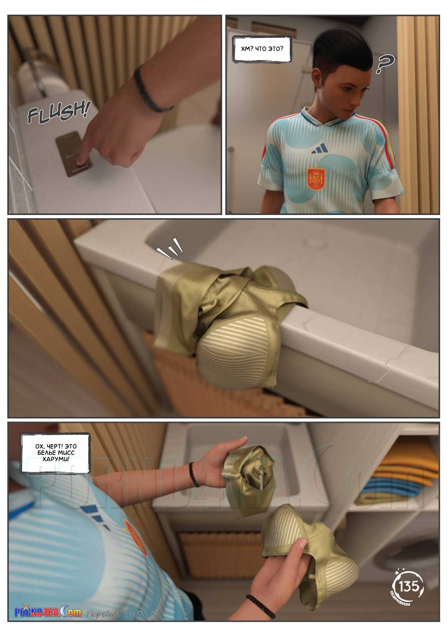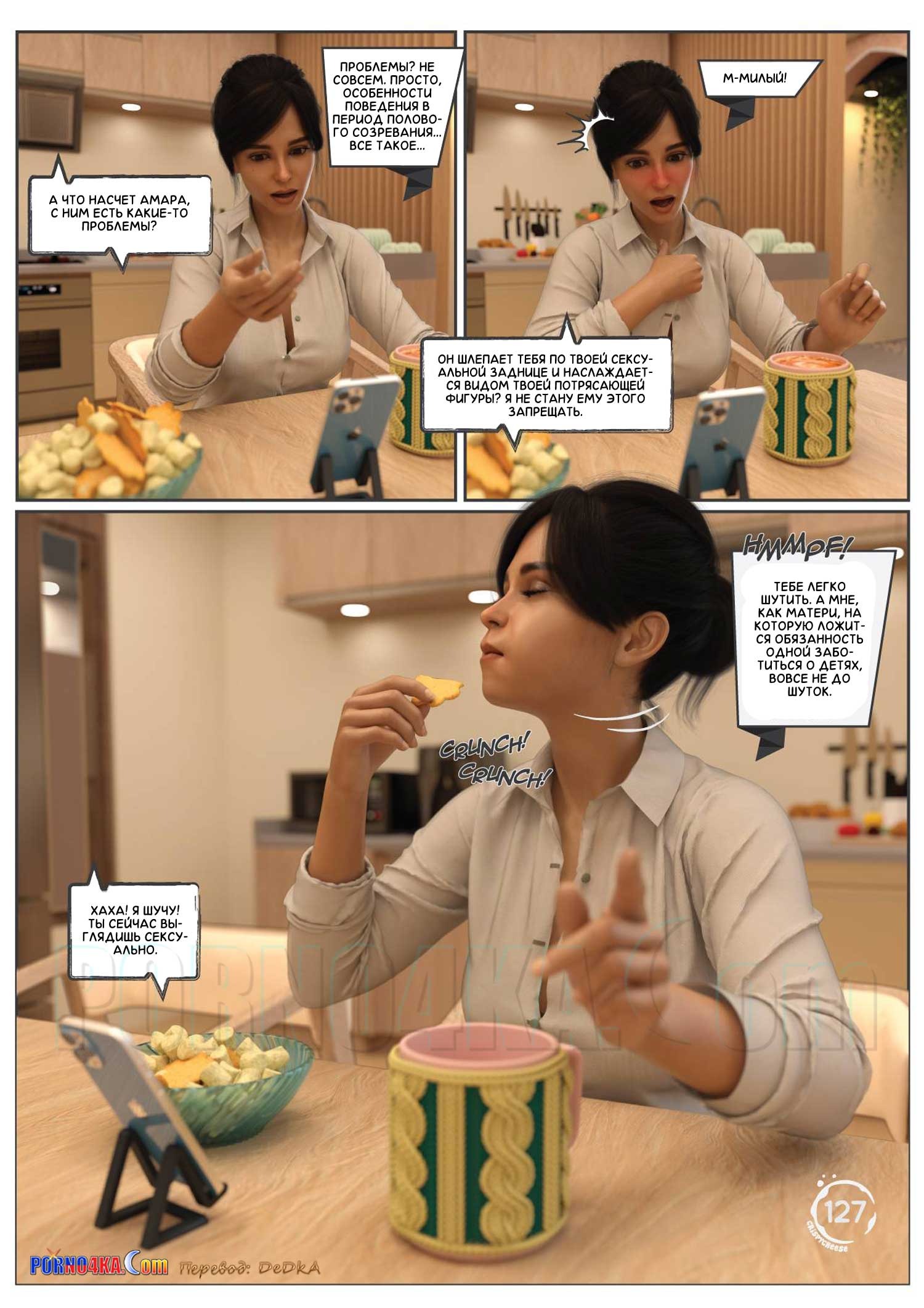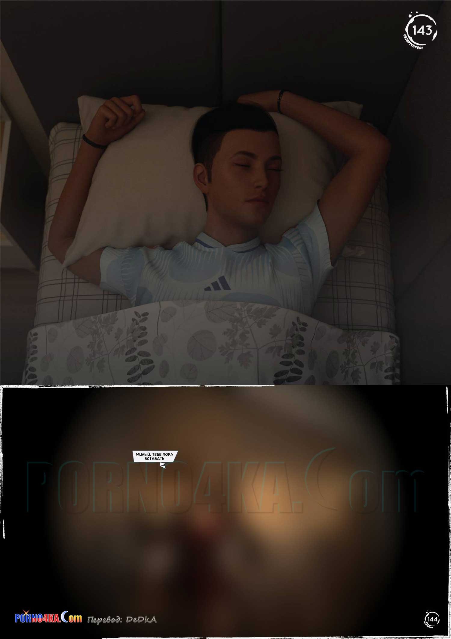 Порно комикс Между влечением и близостью. Часть 2. Between Affection And Intimacy. Crispy Cheese. Молодому парню приснился сон. Где горячие красотки пришли к нему в комнату и стали сосать большой хуй парня, после чего, проснувшись, он отправился на кухню, где стал ласкать пизденку девушки…