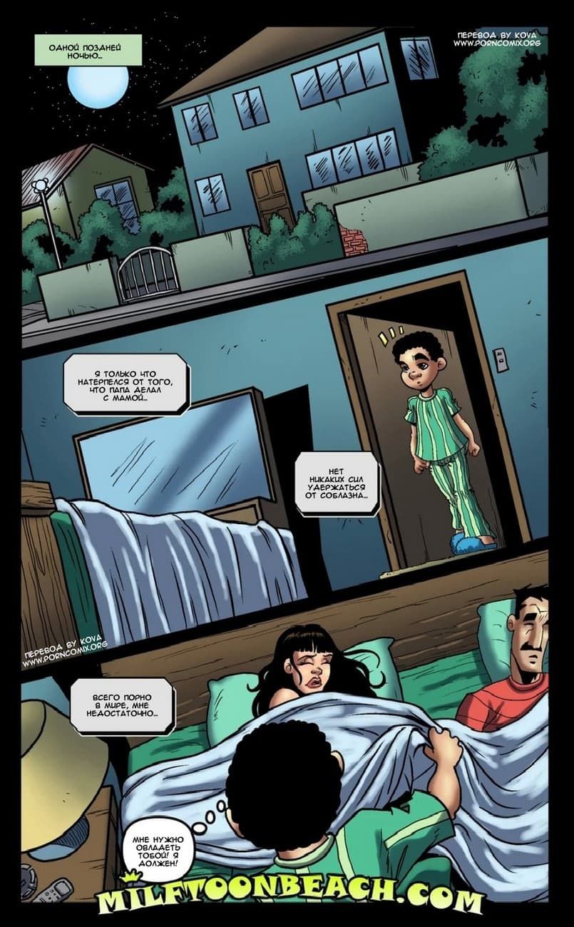 Перед вами уже третий рисованный порно комикс на русском из серии милфтунбич. В данном эпизоде пацан Кайл под покровом ночи зашел в родительскую спальню. Он желал одного – кончить в мать, тем самым оказать помощь в ее оплодотворении и плюс к этому удовлетворить свою ненасытную похоть.
