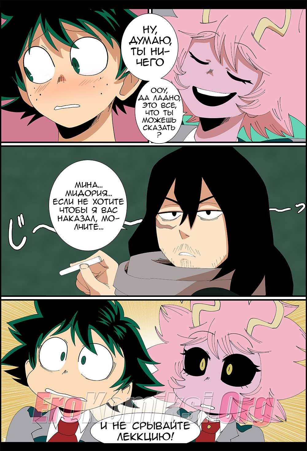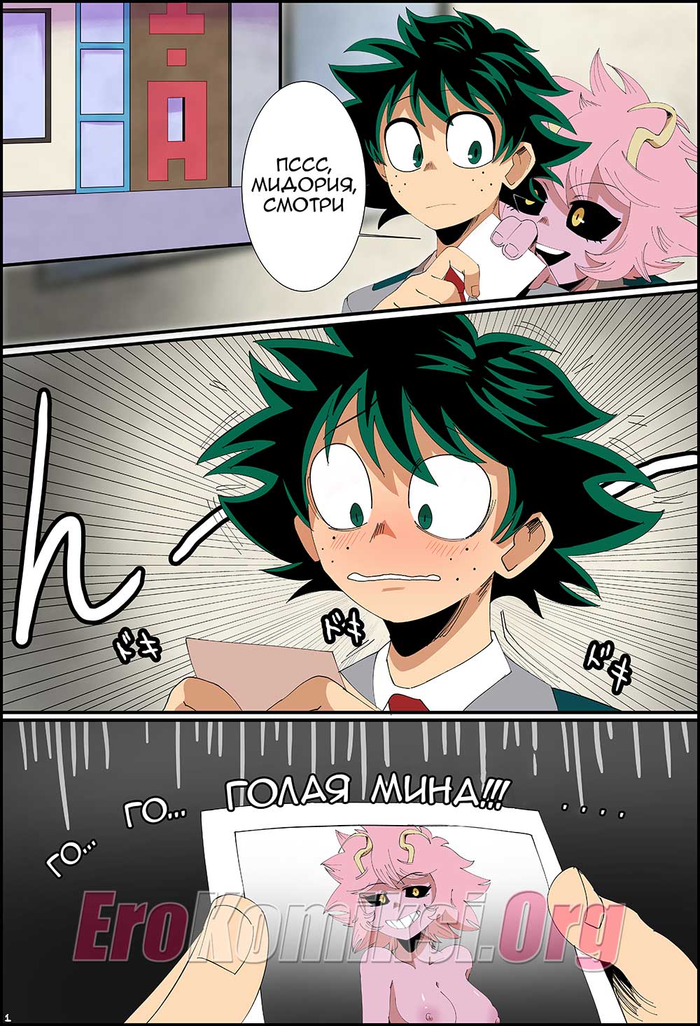 Порно комикс «Мина и Деку» расскажет о том, как развратная девушка Мина, полное имя — Мидория, показала Деку свою фотку, где она голая, и сказала ему, что она сделала это только для того, чтобы посмотреть на его реакцию. Но она соврала. А о том, зачем она на самом деле показала это фото, прочтите сами.