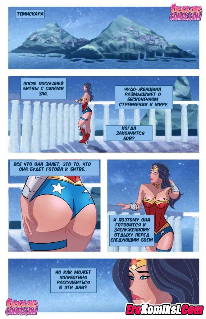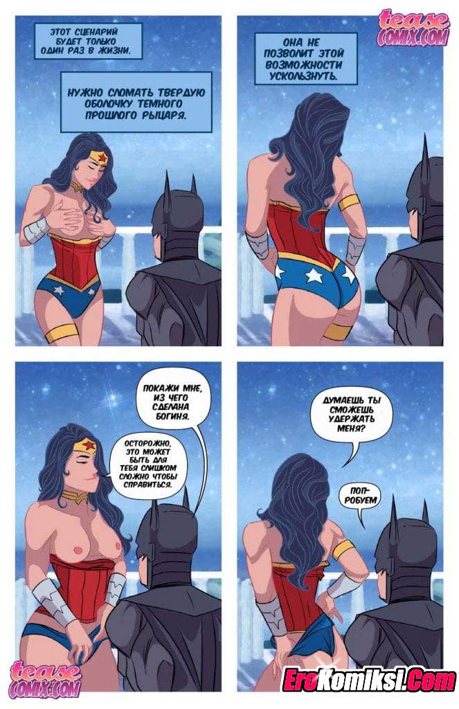 Чудо женщина после долгих битв против зла отдыхает и мечтает о мире во всем мире. Они пытается расслабиться и начинает мастурбировать. Женщина представляет единственного мужчину которого она любит и может доверять только ему. Это Бетмен, он является в её фантазии и они занимаются страстным сексом.