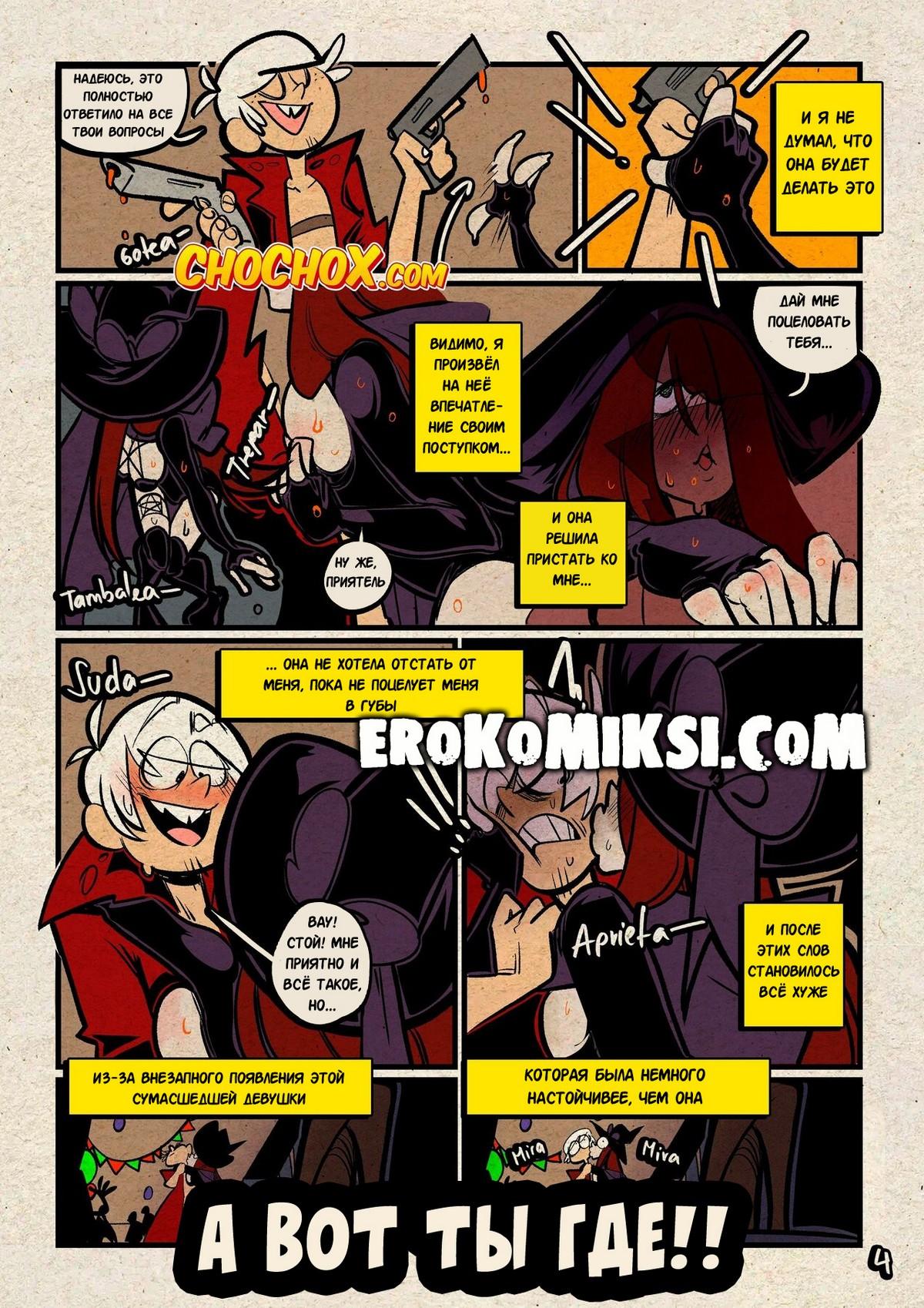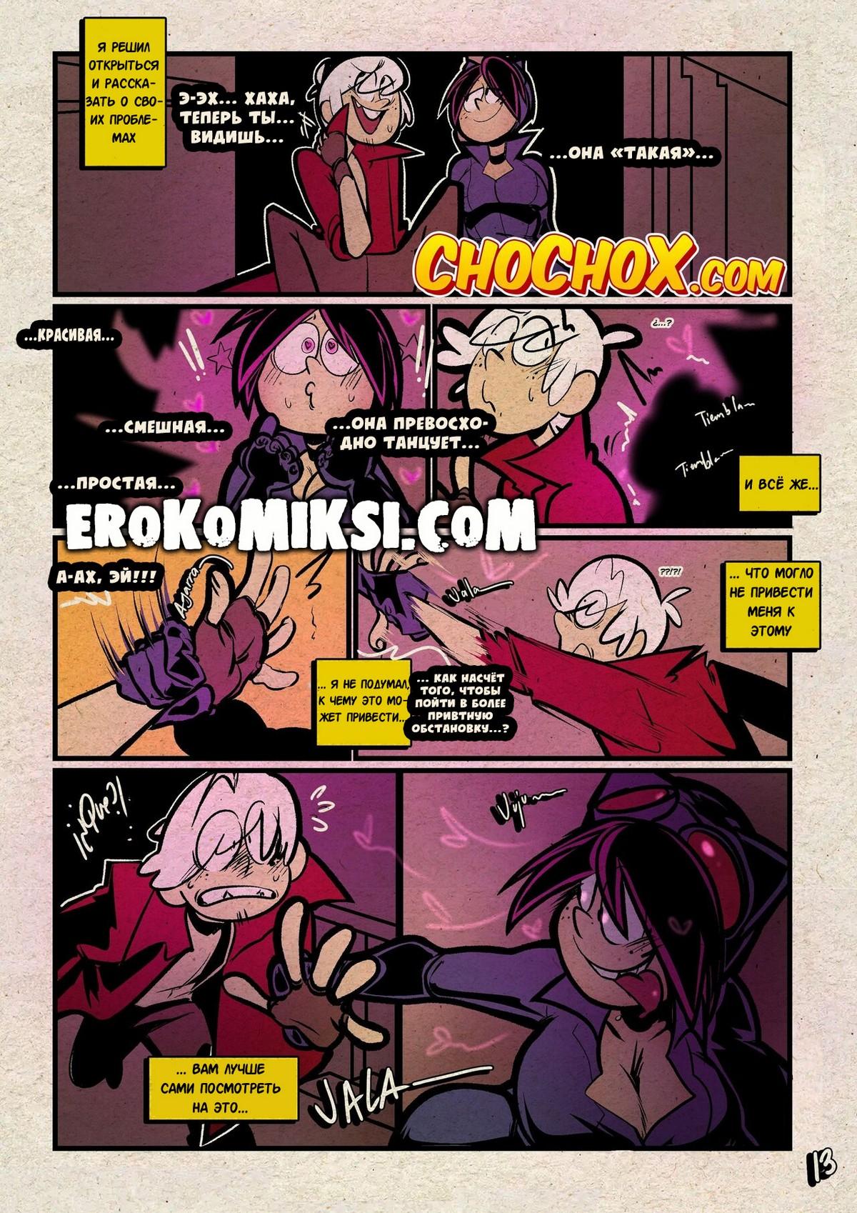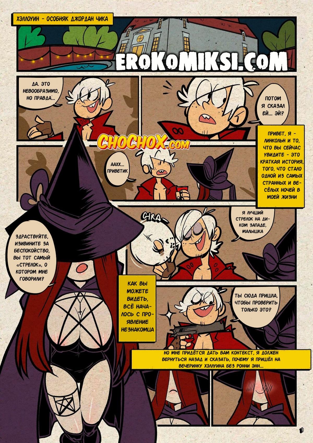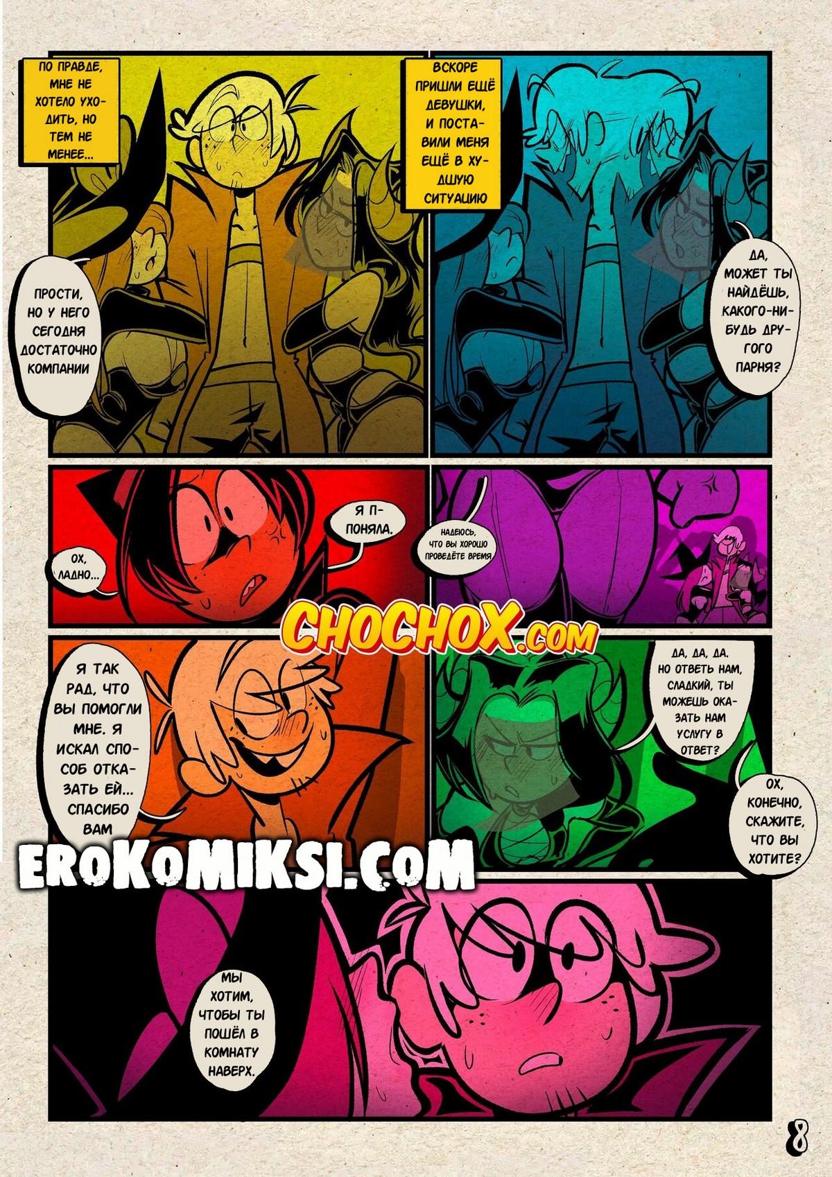 Порно комикс Мой шумный дом. Хитрый трюк. Линкольн пошёл на вечернику в честь Хэллуйна без своей девушки Ронни. Там к нему начали приставать две горячих девушки, которые очень сильно хотели трахнуть его, но Линкольн не могу пристать свою девушки и не ожидал такого итога…