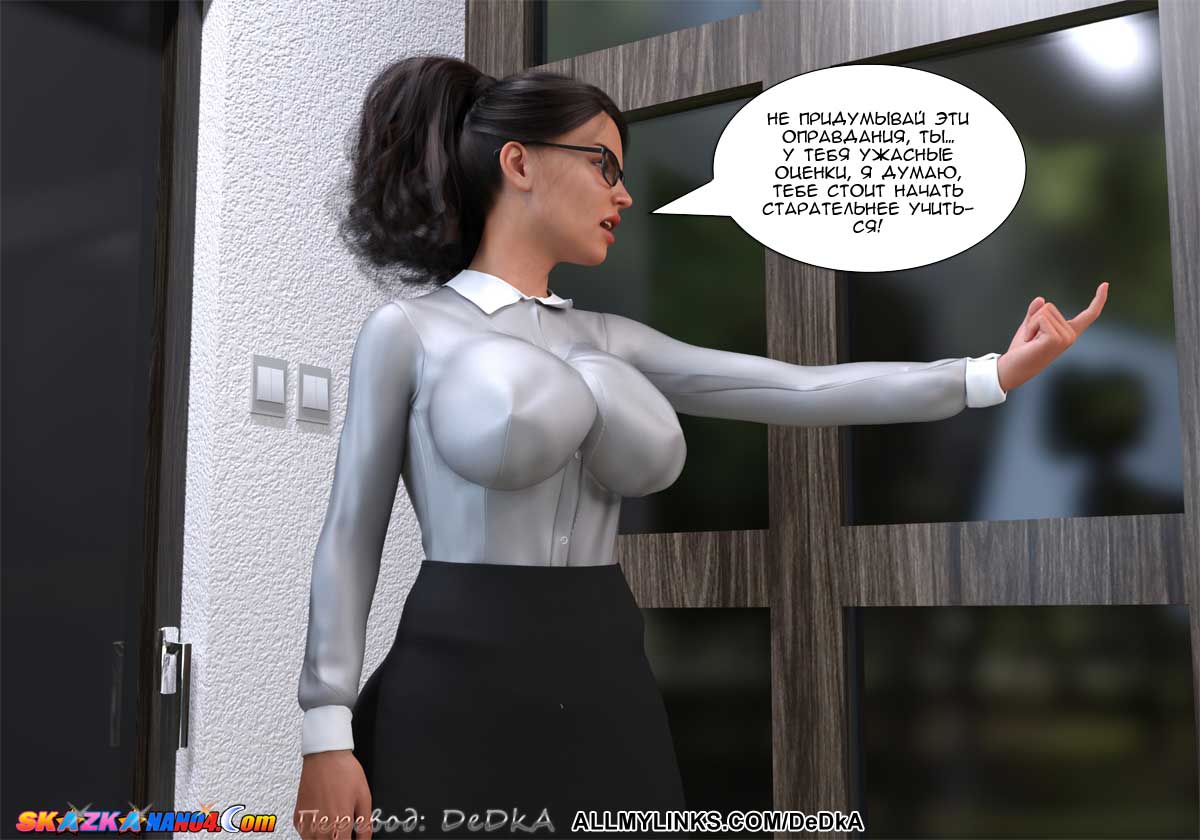 Порно комикс Мой учитель — моя мачеха. Джейк живет с отцом и мачехой и учится в колледже. Учится он очень плохо и в учебники почти не заглядывает, зато очень хочет заглянуть под юбку мачехи…