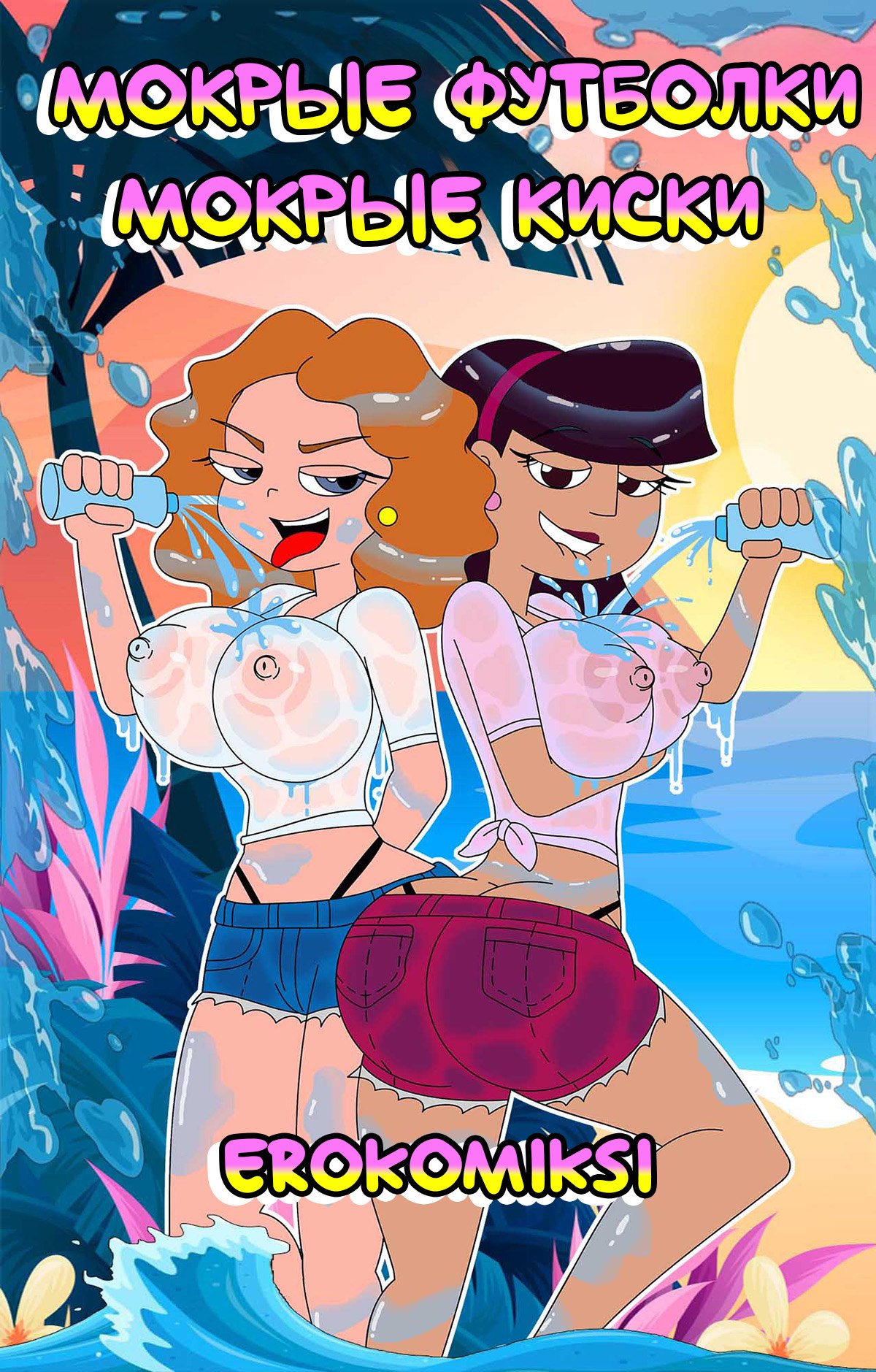 Порно комикс Мокрые футболки. Мокрые киски. Девчонки хотели соблазнить парней мокрыми футболками и кисками. И им это удалось, парни не смогли пройти мимо таких привлекательных особ…