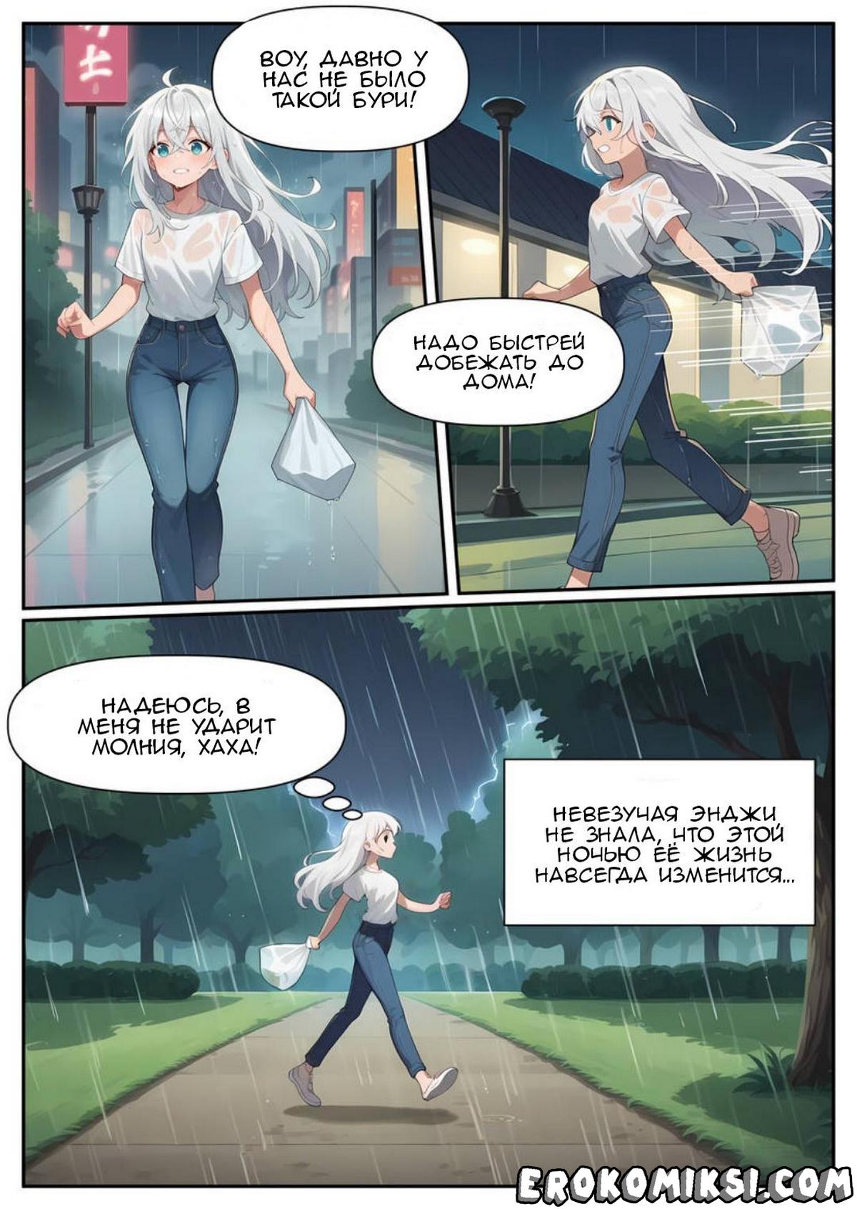 Порно комикс Молния роста. Часть 1 и 2. Growing thunder. Аппетитную блондинку шарахнула молния и теперь с ее телом происходят невероятные перевоплощения. Сексуальные формы девушки быстро увеличиваются в размерах и она становится крайне возбужденной, желая желая немедленно заняться сексом…
