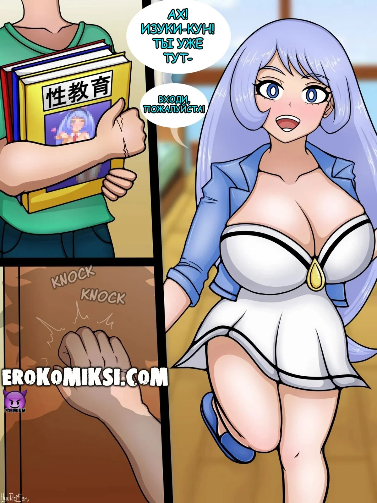 Порно комикс Моя геройская академия. Дополнительные уроки Неджире. Изуки Мидория пришёл на дополнительные занятия к учители Неджире. Изуки не как не мог перестать палится на огромные сиськи Неджире, и чтобы хоть как-то отвлечься, он случайно открывает тему с 18+ и это замечает его учитель…