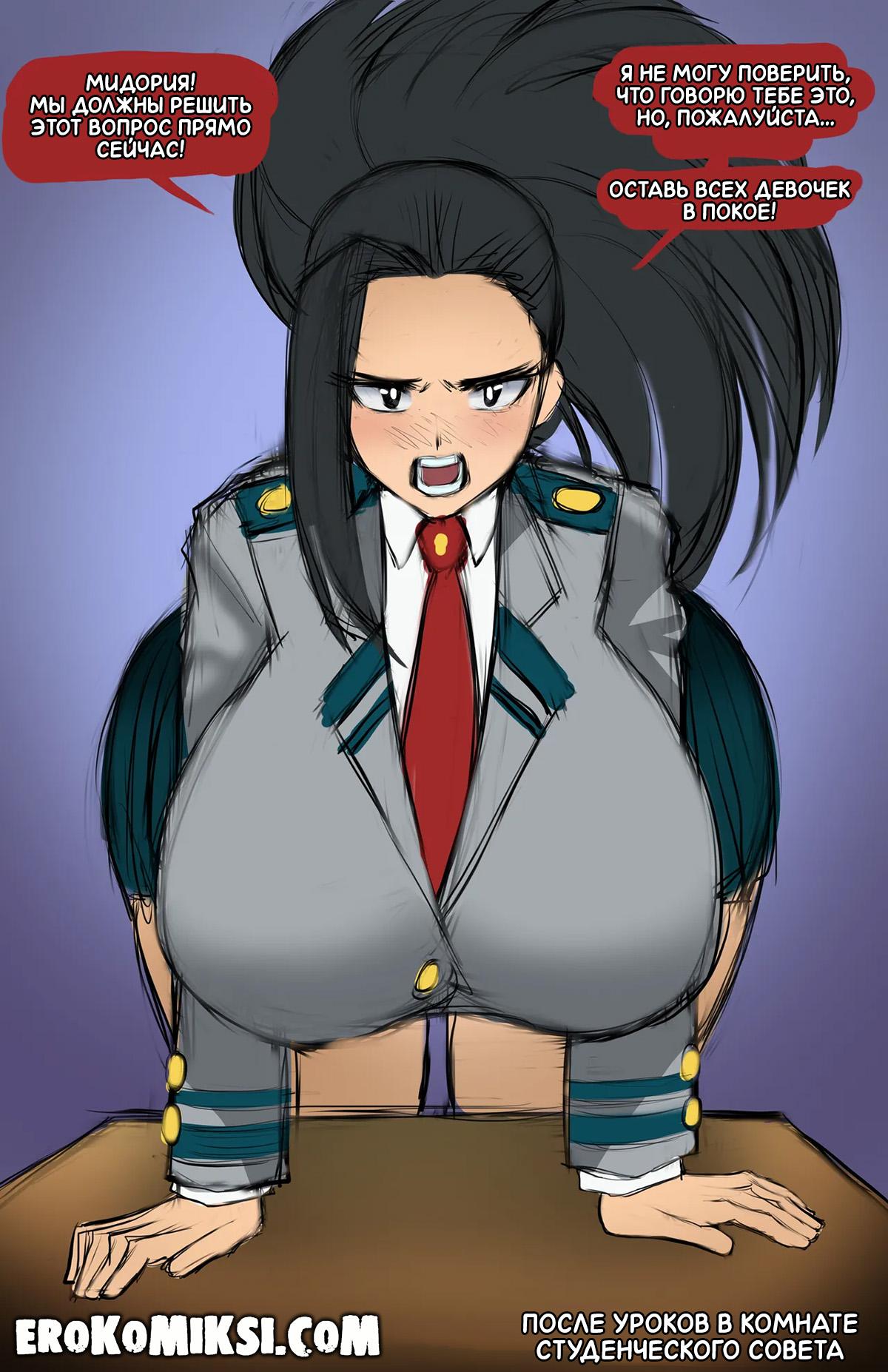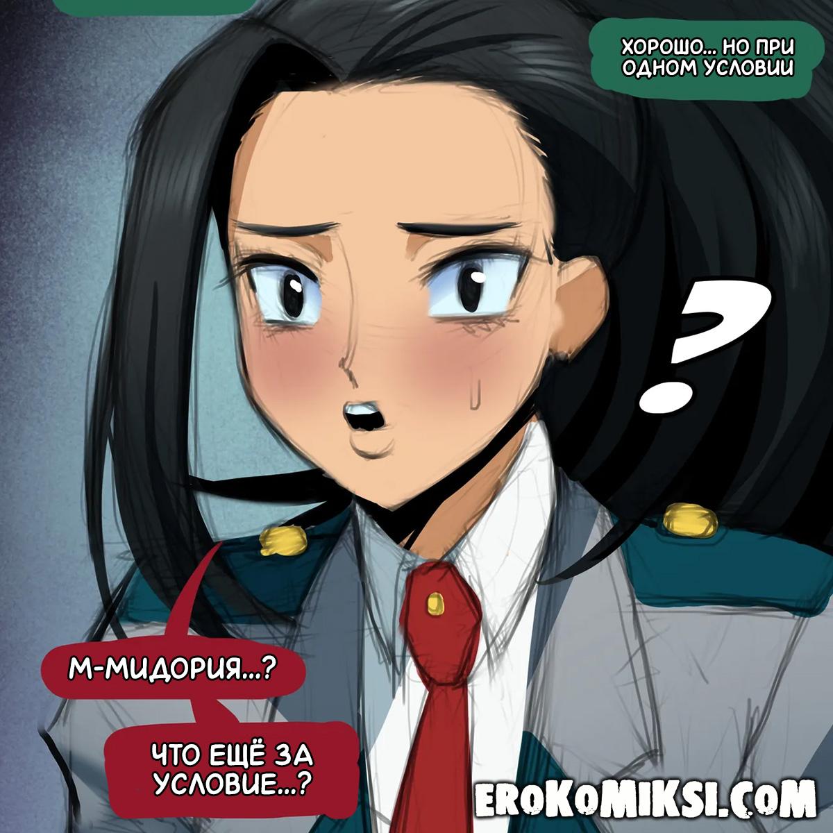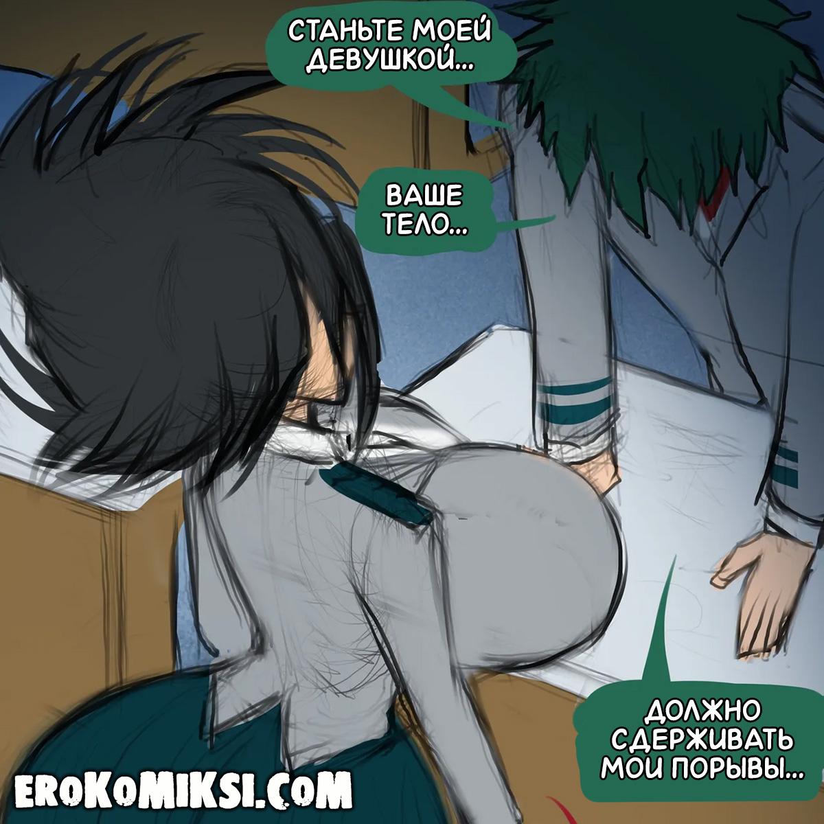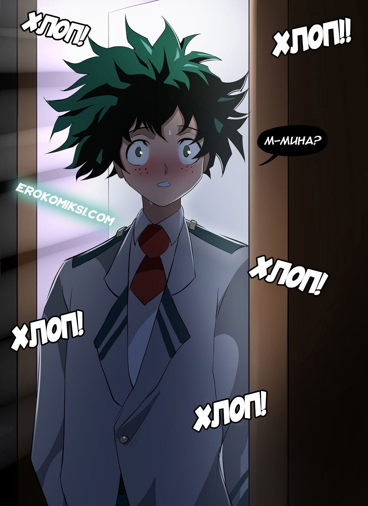 Порно комикс Моя геройская академия. Обеденное рандеву. Урарака попала в развратные лапы Деку и не смогла устоять перед его огромным причиндалом. Позже к нему зашла и Мина, желая получить тоже самое…