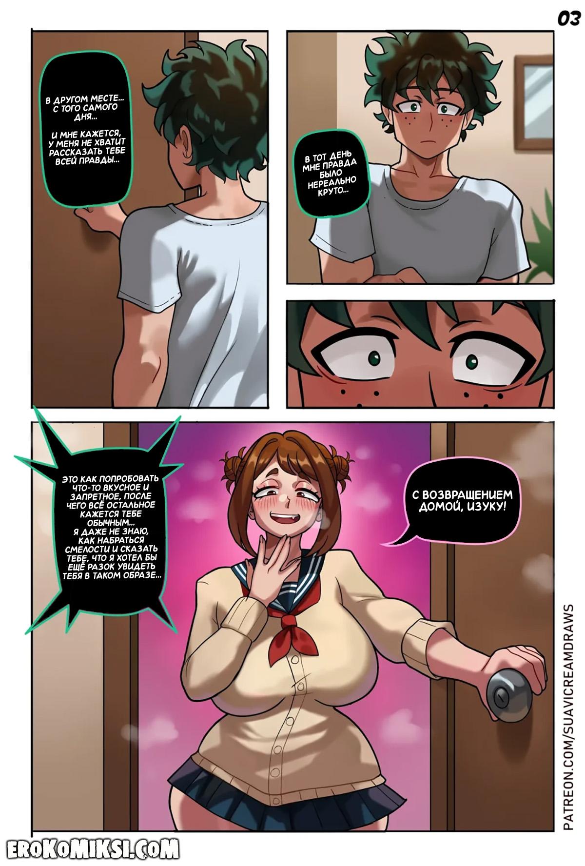 Порно комикс Моя геройская академия. Ролевые игры. Очако решает немного разнообразить сексуальную жизнь с Деку и переодевается в Тогу, от чего у парня моментально встаёт член, и он начинает со всей силы трахать свою любимую Очако…