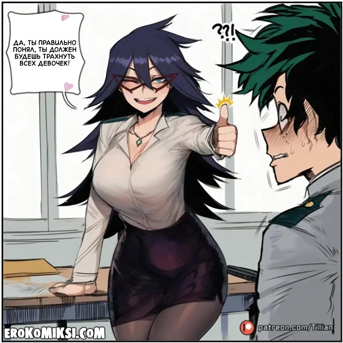 Порно комикс Моя Геройская Академия. Специальное задание для Деку. Из-за того, что Деку обладает высокой выносливостью, ему поручают ответственное задание – оттрахать всех студенток академии и оплодотворить их тугие киски…