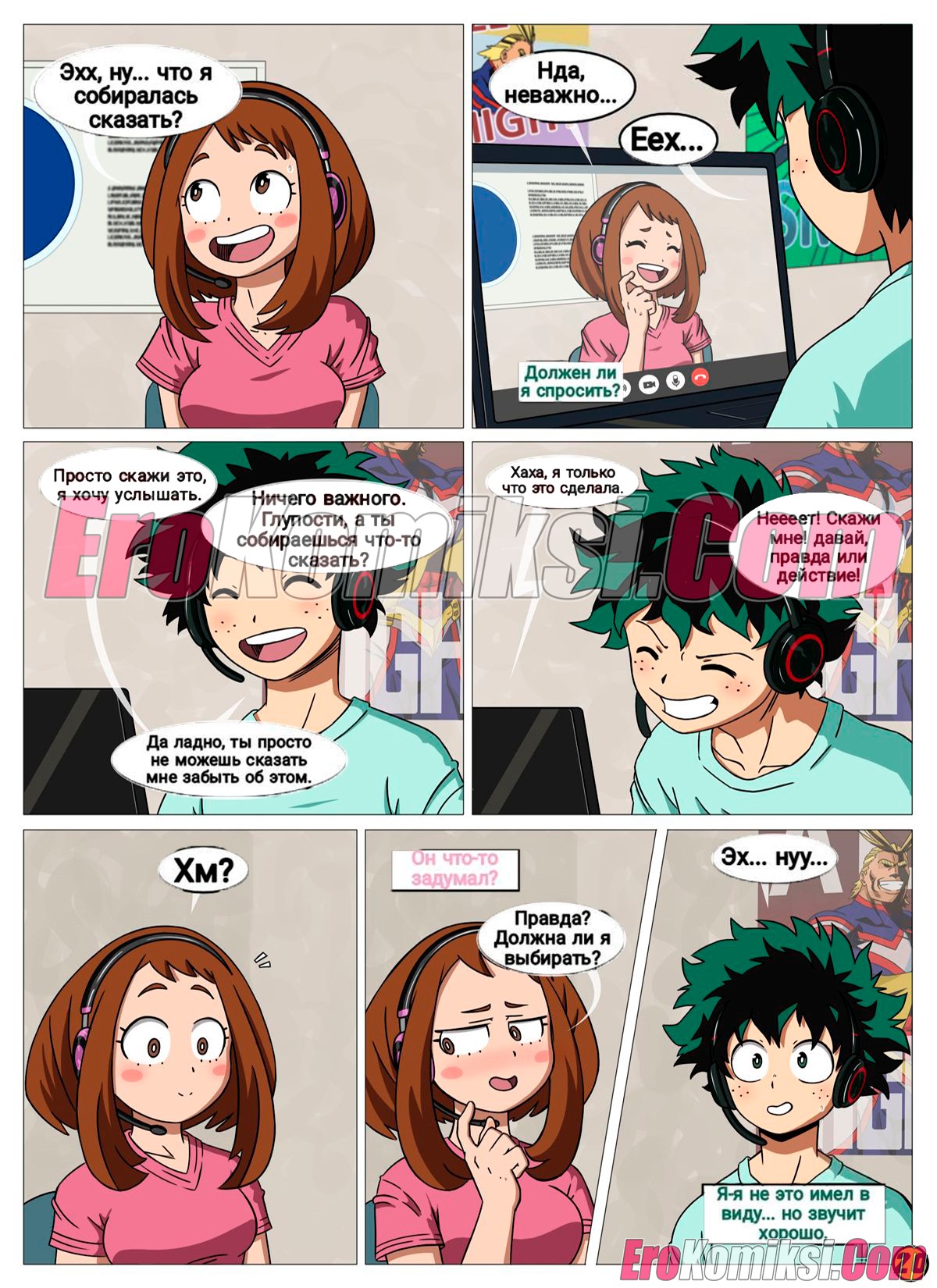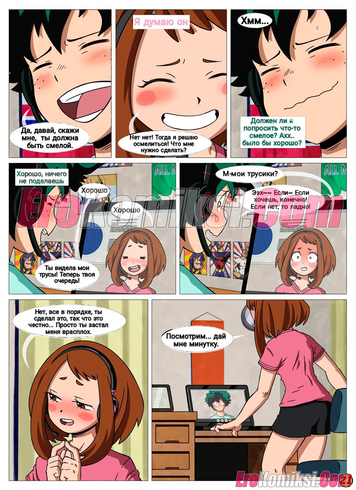 Порно комикс Академия. Я тебя вижу. I See You. My Hero Academia Молодая горячая красотка брюнетка решила повеселиться со своим дружком по видео связи. Она разделись друг перед другом и продемонстрировали свои шикарные тела, а затем стали дрочить себе.