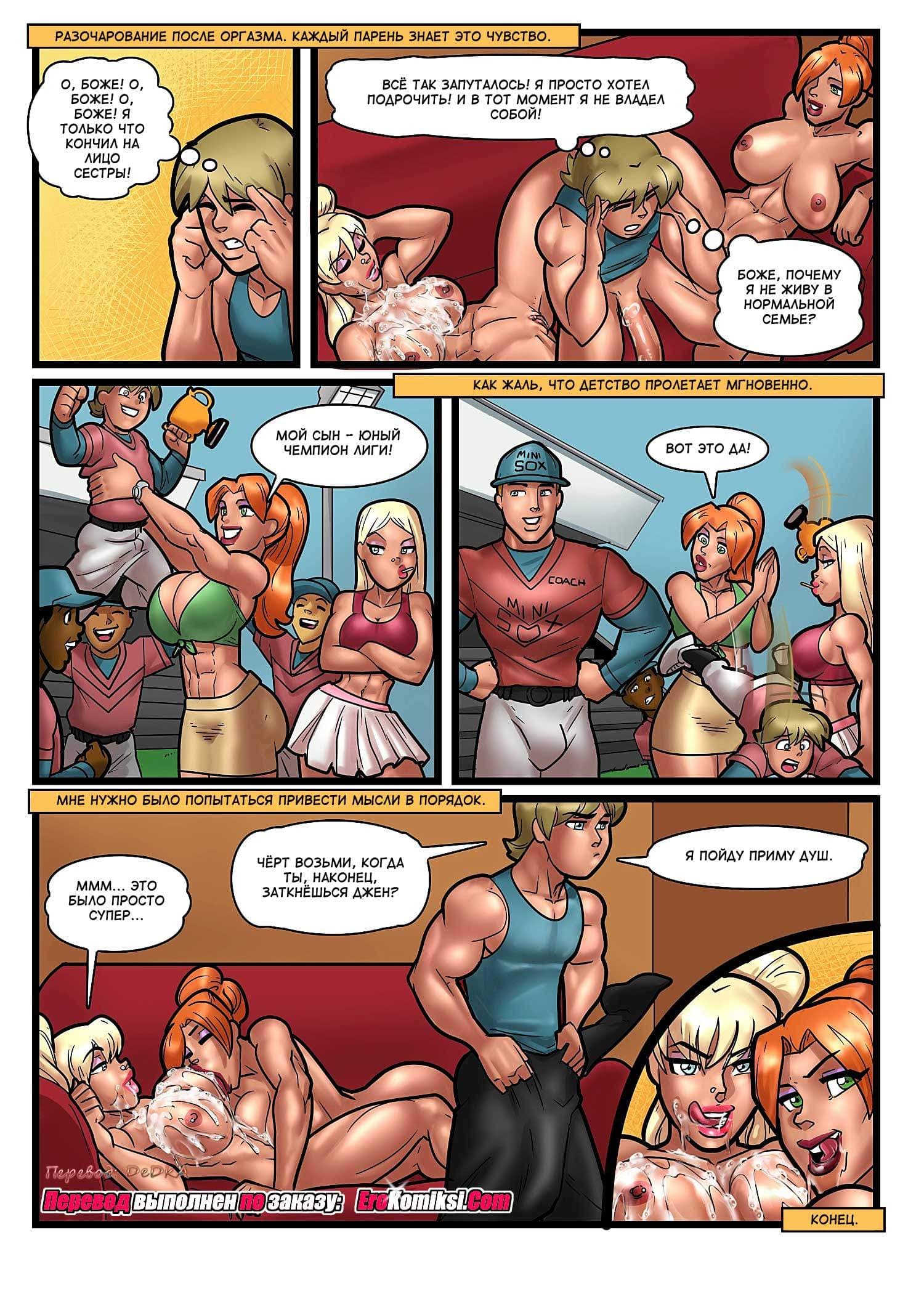 Обожаете читать инцест комиксы онлайн? Рады представить вам данную историю, сюжет которой начинается с того, как один парень уже привык, что его мамаша воспринимает его, словно ребёнка, а его сестра издевается над ним, и считает его стеснительным неудачником. При всём при этом, они постоянно болтают при нём о своих хахалях, и обязательно обсуждают у кого из этих хахалей член больше. Но вот однажды, сестра застала нашего героя за одним интимным занятием и увидела, какой большой у него прибор… После этого всё в семье кардинально изменилось.